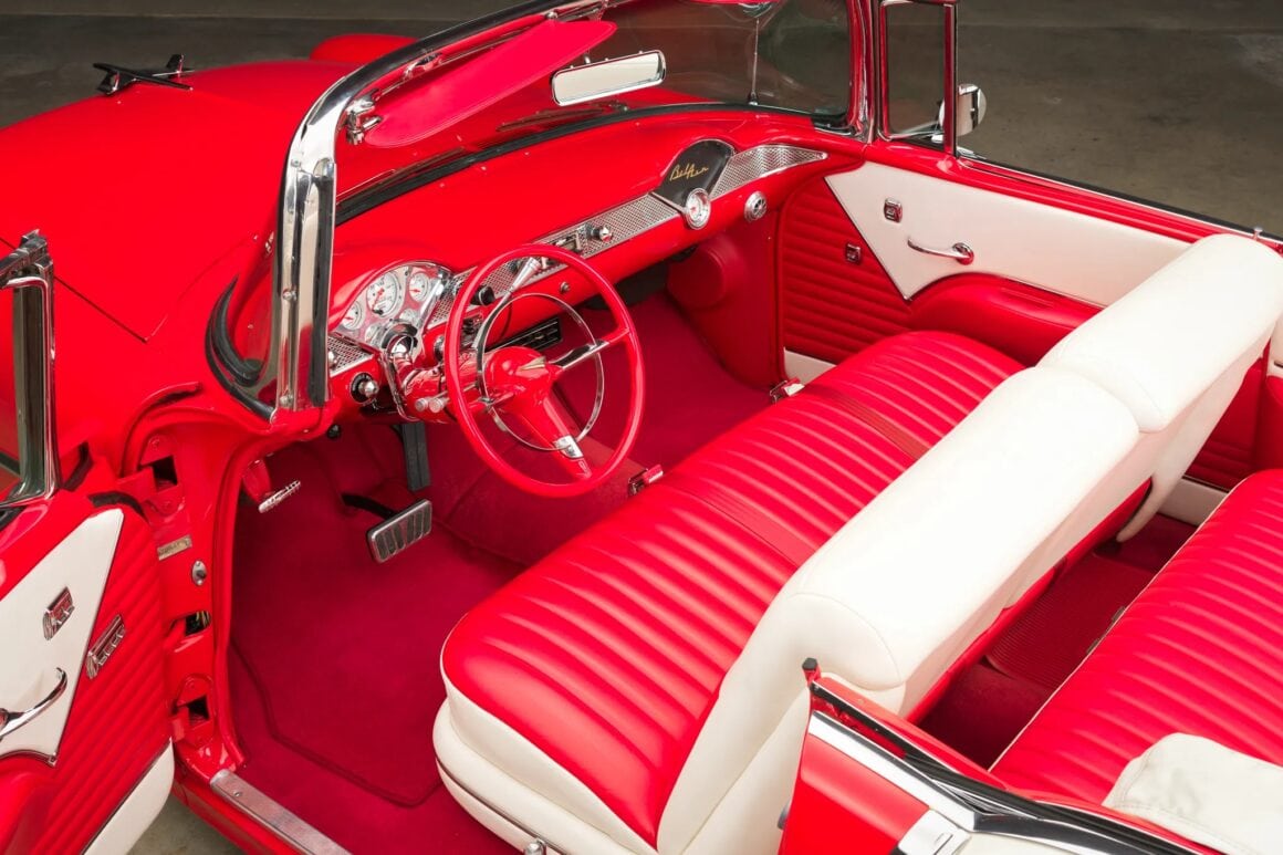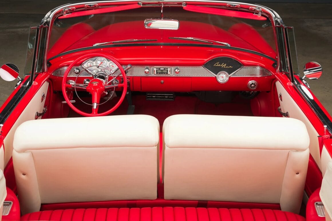L’intérieur des Bel Air de 1955 recoupait 25 options de sellerie dont un certain nombre spécifiques aux décapotables et breaks. En 1956, la Bel Air reçut un lifting avec une grille de calandre plus large et plus conventionnelle, afin de plaire aux clients qui n’appréciaient pas l’inspiration Ferrari du modèle de 1955. Un traitement de la caisse en deux tons et des passages de roues avant et arrière complétaient le “Speedline restyling”.