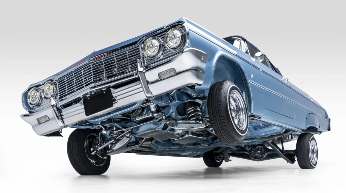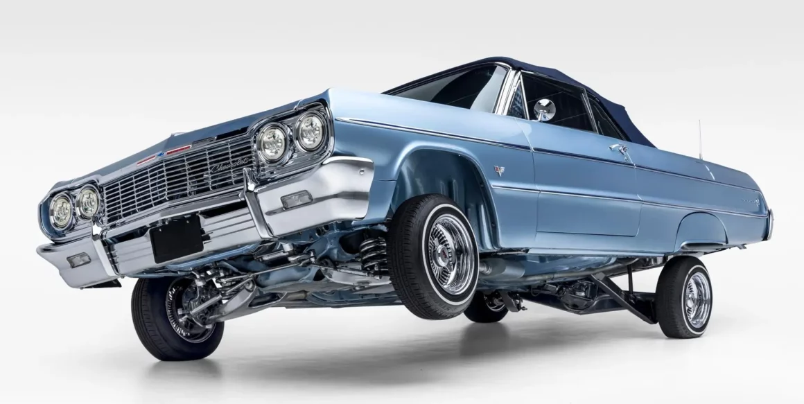 La légende raconte que l’utilisation de l’hydraulique a été introduite pour la première fois pour permettre aux propriétaires de ces voitures d’éviter d’être verbalisés après qu’une loi californienne de 1958 ait interdit aux véhicules de rouler plus bas que le bas de leurs jantes. Cette loi avait été spécifiquement conçue pour cibler les jeunes Chicano’s pour harcèlement policier. Mais avec l’hydraulique (initialement tirée des systèmes de train d’atterrissage des avions), un conducteur pouvait simplement appuyer sur un interrupteur et augmenter la hauteur de caisse pour revenir à une hauteur légale.
