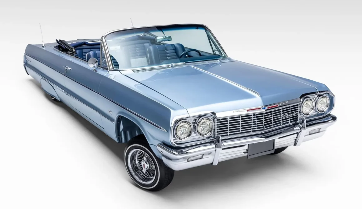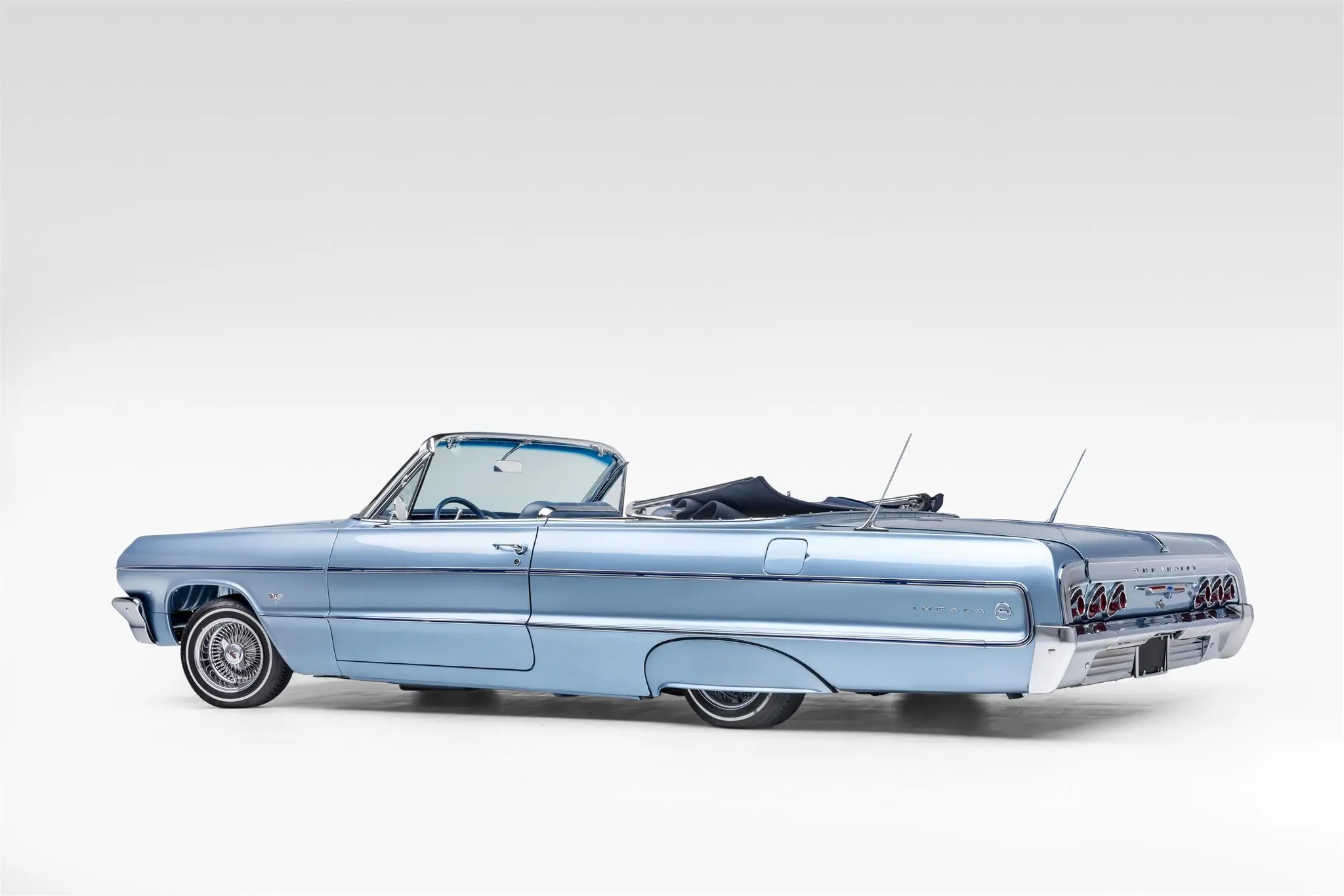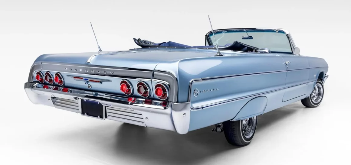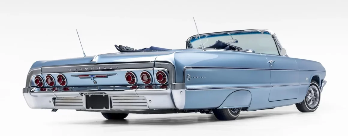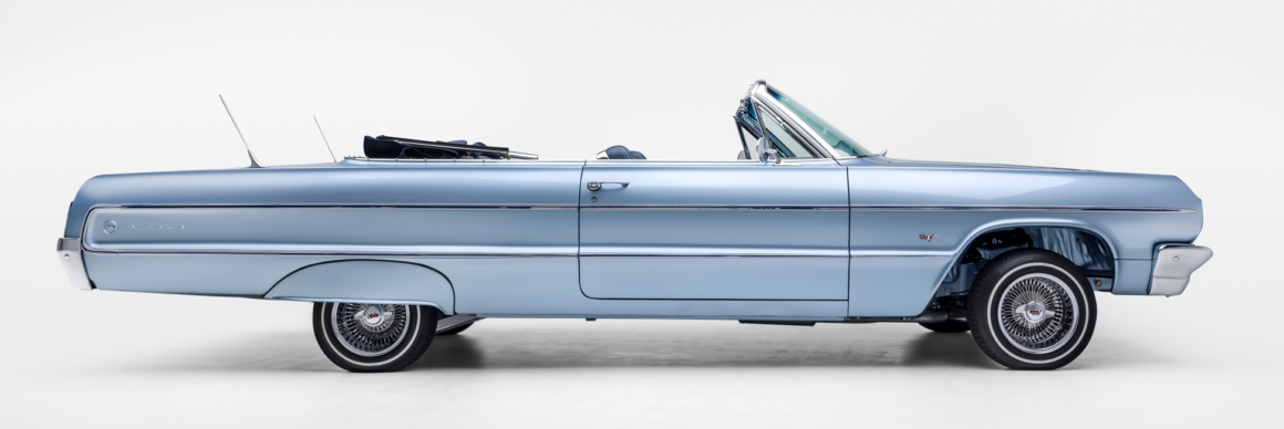 Son châssis en X et ses longs panneaux plats constituent une toile parfaite pour les amateurs de lowrider afin d’y réaliser des “oeuvres d’art”. Peut-être la plus célèbre de toutes les 64’Impala’s était la Gypsy-Rose de Jesse Valdez qui, avec ses frères, a fondé le club automobile “Imperials” à East LA. Ils ont travaillé sur trois versions différentes de la Gypsy Rose, deux 63’Impala’s et la version finale, une ’64. La Gypsy Rose arborait des panneaux rouge bonbon et rose, des bandes décoratives et présentait plus d’une centaine de roses peintes “à la main”.