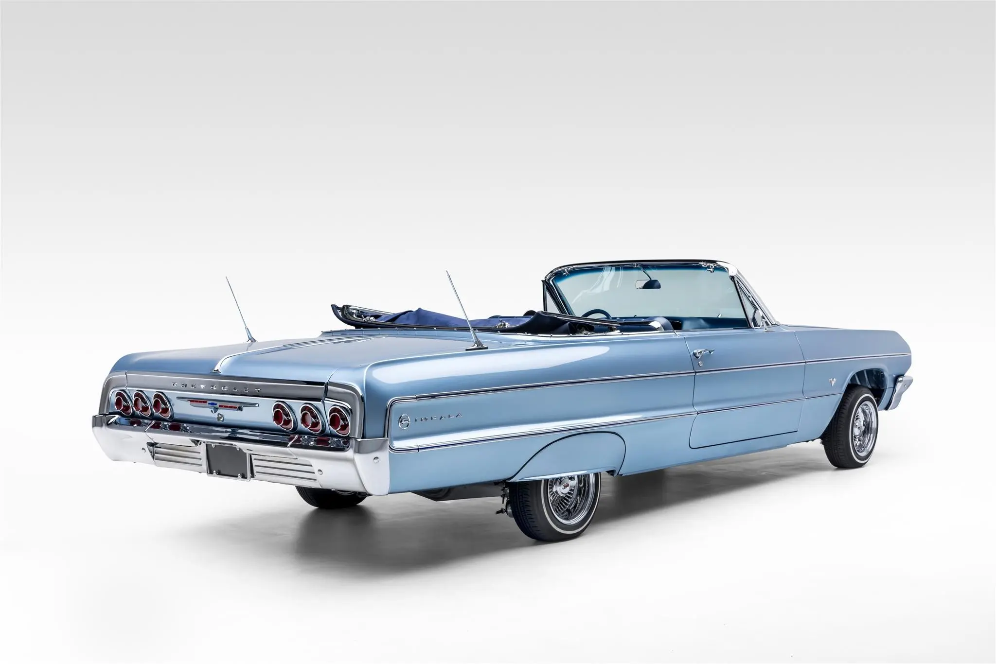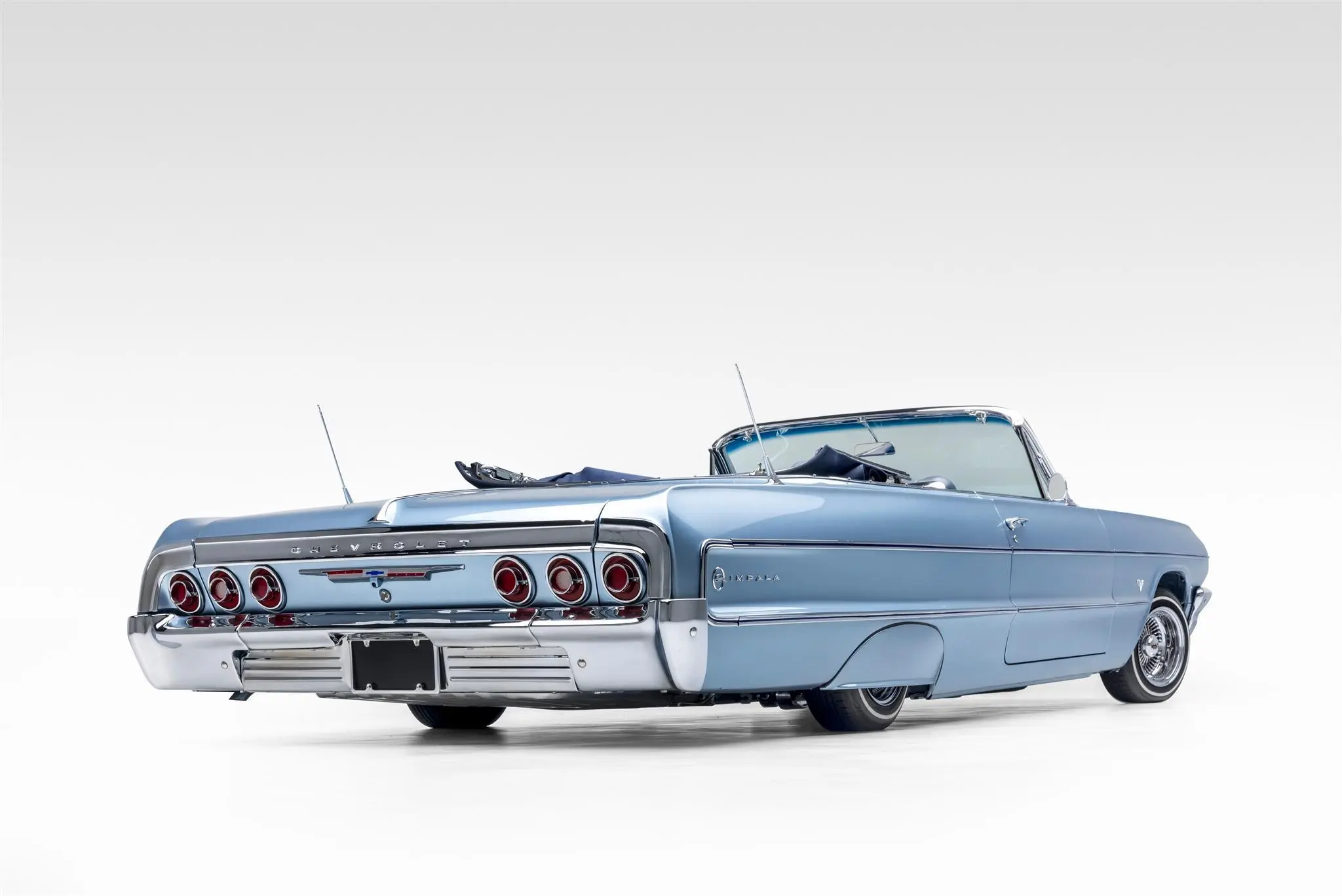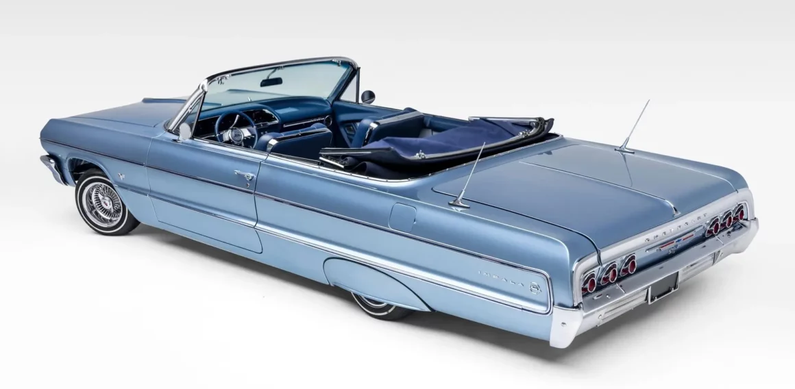 Son châssis en X et ses longs panneaux plats constituent une toile parfaite pour les amateurs de lowrider afin d’y réaliser des “oeuvres d’art”. Peut-être la plus célèbre de toutes les 64’Impala’s était la Gypsy-Rose de Jesse Valdez qui, avec ses frères, a fondé le club automobile “Imperials” à East LA. Ils ont travaillé sur trois versions différentes de la Gypsy Rose, deux 63’Impala’s et la version finale, une ’64. La Gypsy Rose arborait des panneaux rouge bonbon et rose, des bandes décoratives et présentait plus d’une centaine de roses peintes “à la main”.