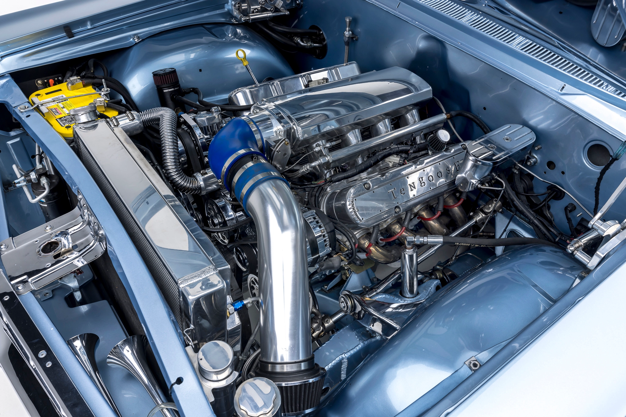 C’est une unité principale Alpine, avec des haut-parleurs Focal et trois subwoofers JL Audio W7 montés dans le coffre, ajistés dans un boîtier de marque Tengoose. Un volant personnalisé avec un bouton de klaxon Impala fait face à un groupe d’instruments Dakota Digital comprenant un compteur de vitesse, un tachymètre et des compteurs numériques intégrés pour en connaître de la température du liquide de refroidissement, de la pression d’huile, de la tension électrique ainsi que du niveau de carburant.