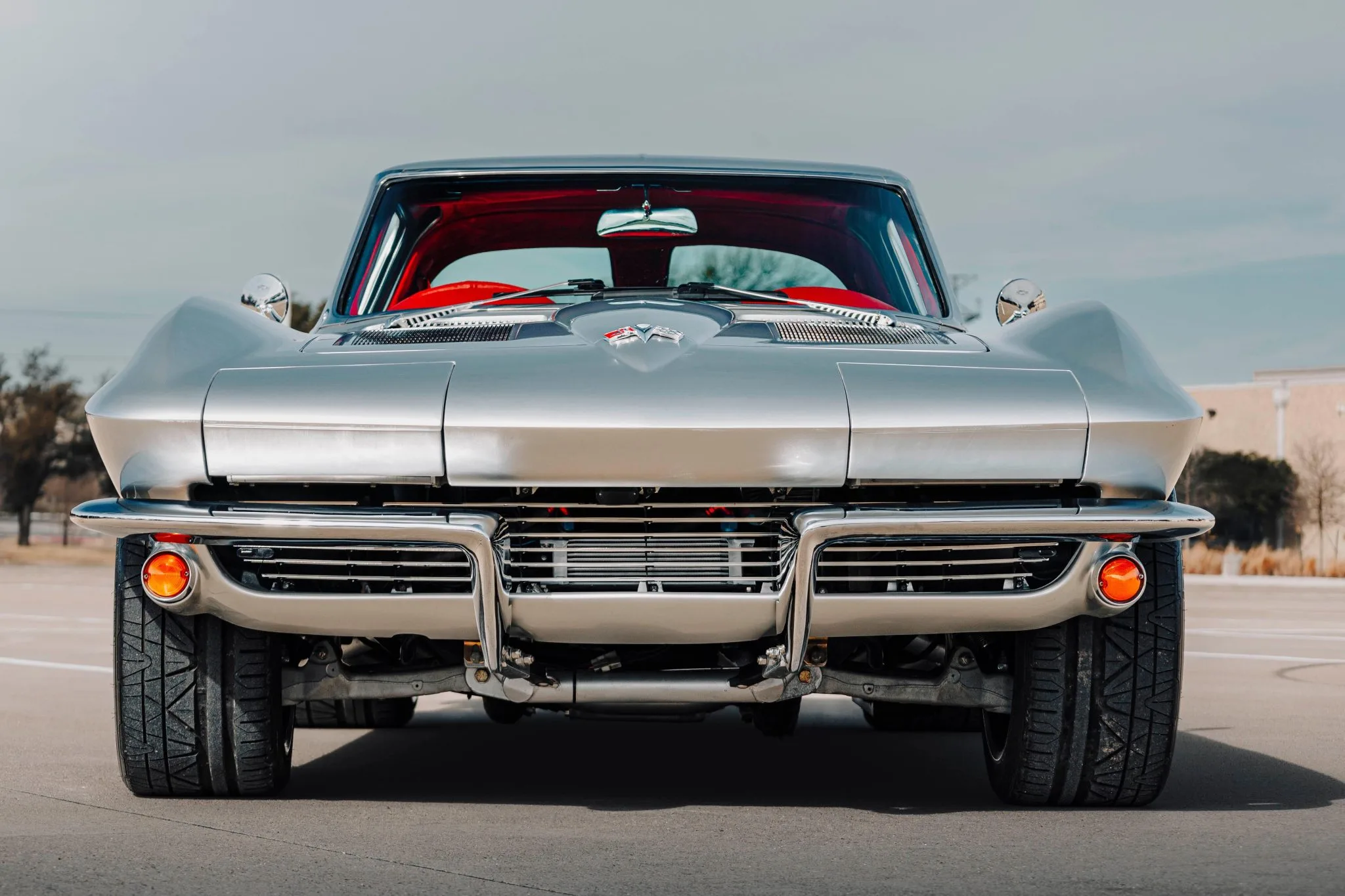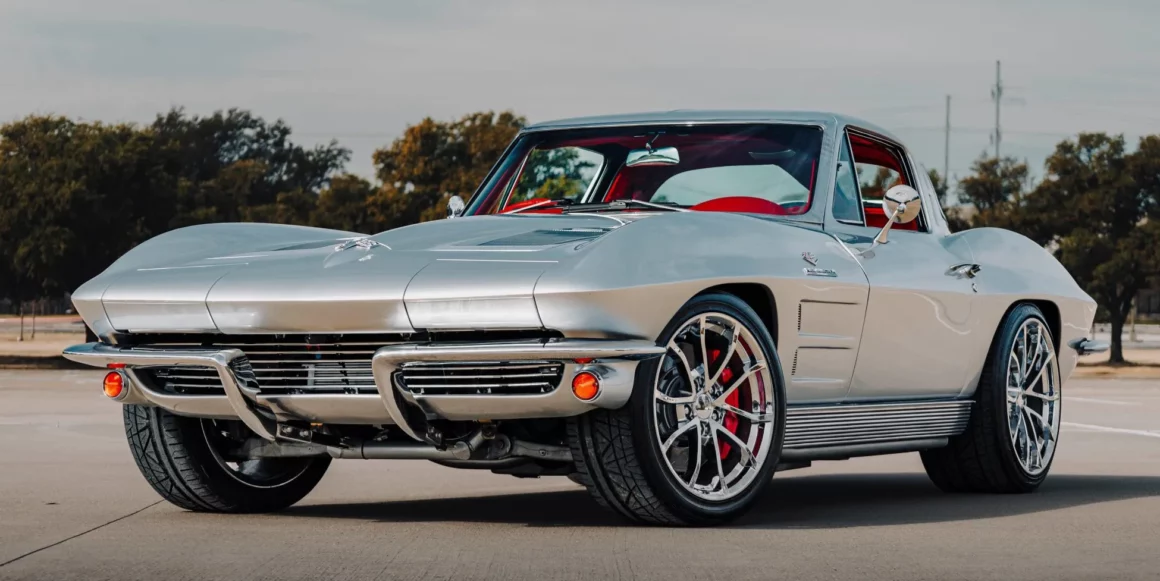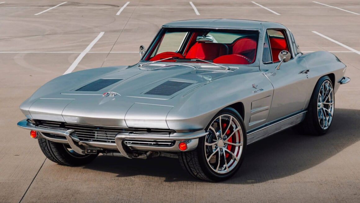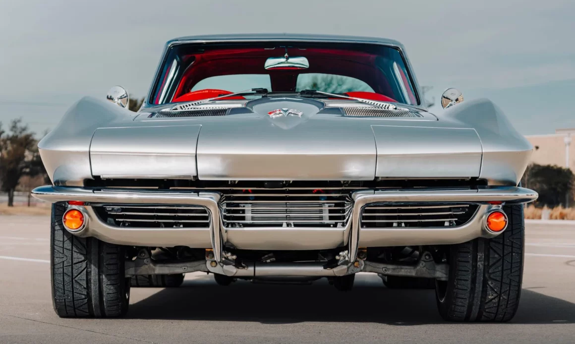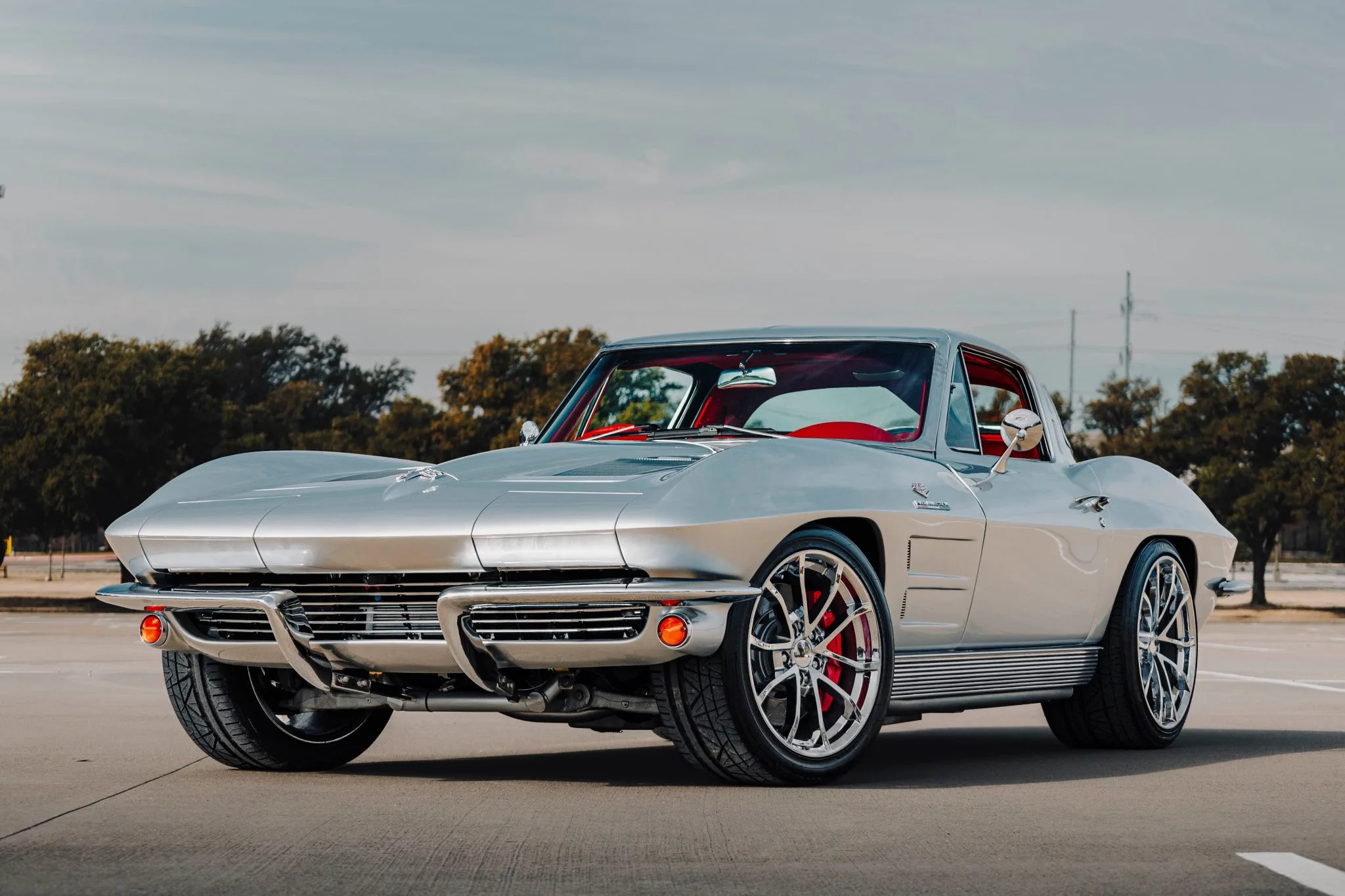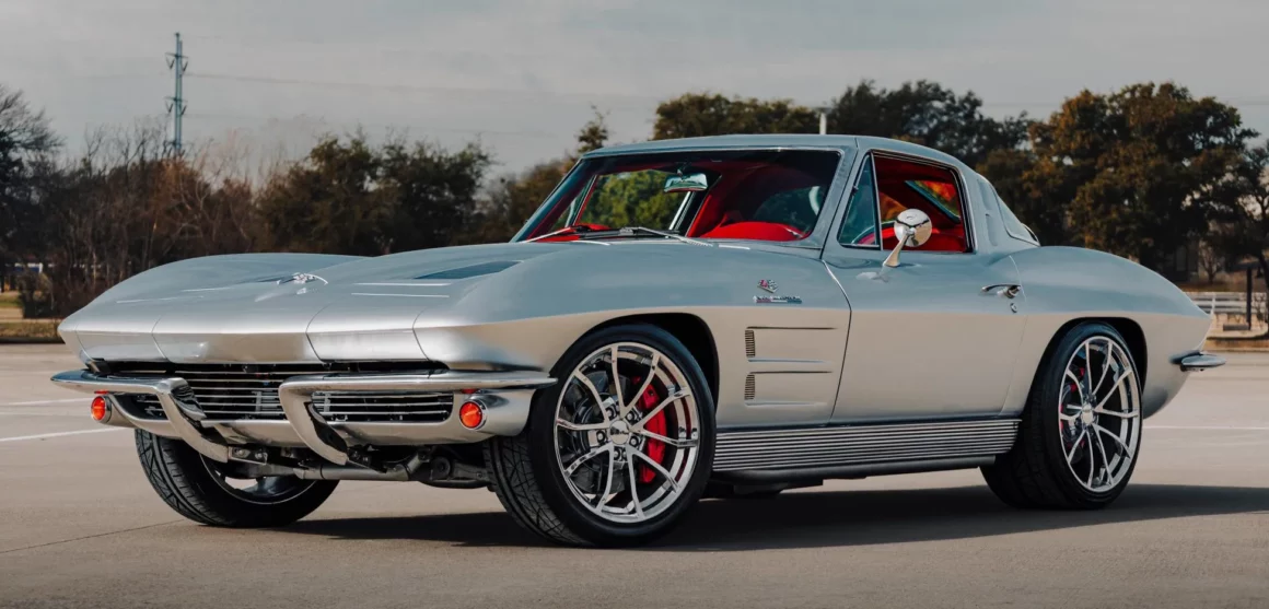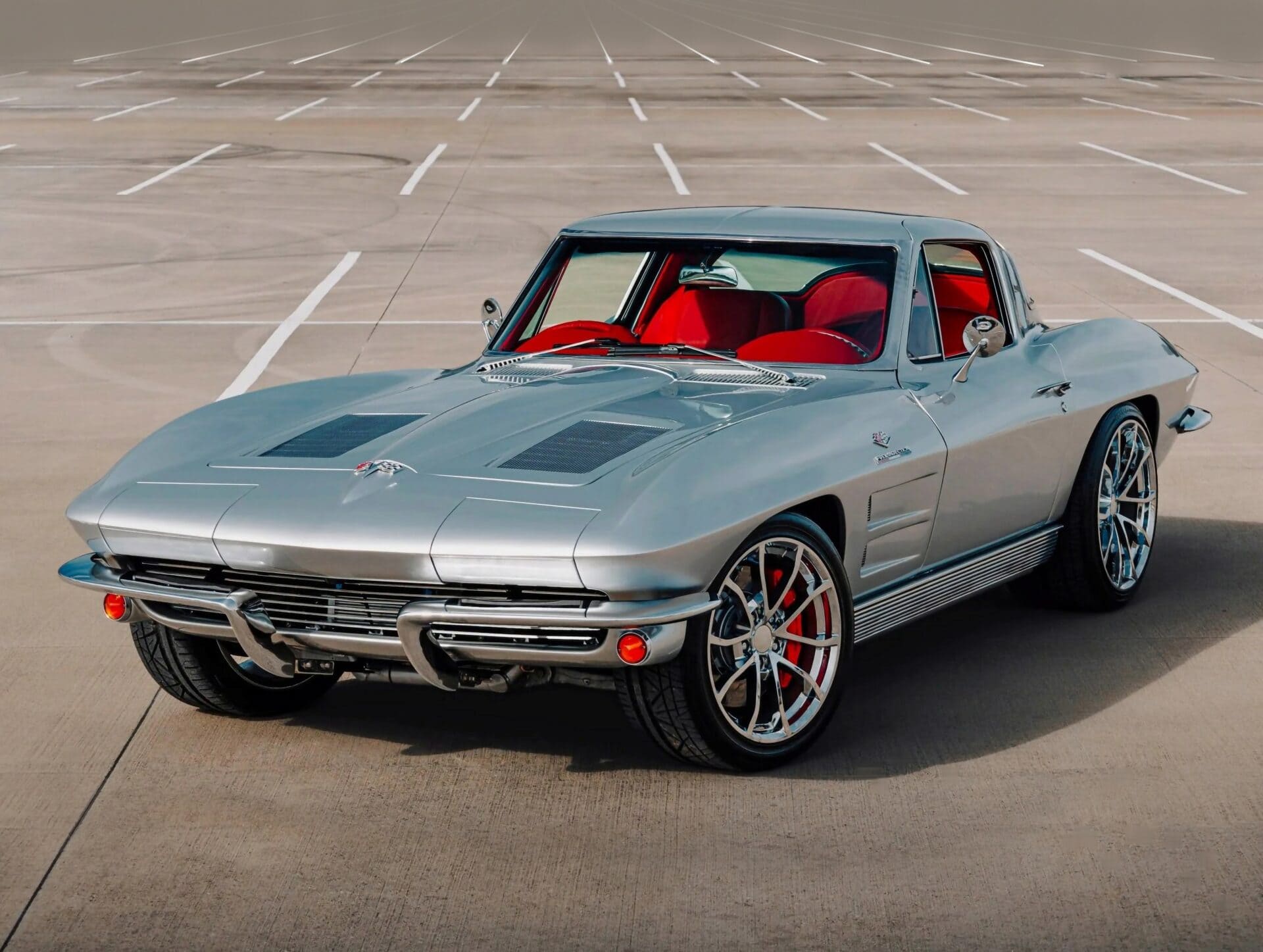 Re-construite par HarborVette d’Erie, en Pennsylvanie, USA et motorisée d’un V8 Chevy LSA suralimenté de 6L2 couplé à une transmission manuelle six vitesses Tremec TR6060 et d’un essieu arrière Currie de 9 pouces de 3,73: 1, la Corvette 1963 Split-Window de Donald Trump est finie en argent avec une sellerie en cuir rouge et a été modifiée avec un châssis tubulaire SRIII, une suspension avant et arrière de Corvette C7, des freins à disque C7-Z51 aux quatre roues chromées Grand Sport, des doubles amortisseurs réglables Viking Performance et un système de direction à crémaillère Flaming River !