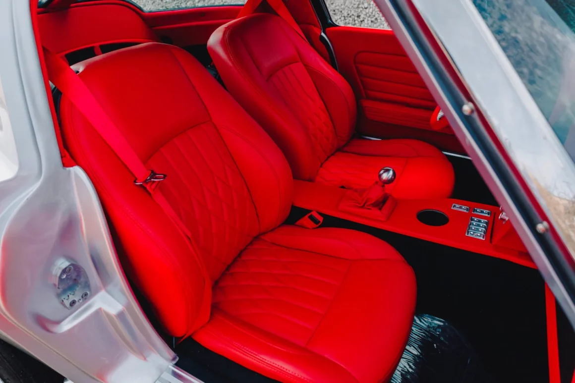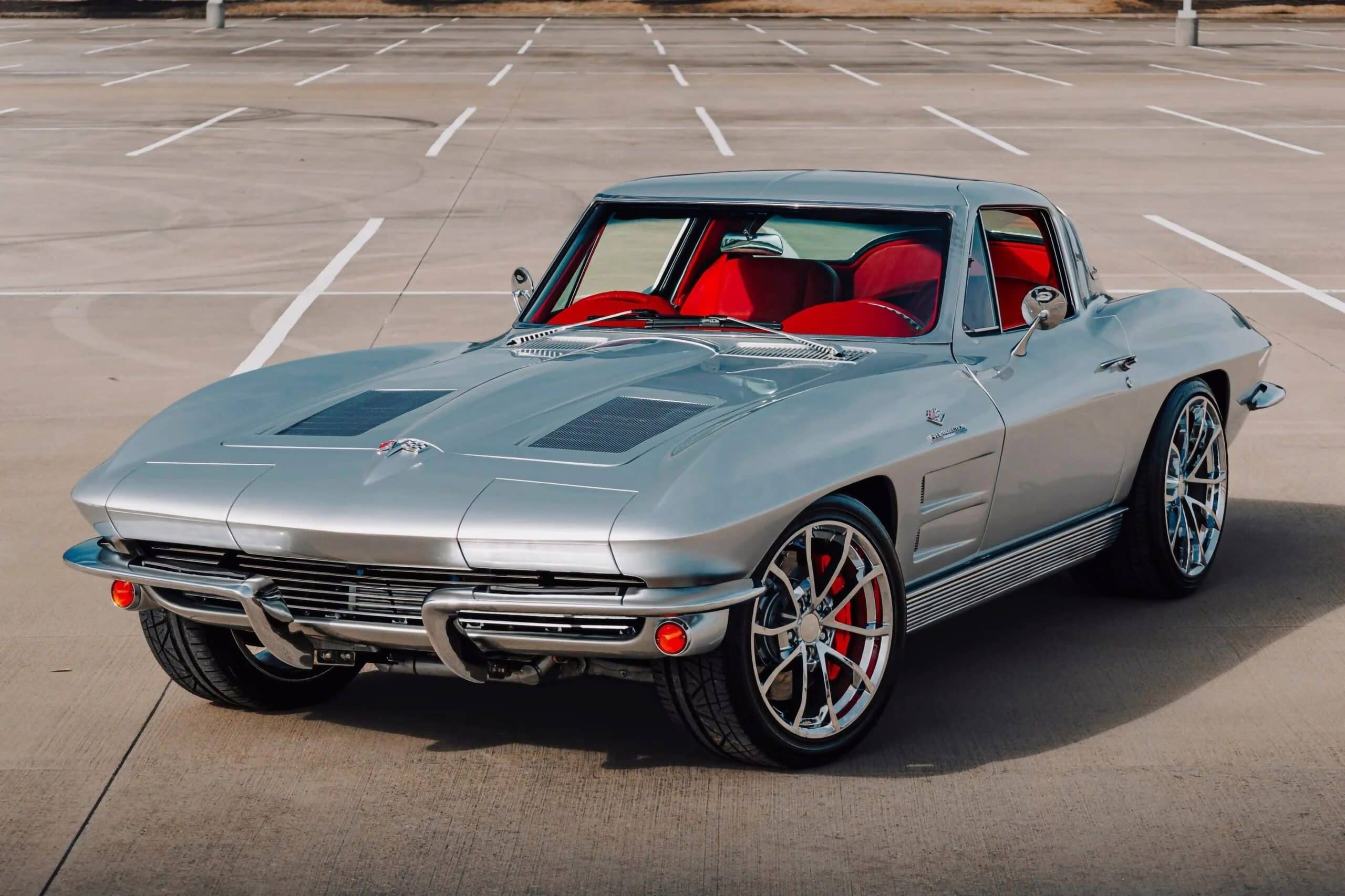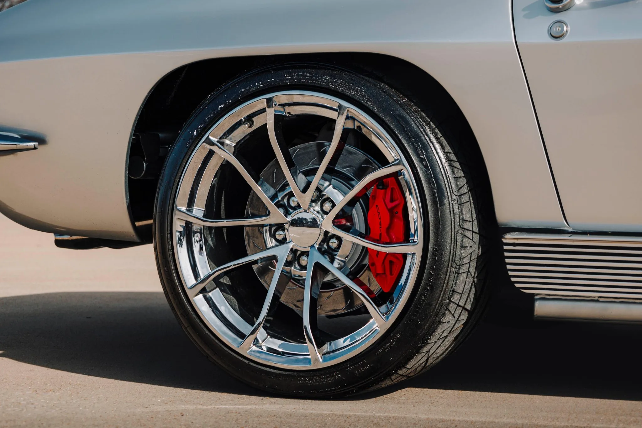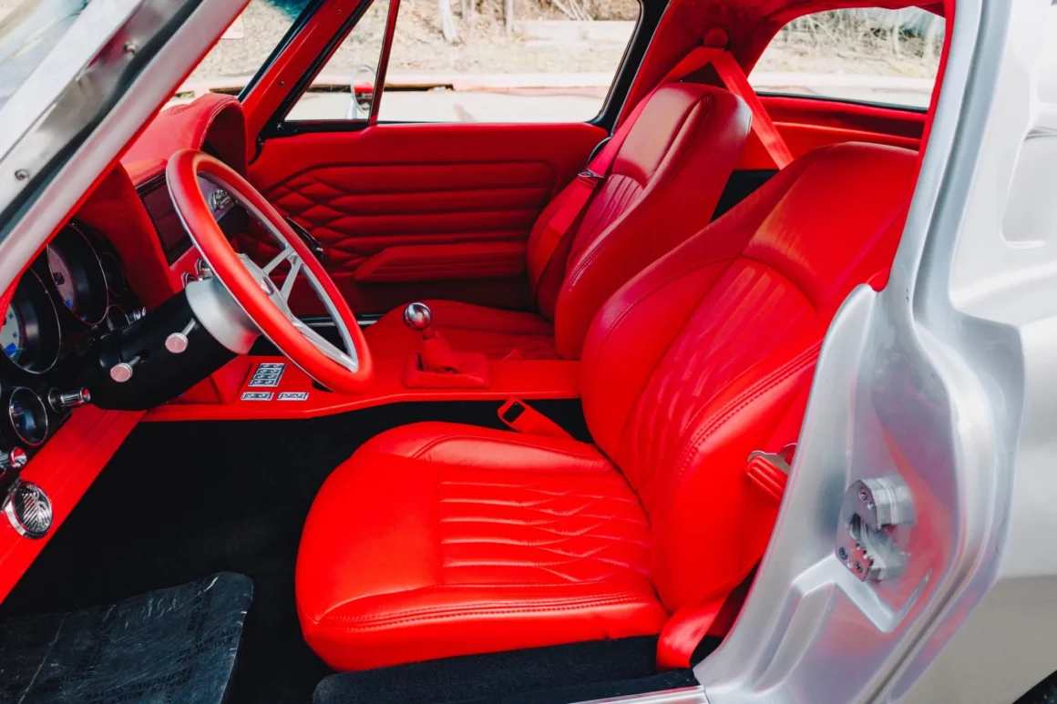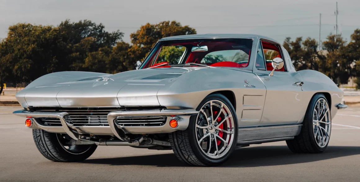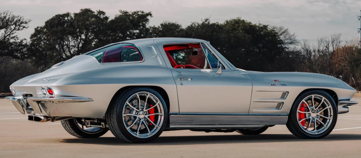 Re-construite par HarborVette d’Erie, en Pennsylvanie, USA et motorisée d’un V8 Chevy LSA suralimenté de 6L2 couplé à une transmission manuelle six vitesses Tremec TR6060 et d’un essieu arrière Currie de 9 pouces de 3,73: 1, la Corvette 1963 Split-Window de Donald Trump est finie en argent avec une sellerie en cuir rouge et a été modifiée avec un châssis tubulaire SRIII, une suspension avant et arrière de Corvette C7, des freins à disque C7-Z51 aux quatre roues chromées Grand Sport, des doubles amortisseurs réglables Viking Performance et un système de direction à crémaillère Flaming River !
