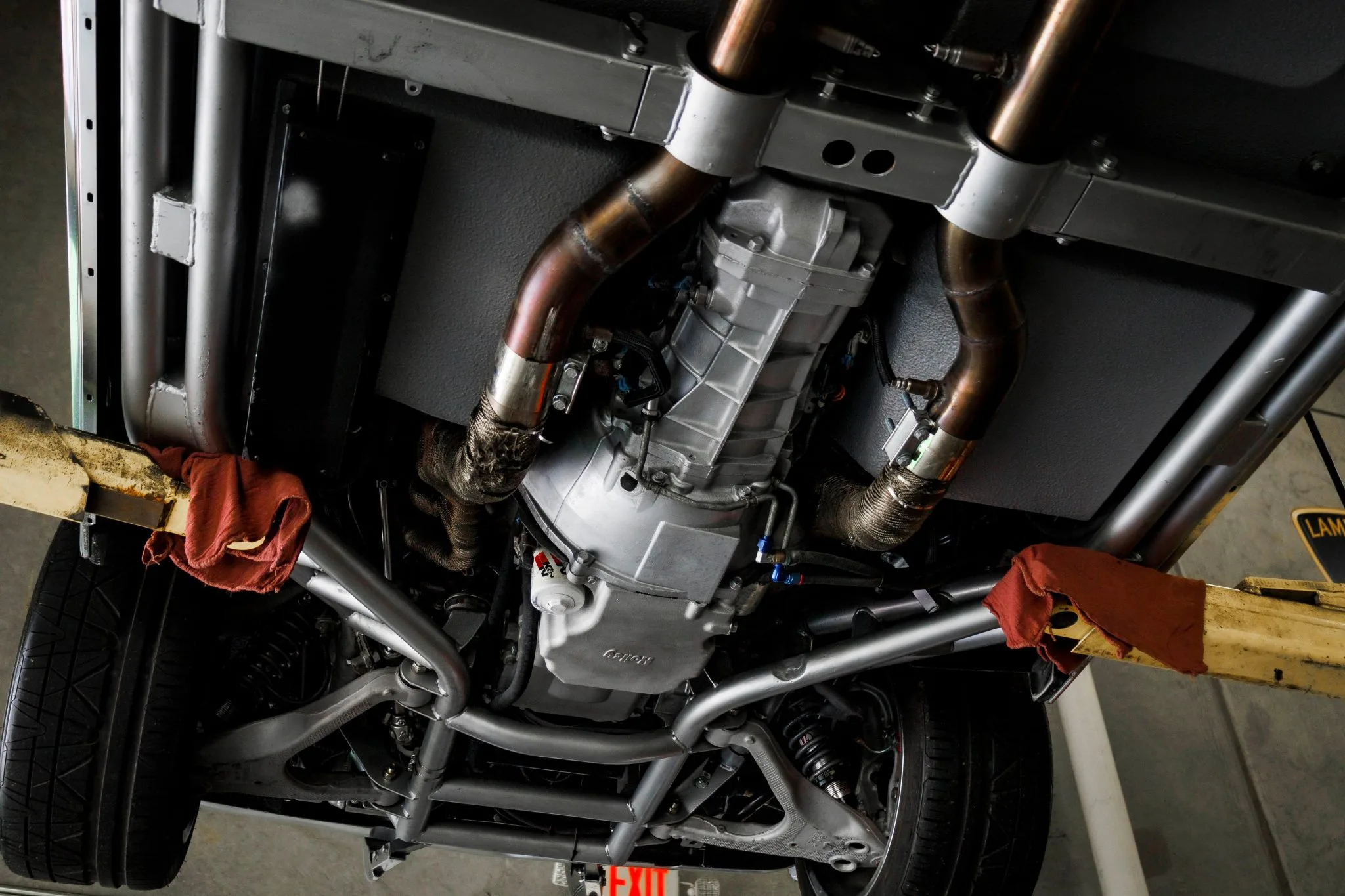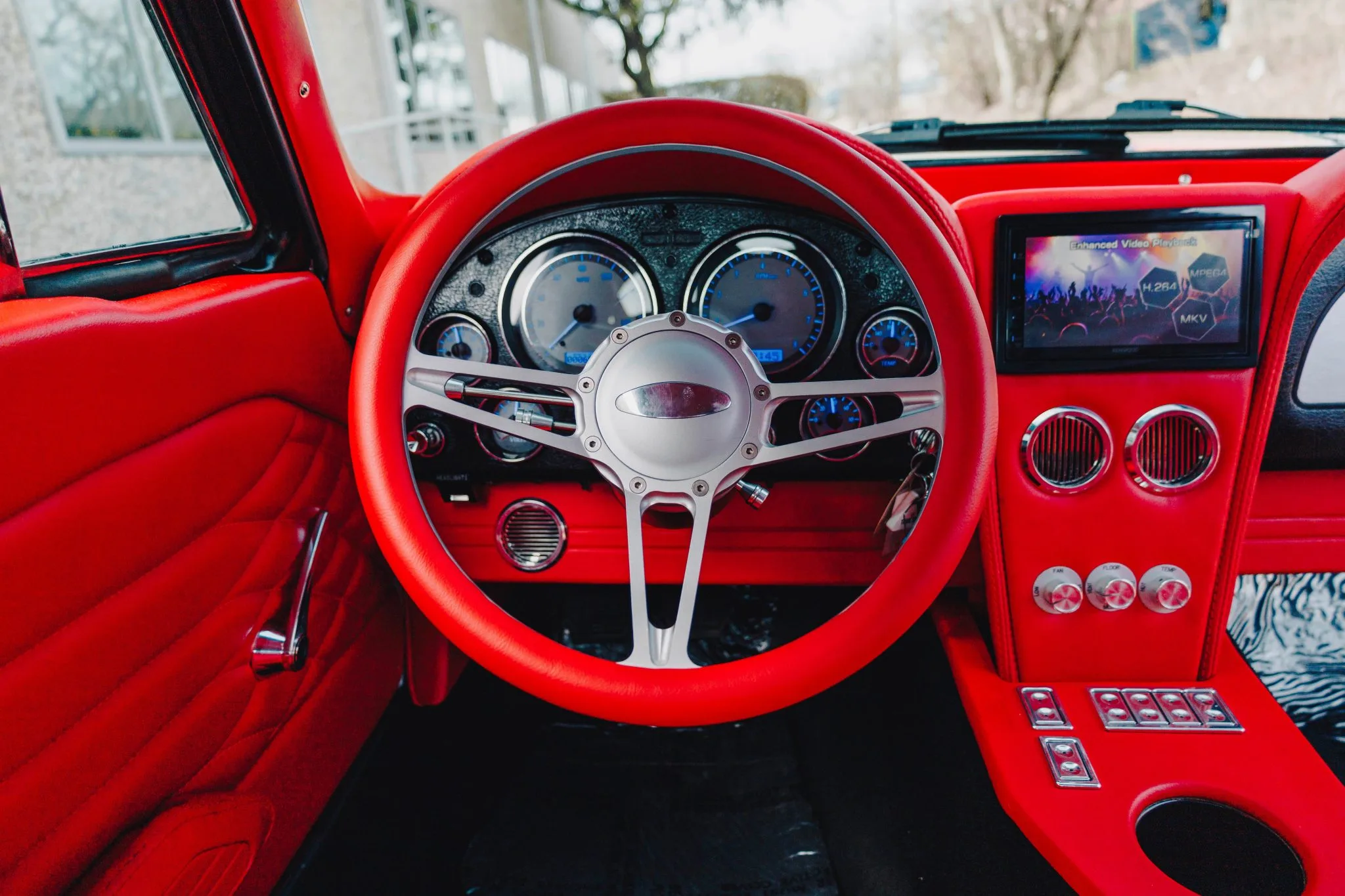 La climatisation Vintage Air, l’instrumentation Dakota Digital, une caméra de recul avec un système d’alerte de stationnement, un volant Budnik, une colonne de direction Iditit et un système d’infodivertissement à écran tactile Kenwood, peaufinent l’habitacle. Cette C2 Slit-window de 330.000$ est la favorite de Donald Trump. La carrosserie est toute autant stupéfiante que la mécanique avec un capot ventilé fonctionnel, des “évents” d’ailes, des rétroviseurs électriques, des phares à faisceaux et des jantes C7 Grand Sport montées de pneus Nitto Invo 255/40ZR18 avant et 305/30ZR19 arrière.