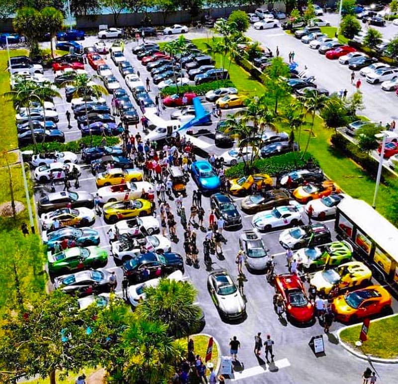 Lamborghini Diablo, Mercedes McLaren SLR, Tesla Roadster, Ferrari F430, Cadillac Allanté, Rolls Royce Phantom et Silver Cloud, ainsi que la Corvette Split façon Gran-Sport personnalisée de cet article. Ce n’est pas une collection homogène mais il ne l’est pas non plus, il suffit de visiter le site internet de son Club pour s’en convaincre. Chaque mercredi, un buffet de fruits de mer “six étoiles” est servi dans le patio central pour ses membres “exclusifs”, et il est possible d’y organiser des mariages somptueux dans le “Donald J. Trump Grand Ballroom”.…
