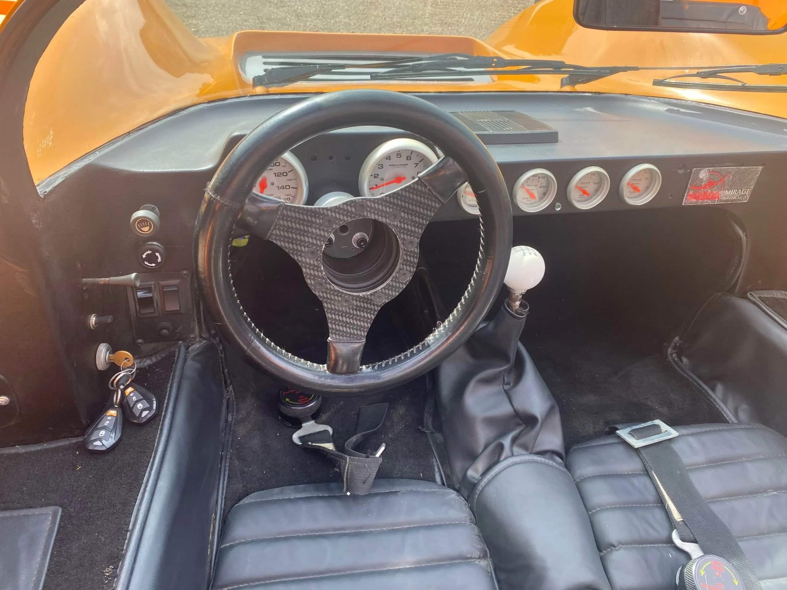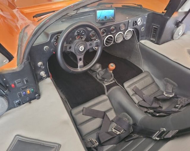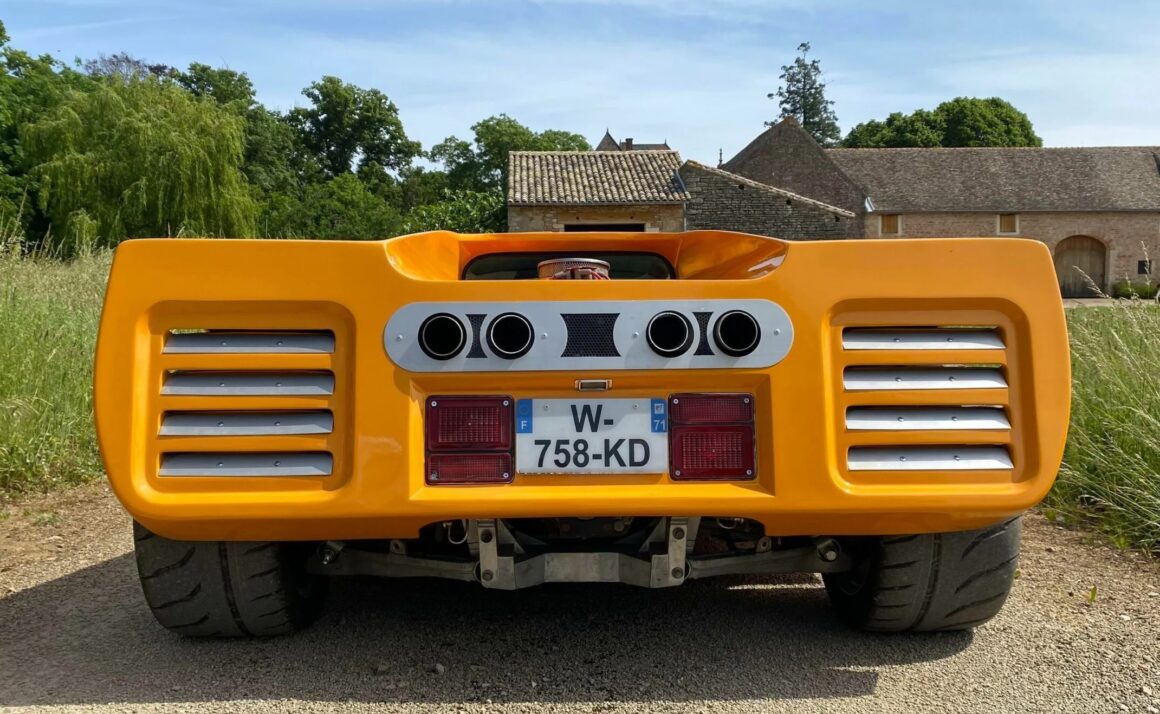 Sur le pare-brise, il y a un seul et unique essuie-glace. La carrosserie en fibre de verre dispose de portes en élytres qui basculent vers l’avant afin permettre à tout un chacun/chacune d’y rentrer si pas trop gros(se) ni trop grand(e) ni trop vieux/vieille… Doté de deux places, l’habitacle typé course est très surprenant pour un kit-car, même si les équipements installés à l’intérieur sont très aléatoires selon les goûts des propriétaires. Mais tout le monde sera unanime : avec un poids de 860kg, elle est extrêmement légère, permettant à son propriétaire de 1° connaître la joie de conduire une voiture semblant être une bagnole de course homologuée pour la route sur la piste 2° de sortir handicapé (si pas mort) d’un accident ! La carrosserie est brinquebalante, l’étanchéité inexistante, le confort nul et le bruit assourdissant… Il n’y a aucune référence légale de sécurité, tout est approximatif, la finition est précaire et le pilotage est aléatoire…