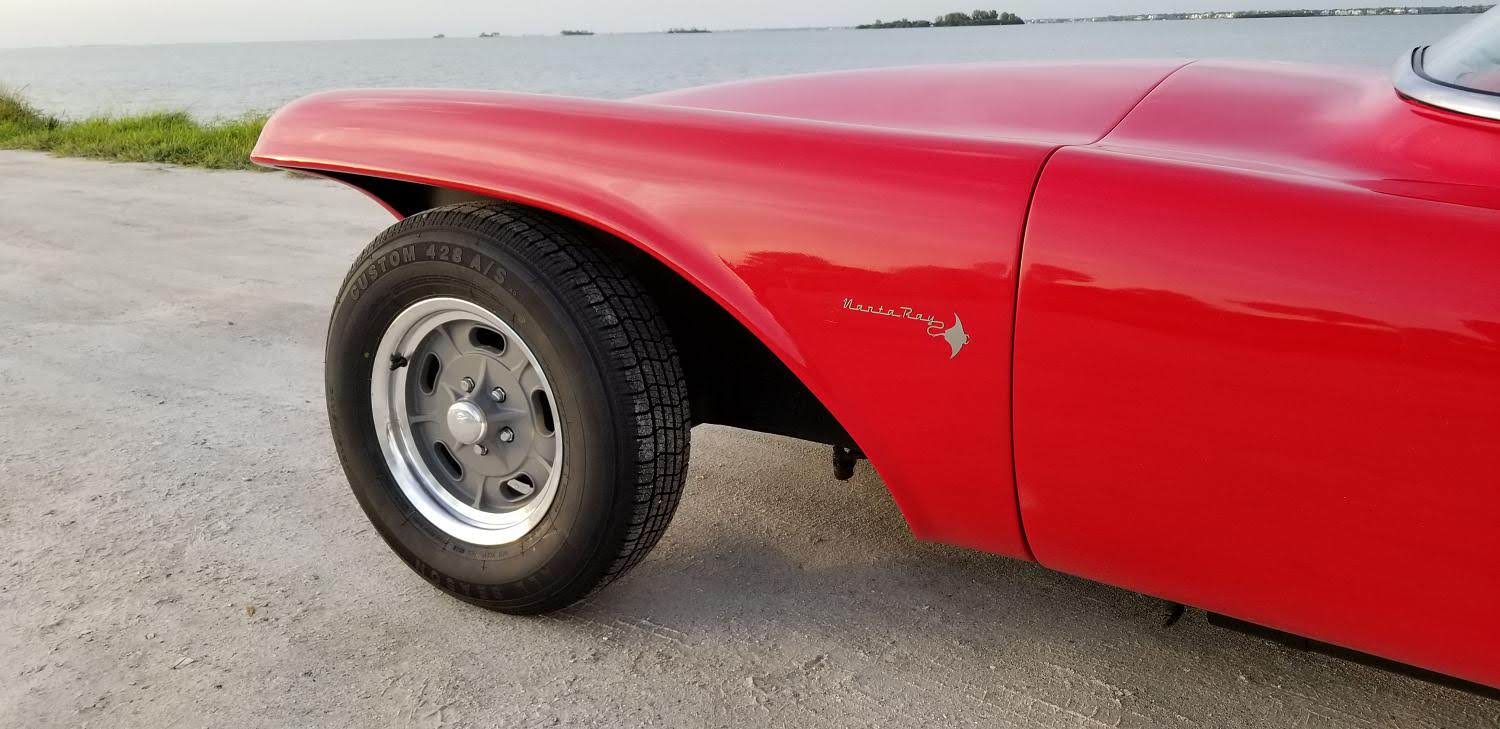 Il gardait l’empattement à l’identique, mais en réduisant la hauteur de la carrosserie pour lui donner un look plus fin et un aspect d’automobile sportive plus rapide. C’est en 1955 que Noël Bangert a lancé sa “Raie Manta” (la Manta Ray). Simultanément, il a créé sa propre entreprise qu’il a nommé tout simplement de son nom : “Bangert Enterprises”. Son slogan étant “Artistry in Plastics” qu’il a utilisé sur son papier à en-tête, sa “papeterie commerciale” et toute la communication publicitaire de l’entreprise.