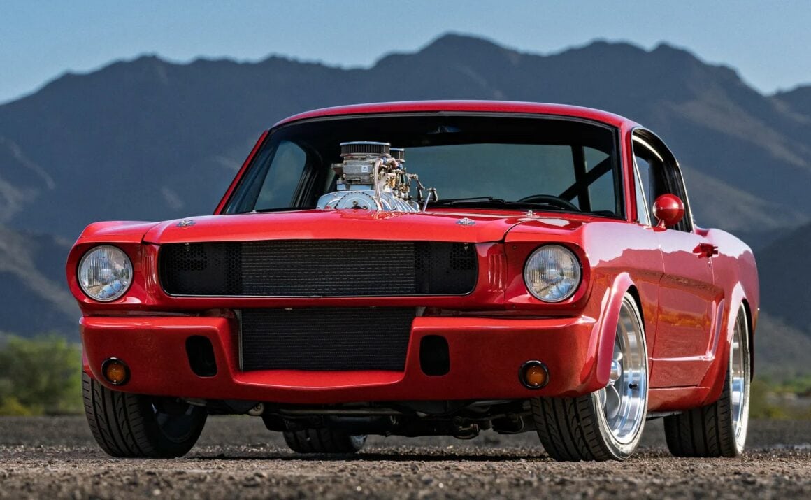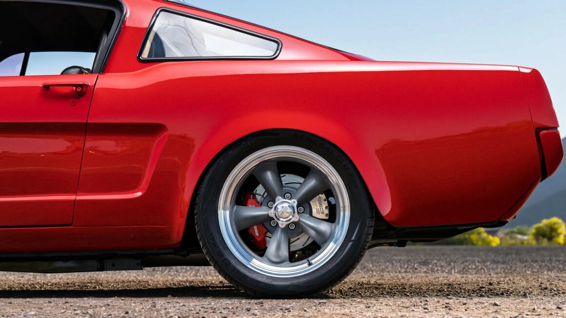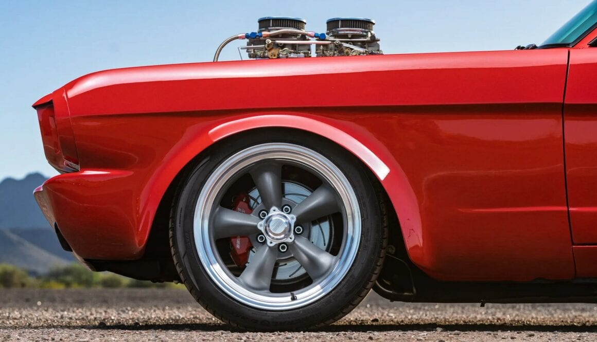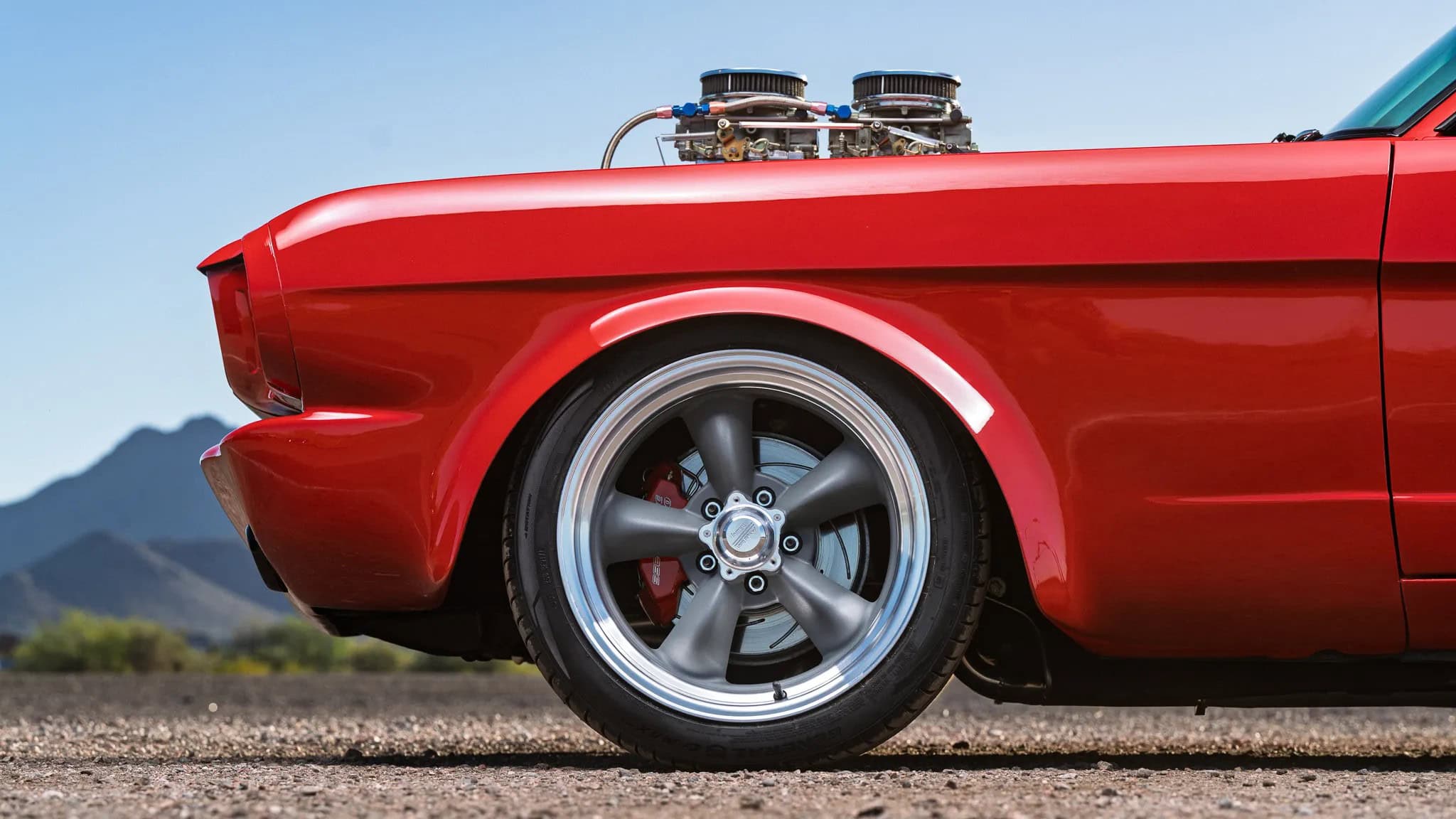 Les Jantes American Racing de 17 pouces étant montées avec des pneus General G-Max 215/45 AV et 275/40 AR. Le V8 Ford 302ci est doté de culasses Edelbrock Performer, d’un compresseur 6-71 et de deux carburateurs Holley à quatre corps alimentés par une pompe à carburant mécanique Edelbrock et une pompe à carburant électrique Holley. Une bobine d’allumage MSD Blaster SS et un distributeur Mallory Unilite avaient également été installés.