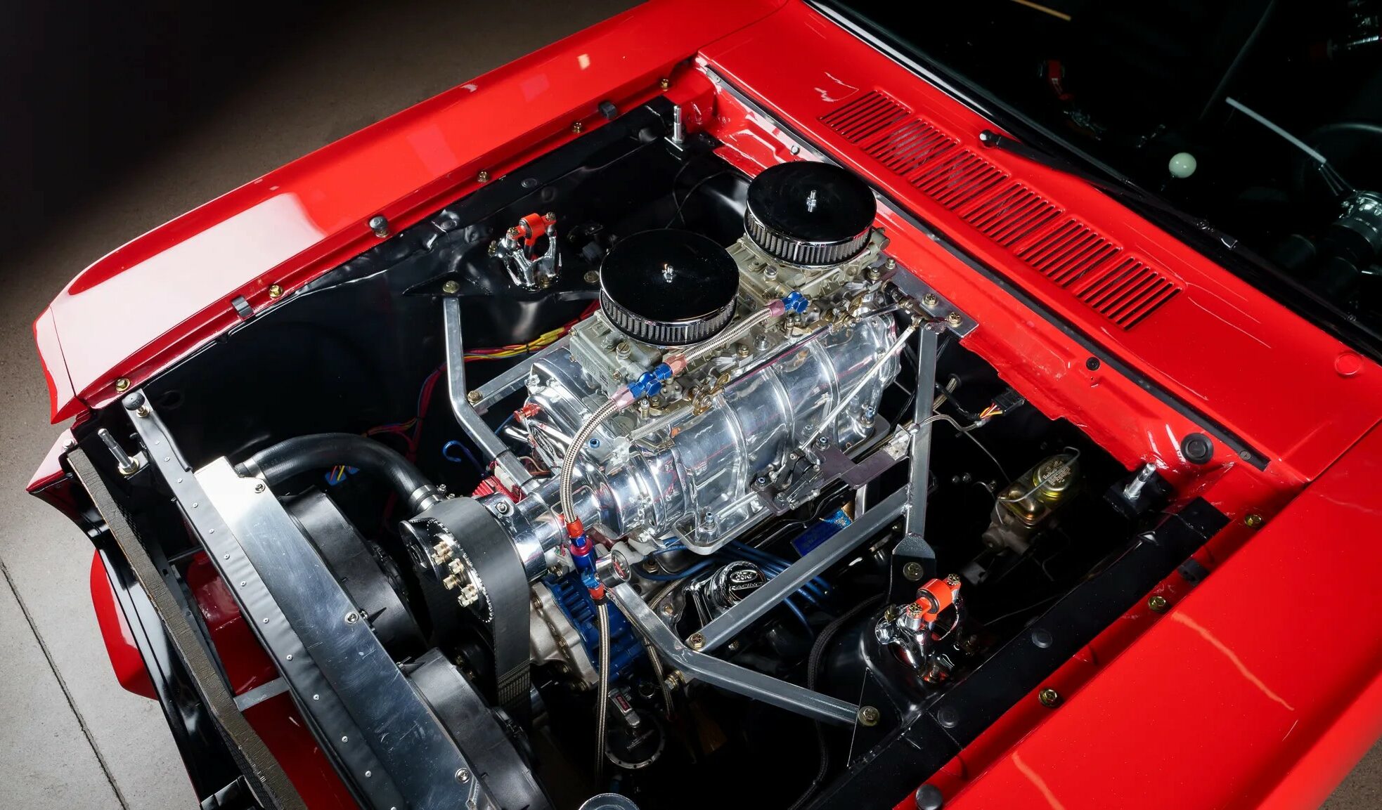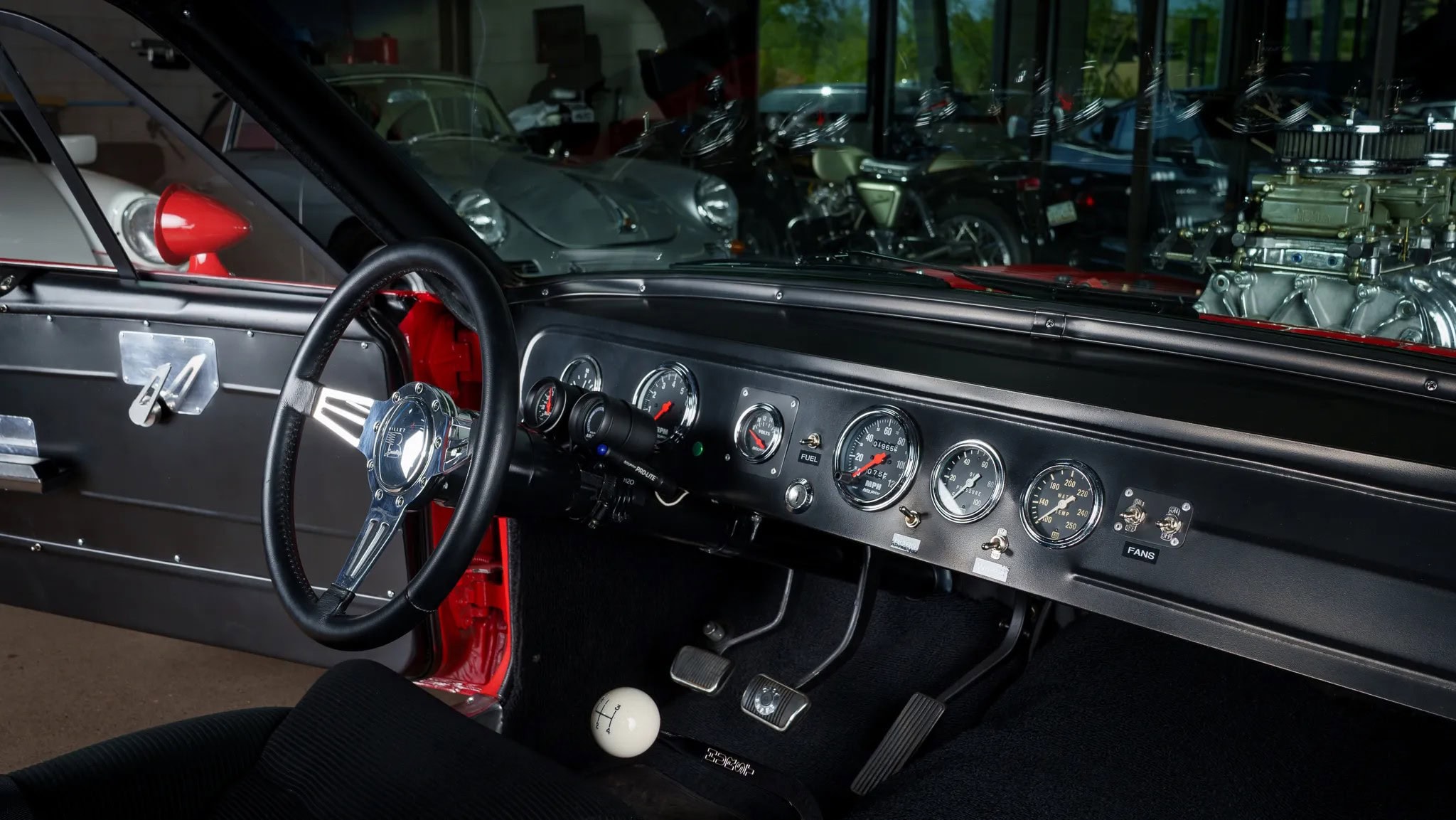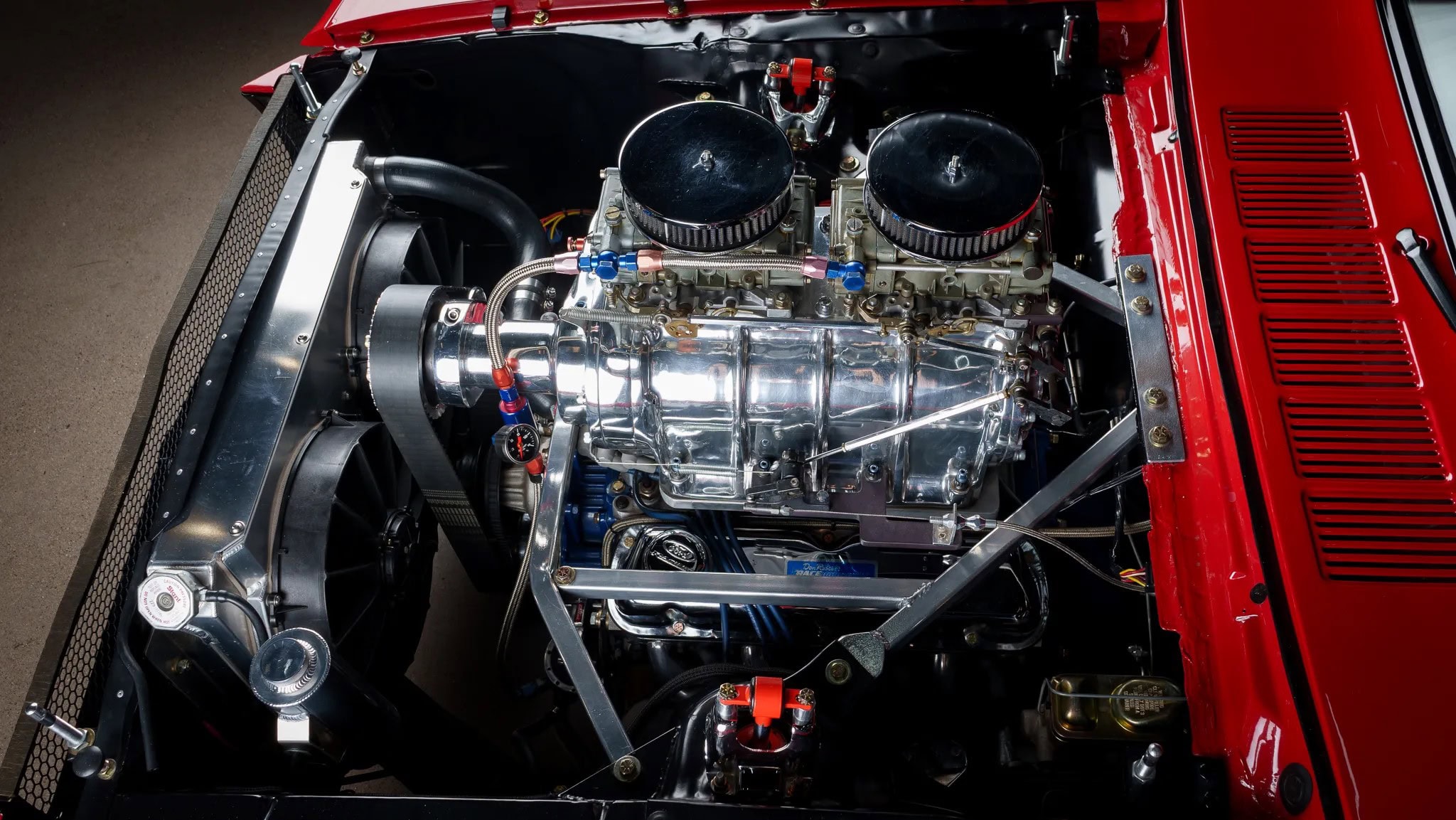 Des aménagements supplémentaires comprennaient un carénage et des panneaux de porte en aluminium sur le tableau de bord, des harnais Simpson, des poignées de porte en billette, un extincteur et un levier de vitesses Hurst surmonté d’un bouton de “Cueball”. Le compteur kilométrique à cinq chiffres indiquait seulement 2.000miles parcourus. La batterie avait été déplacée dans le coffre et un réservoir de carburant à remplissage latéral installé.