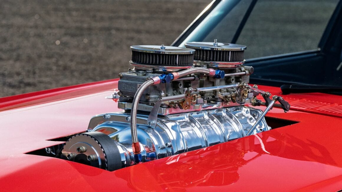 Le point culminant de cette déconstruction/reconstruction fut l’abandon du V8 original (qui n’avait jamais été sollicité), par un Ford V8 Boss 302ci surmonté d’un compresseur 6-71, de deux carburateurs Holley à quatre corps (sans la gamelle de prise d’air qui sinon obturait toute la vue) et de culasses Edelbrock Performer, le V8 étant lié/marié à une transmission Toploader manuelle à quatre vitesses et à un pont différentiel Traction-Lock en 3,70.