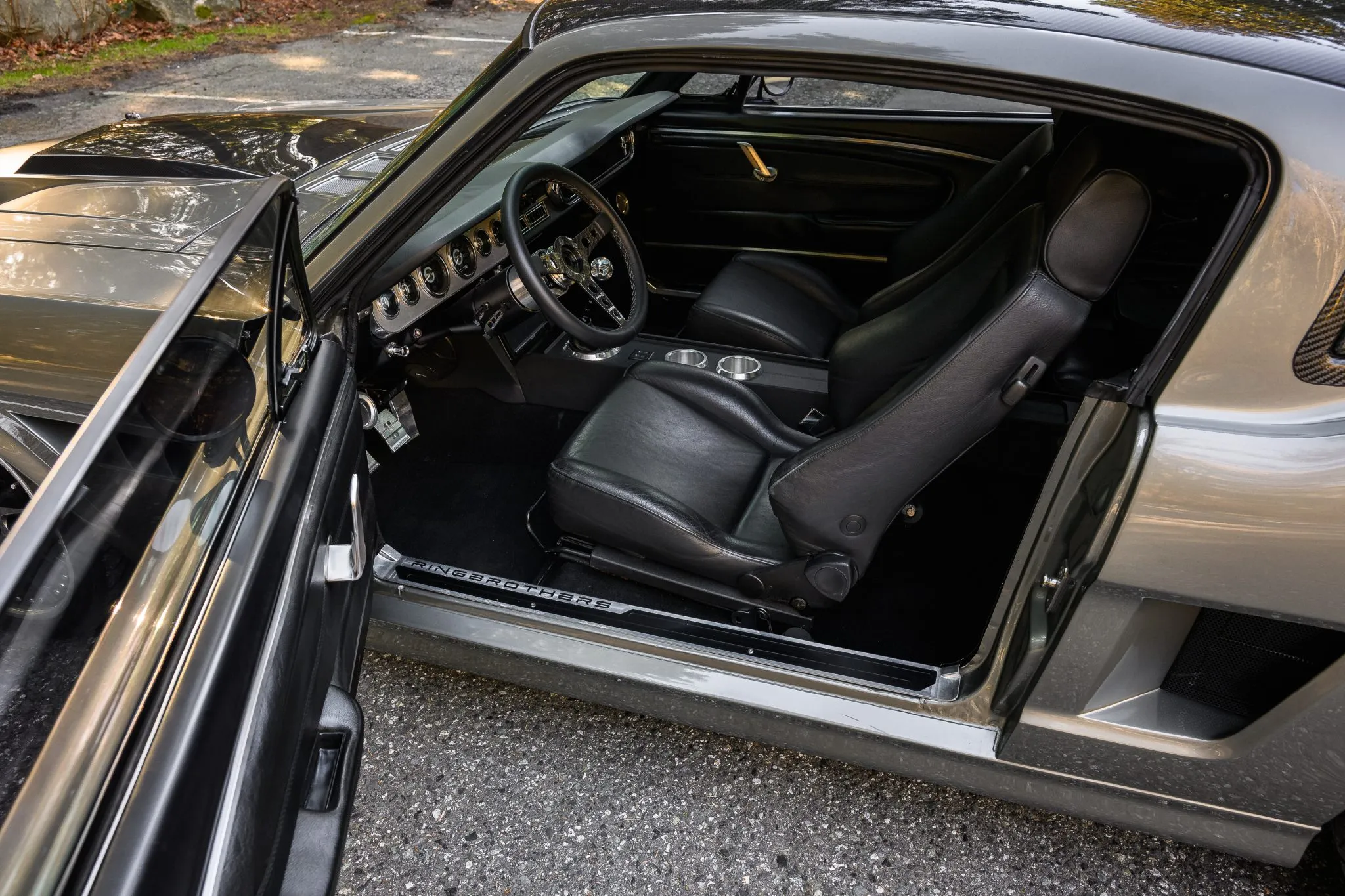 S’agissant de la Ringbrothers, le châssis a été réalisé avec un plancher entièrement en tôle, une cloison pare-feu, un vrai compartiment moteur et un plancher de coffre… La voiture donneuse a été vidée jusqu’à une coque extérieure posée sur le nouveau châssis. C’était l’une des premières choses. On se demande toutefois si tout n’est en réalité qu’une sorte de mise à niveau “restomod” pour répondre aux critères du donneur d’ordre…