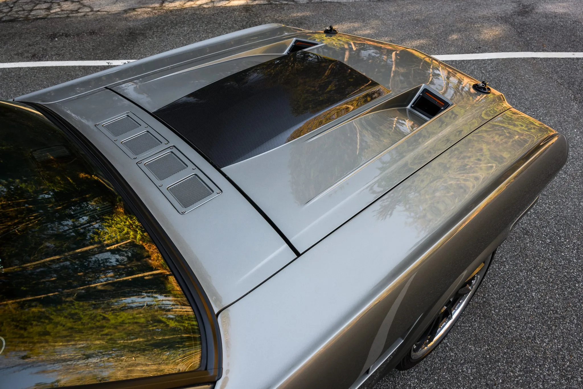 Tom est décédé quelques semaines plus tard, nous ne saurons donc jamais ce qu’il pensait de la Mustang’65 Ringbrothers, mais il a toujours espéré que son V8 aiderait à garder sa mémoire vivante. Utiliser cet hyper brutal 408ci de 1000cv a quelque peu compliqué la construction et d’avoir un capot plat façon d’origine. Il a fallu se débrouiller une fois que le nouveau châssis a été construit à l’intérieur de la Mustang, comme un navire dans une bouteille.