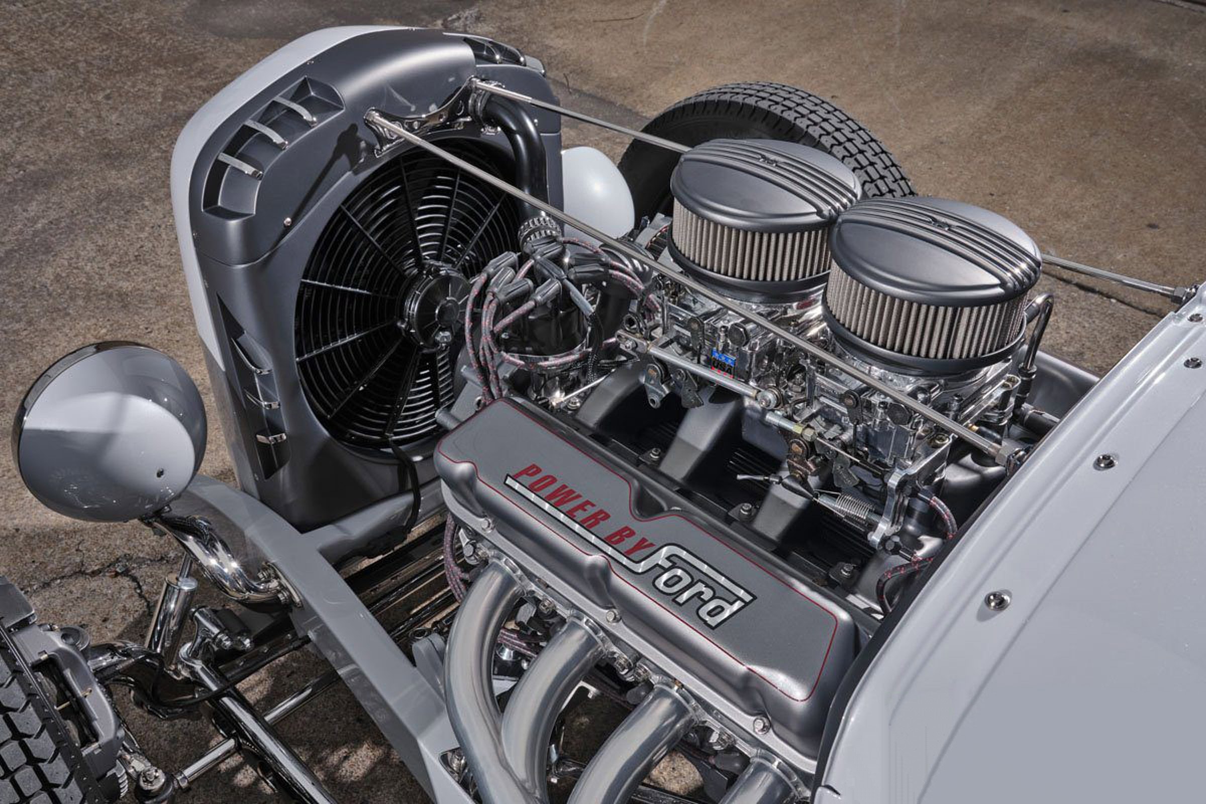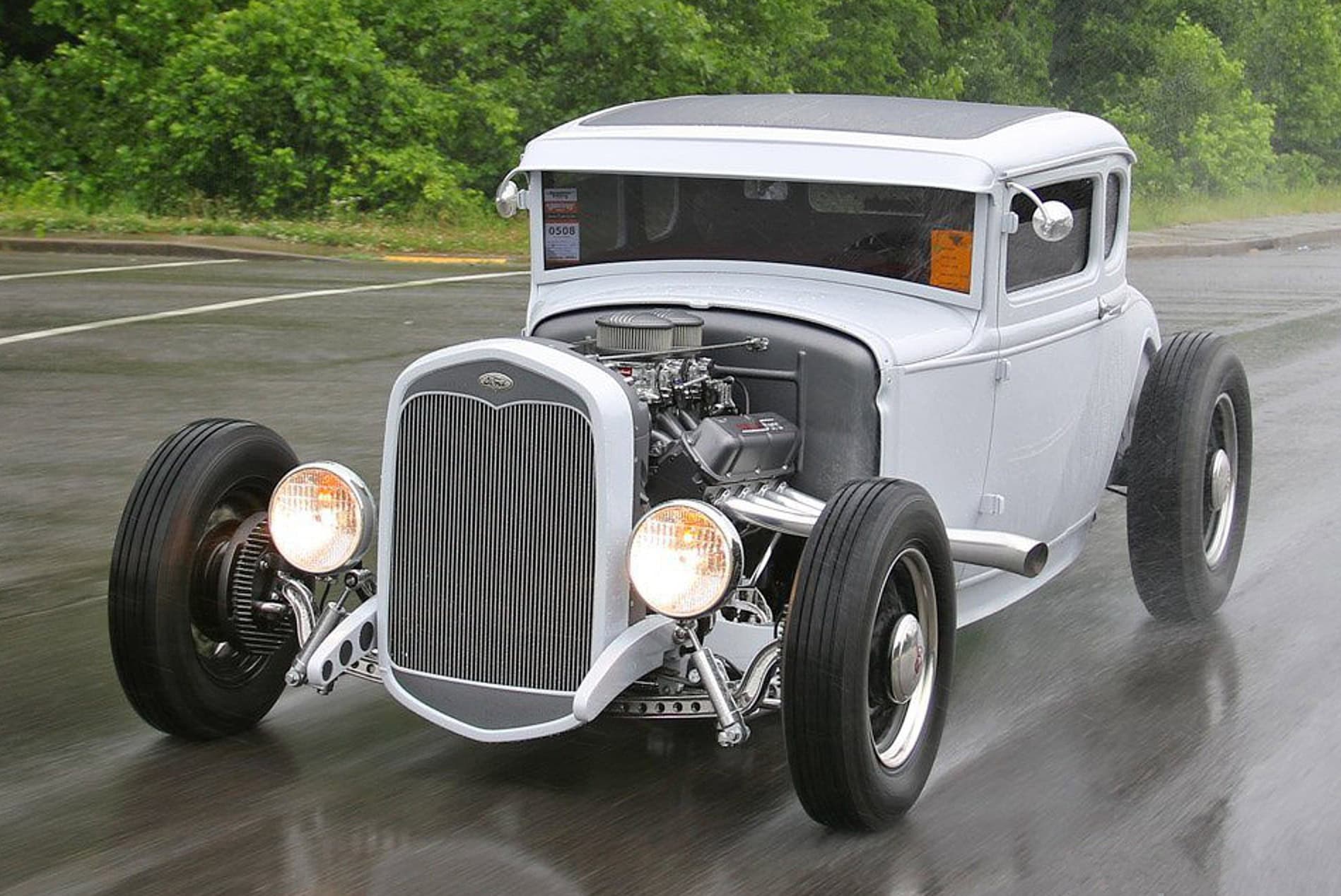 A vrai dire/écrire vrai, je me suis amusé à me piéger moi-même et vous en ricochet… La démonstration de s’être rendu prisonnier est éclatante… Le “A vrai dire vrai” est : “Qu’est-ce qu’on en a à foutre ?”... La réponse est “Rien !”... Bien qu’elle n’ait que 22 ans, Natalie Bolea, américaine, possède une certaine expérience dans l’univers des Hot Rod’s, ayant participé à des shows intérieurs et extérieurs avec son père, Rick, depuis sa plus tendre enfance, ce qui a inspiré Natalie Boléa à s’associer à EJ Talik de “Craftworks Fabrication” pour construire ce superbe coupé Model A… La base de cette préparation est un châssis de chez “Roadster Shop Craftworks”, comportant un essieu AV Super Bell surbaissé, une suspension AR à quatre bras avec des combinés amortisseurs filetés et un pont arrière “Currie” de 9po. Le tout repose sur des jantes à rayons Dayton de 16po AV et 18po AR . Le moteur est un V8 Chevy LS préparé par Don Hardy avec deux carburateurs Edelbrock à quatre corps et des collecteurs d’échappement sur mesure de type “lake”.