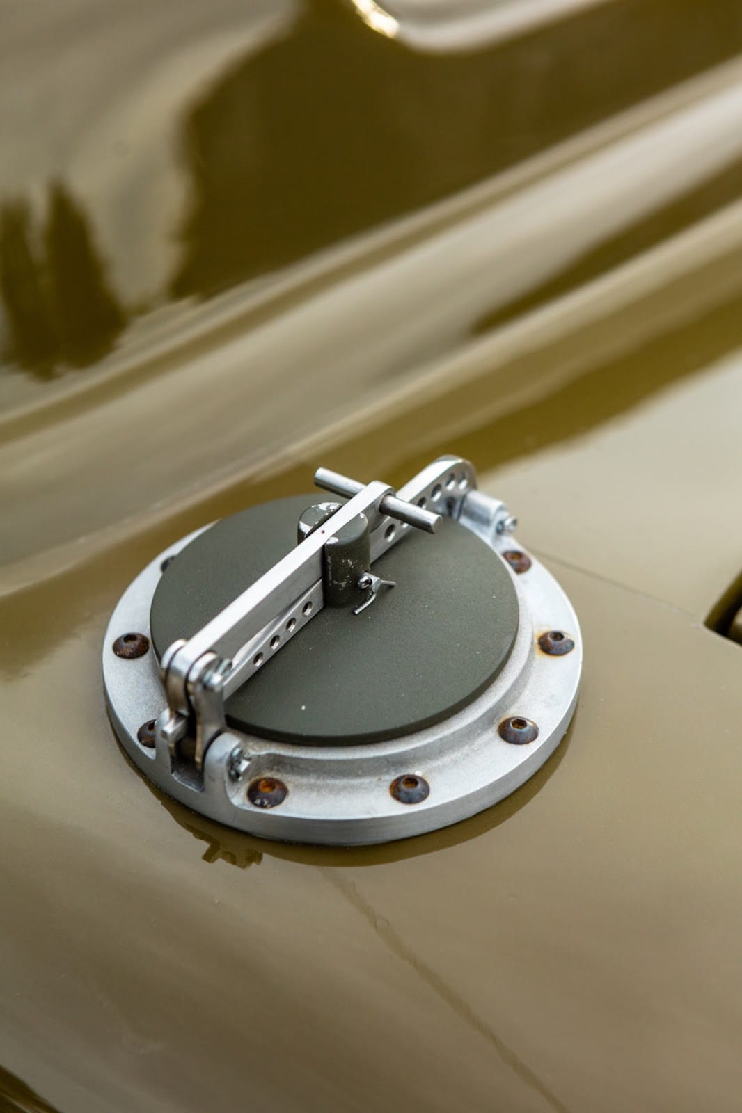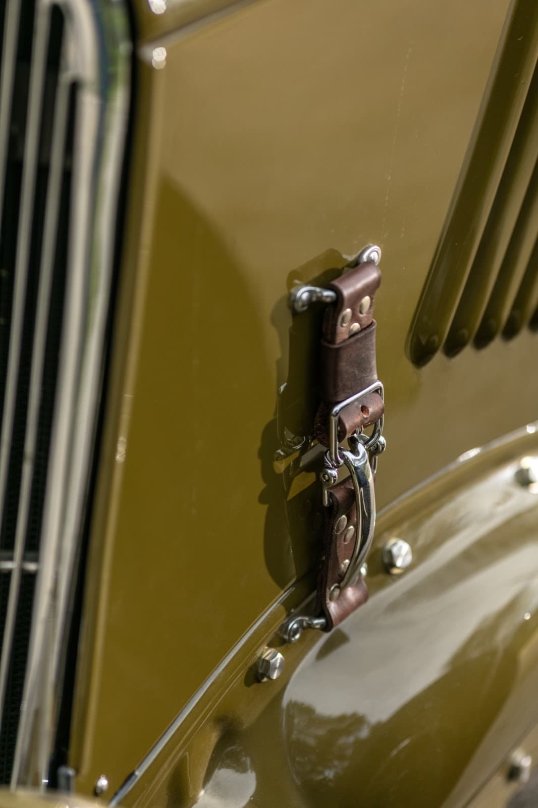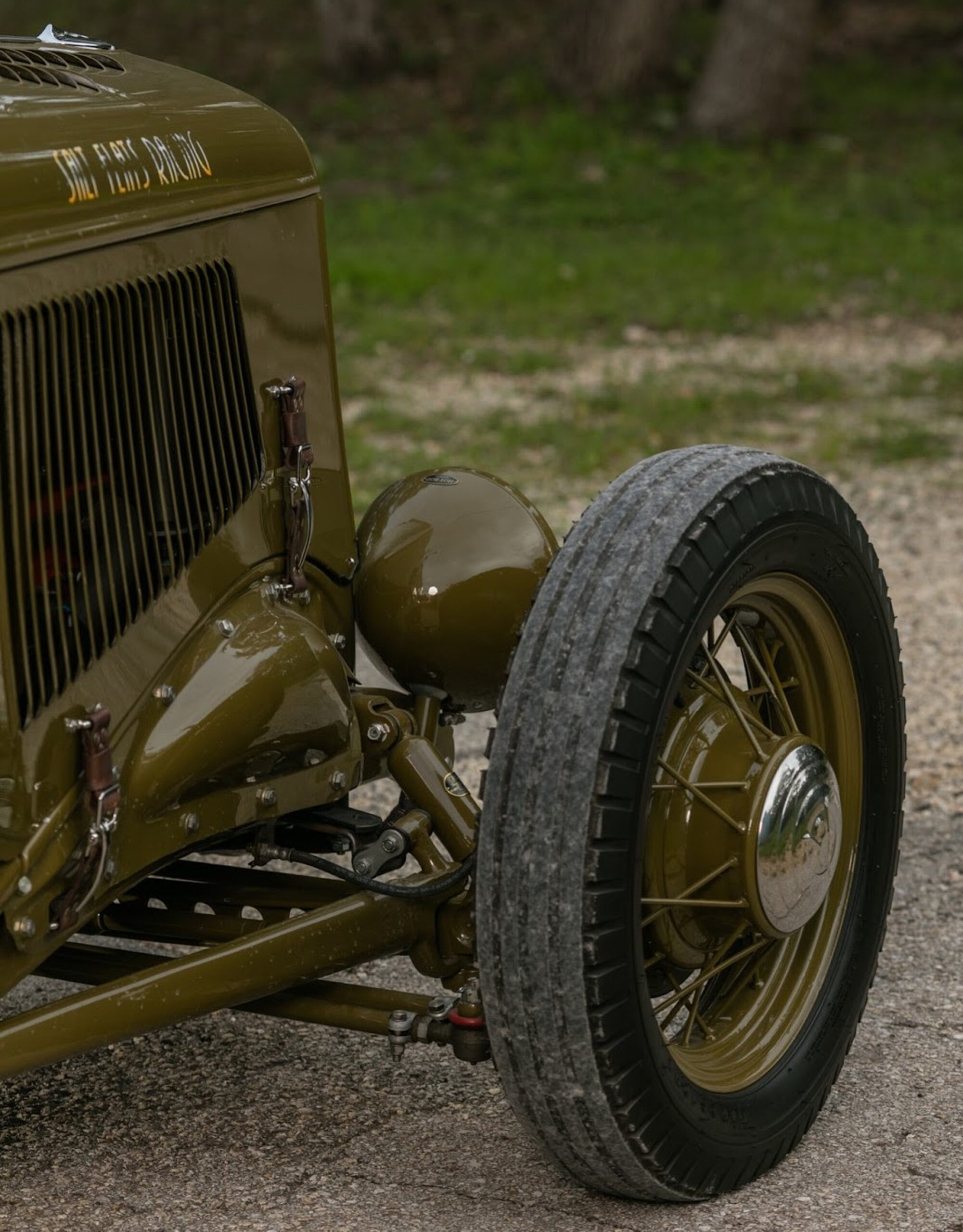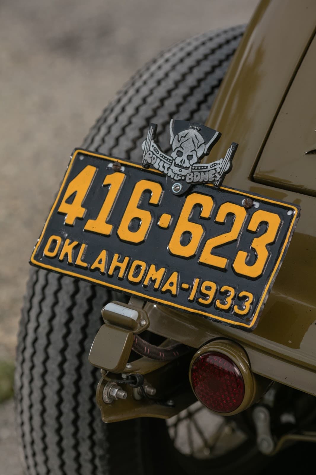 Mais avant de compter celles de l’extérieur, ce sont celles à l’intérieur du coupé qui le distinguent vraiment. Jetez un coup d’œil à l’intérieur du cockpit : on y voit facilement les cadrans, les interrupteurs, les ceintures de sécurité et les sièges en cuir élégamment travaillés. Mais ne ratez surtout pas le “toit” ! À son âge plus élevé que le mien, Otis incarne le Hot Rodding à l’état pur, se fondant littéralement dans sa ’33 rabaissée et modifiée.