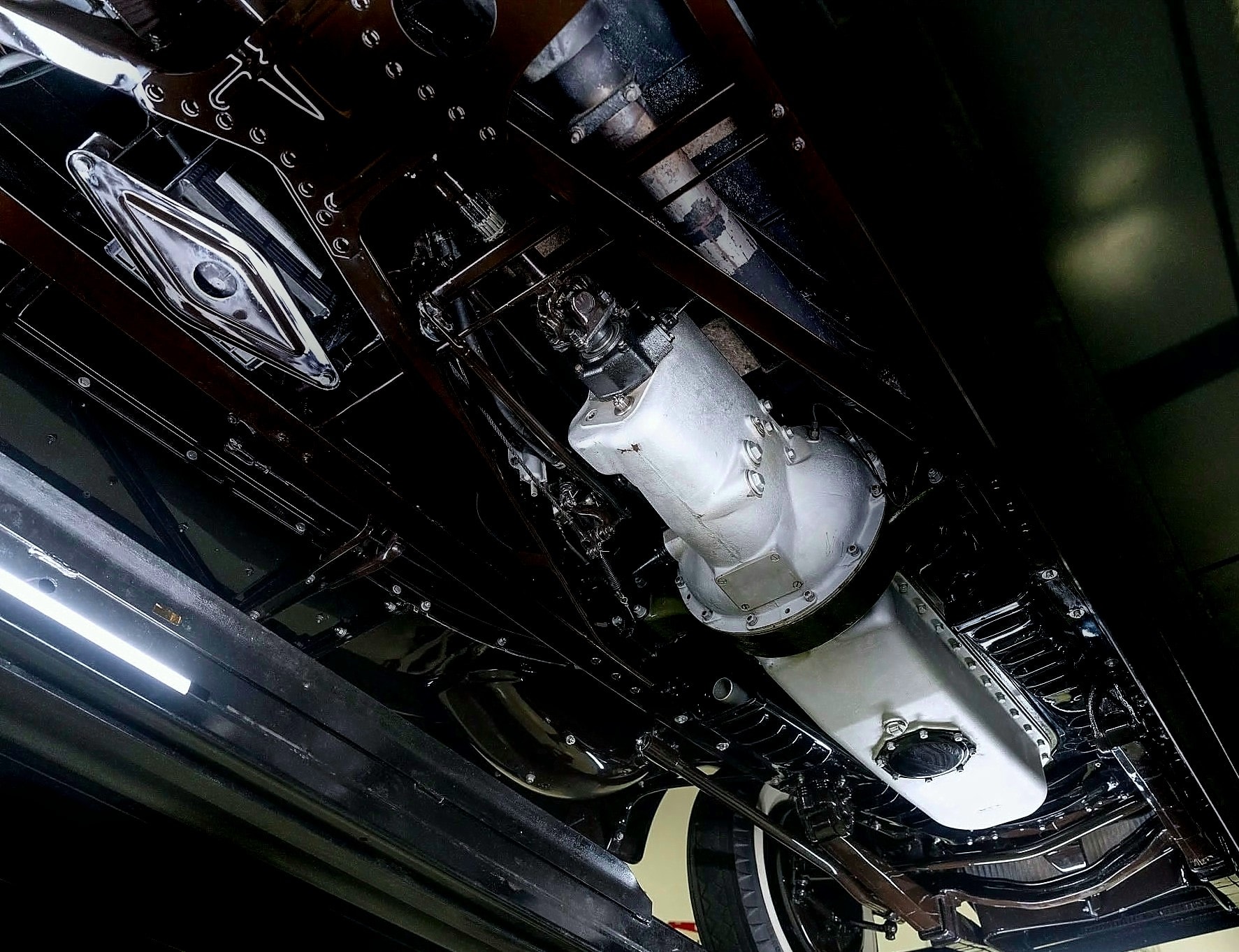 La puissance était évaluée en usine à 160 chevaux. Le moteur a été révisé lors de la remise à neuf avec des travaux comprenant le resurfaçage des culasses, le meulage des soupapes, la refonte des roulements à billes et le remplacement des pistons, des segments, de la chaîne de distribution et des sièges de soupape. Le radiateur a été refait et le carburateur, le générateur et la pompe à eau ont été reconstruits. La puissance est envoyée aux roues arrière via une transmission manuelle à trois vitesses au plancher qui a été révisée au cours du projet.
