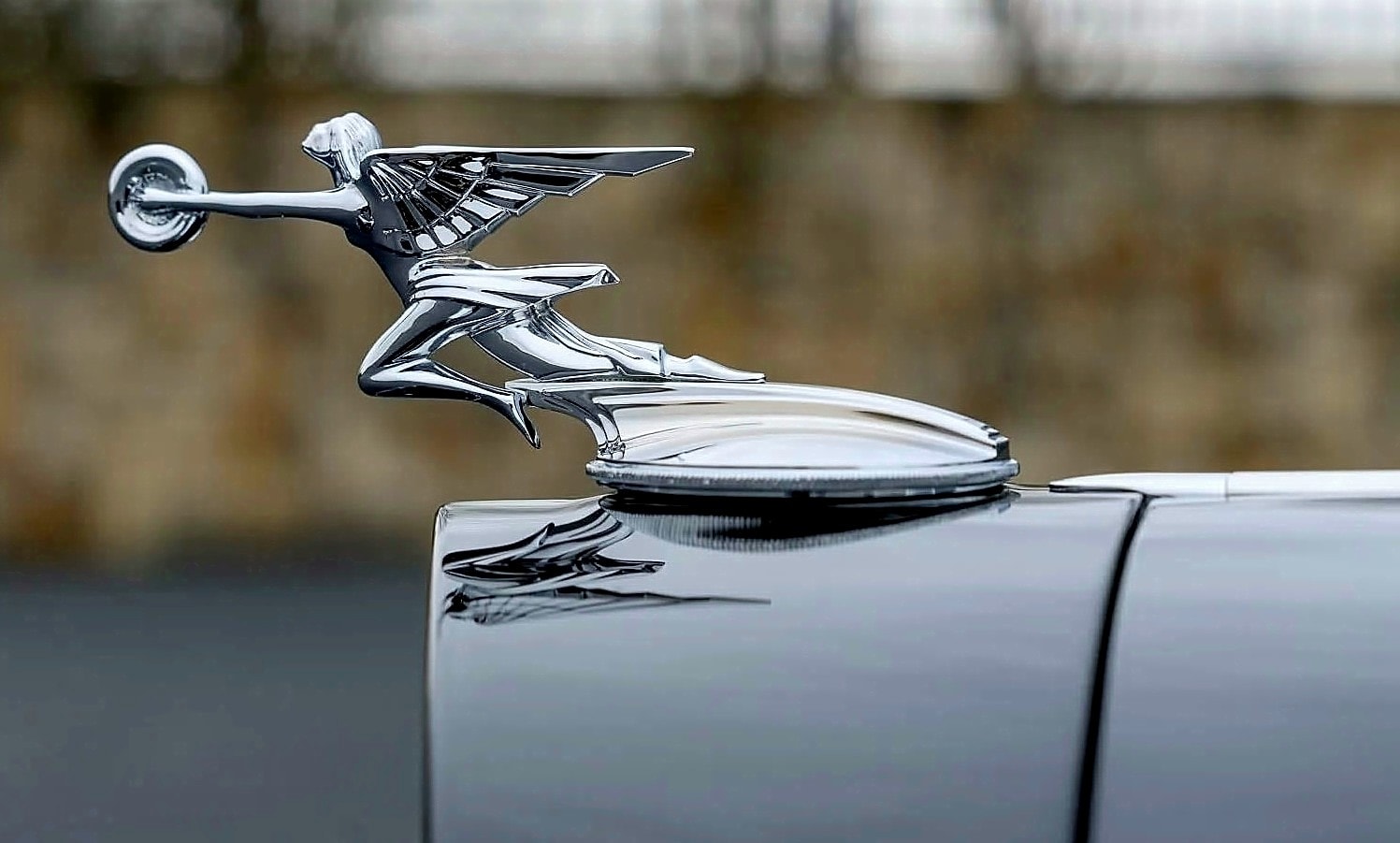 Les caractéristiques comprennent quatre portes articulées au niveau des montants B, des pare-chocs avant et arrière à contrepoids, une coque de radiateur couleur carrosserie, des volets de calandre à commande thermostatique et une mascotte de radiateur Goddess of Speed. Les jantes à rayons chromés ont été remises en état lors de la rénovation et portent des pneus Bedford à larges flancs blancs et à carcasse diagonale. Les roues de rechange à montage latéral double sont logées sous des couvercles peints.