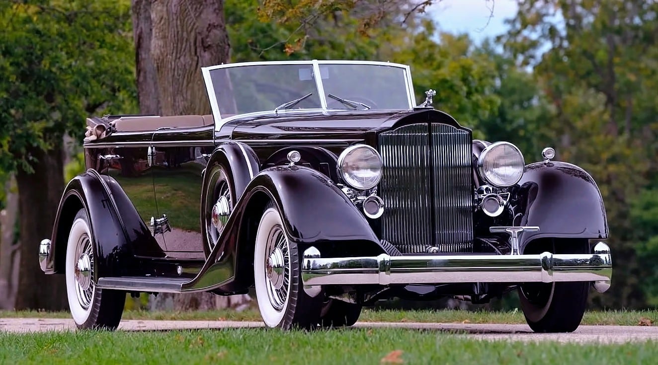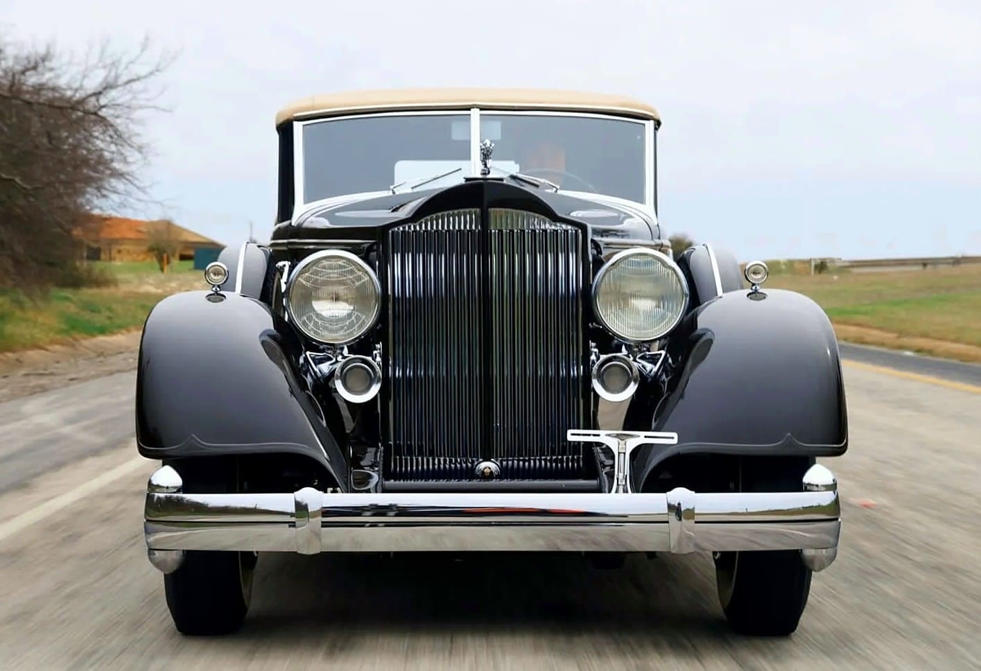 Ces voitures ont été construites en grande partie selon les goûts individuels, comme le sont les véritables “Customs d’usine”. Leurs carrosseries frappantes étaient connues pour leurs lignes souples et sportives, créées par les pare-brise en V, une ligne de ceinture qui s’éloignait du pare-brise et une ligne de capot extraordinairement longue. Ces voitures étaient extrêmement chères, en particulier les douze cylindres à tête en L qui déplacaient 445ci et développaient 160cv. La Dietrich Packard avait la puissance à la hauteur de son style.