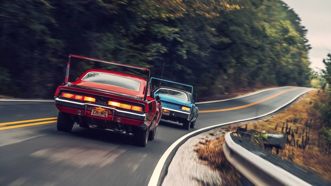 Le cône qui ajoute 90 kg d’appui à haute vitesse, contribue à un coefficient de traînée de 0,31 cD et prolonge l’avant d’environ un demi-mètre par rapport à la voiture sur laquelle elle est basée. (Note à moi-même retrouvée dans le fatras de mes notes : “Faire attention de ne pas écraser le faux nez si je dois me garer à un moment donné, idem pour le porte-à-faux arrière qui pourrait également avaler une Fiat 126, de sorte que la marche arrière ne peut pas non plus être expédiée avec un abandon désinvolte”... De l’intérieur, cependant, cela ne semble pas intimidant, à moins qu’on soit effrayé par la caricature du dessin animé Road Runner qui regarde depuis le centre du volant à trois branches à jante mince. Un coup de poing de celui-ci suscitera la marque de fabrique du personnage “bip bip” à la place d’un klaxon ordinaire. La dernière fois que j’ai vérifié, je n’étais pas le Coyote, alors j’ai glissé la fine clé dans le canon d’allumage et le V8 Super Commando s’est mis en route. Je me suis appuyé contre le siège, mince mais confortables,, j’ai incline le levier de vitesses automatique en D et me suis éloigné…. Cet exemplaire était équipé du V8 440 Super Commando Six Barrel de milieu de gamme, l’un des 716 construits, bien qu’une version à quatre corps du même moteur, ainsi qu’un V8 426 Hemi de 7,0 litres, étaient disponibles.