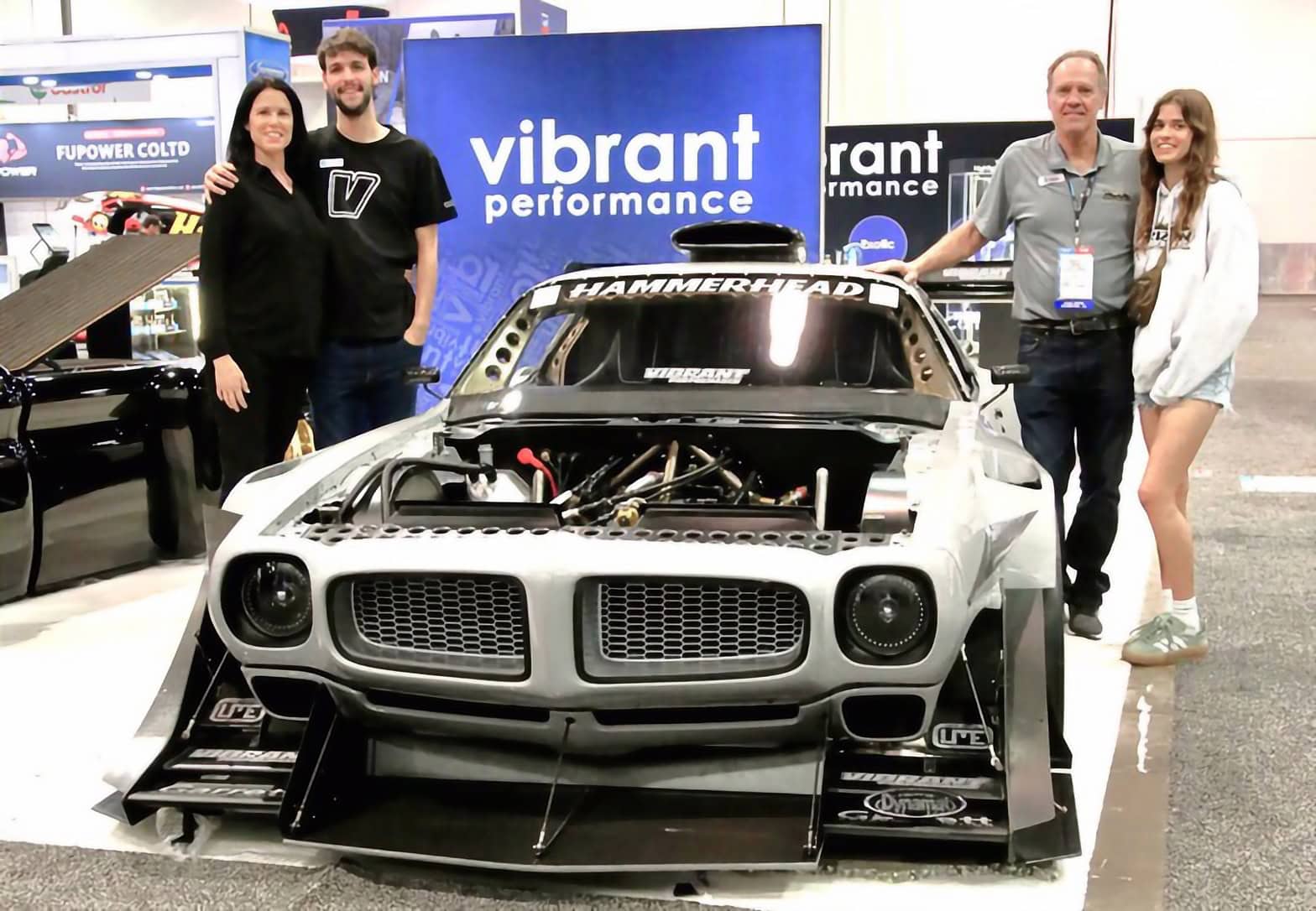 Quant à l’avenir, le rôle de mentor de l’Hammerhead passera bientôt d’une étude de fabrication/ingénierie à une étude englobant le réglage et les tests. À terme, cela conduira au développement des compétences des conducteurs à la pointe de la technologie. Ce n’est pas la dernière fois que vous voyez cette Trans-Am Hammerhead et les Cameron père et fils. Nous nous attendons à ce qu’ils se présentent à des événements plus médiatisés avec la Trans Am 1973. Une chose est sûre, au moment où Cavan obtiendra son diplôme de l’IUPUI, il sera une force avec laquelle il faudra compter. Nous sommes presque au bout du bout… Ci-après, photo souvenir des stars de cette affaire… De gauche à droite : Molli Cameron, Cavan Cameron, Russell Cameron et Clara Cameron au salon SEMA 2023 à Las Vegas : “Ma fille Clara a appelé la voiture ‘Hammerhead’. Elle nous rendait visite dans l’atelier un jour où la voiture était à l’envers. Nous travaillions sur le fond plat, les tunnels et le diffuseur. Elle a dit : « Héééééééééhhhh, ça ressemble à un de ces requins, un requin-marteau »… Traduction Hammerhead… C’est resté comme nom”…, m’a dit Russell.