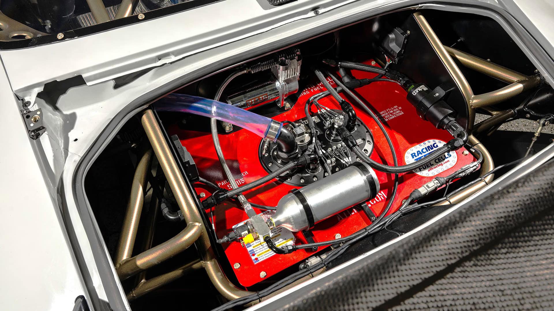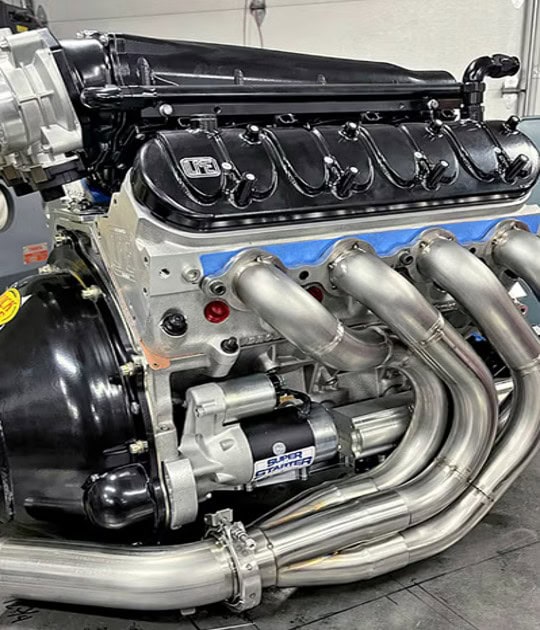 Moteur : V8 400ci (famille de moteurs LS), bloc LSR en alliage d’aluminium Concept Performance, vilebrequin forgé Callies Magnum, pistons forgés diamantés, bagues d’étanchéité totales, roulements Clevite série H, arbre à cames à rouleaux pleins personnalisé LME (durée de 258/266 degrés, levée des lobes de 0,446/0,440po), pompe à eau Jones Racing Products, ventilateurs d’extraction Spal, démarreur Tilton, recul du moteur de 28po (pas une faute de frappe !), système complet de carburant flexible par Radium Engineering