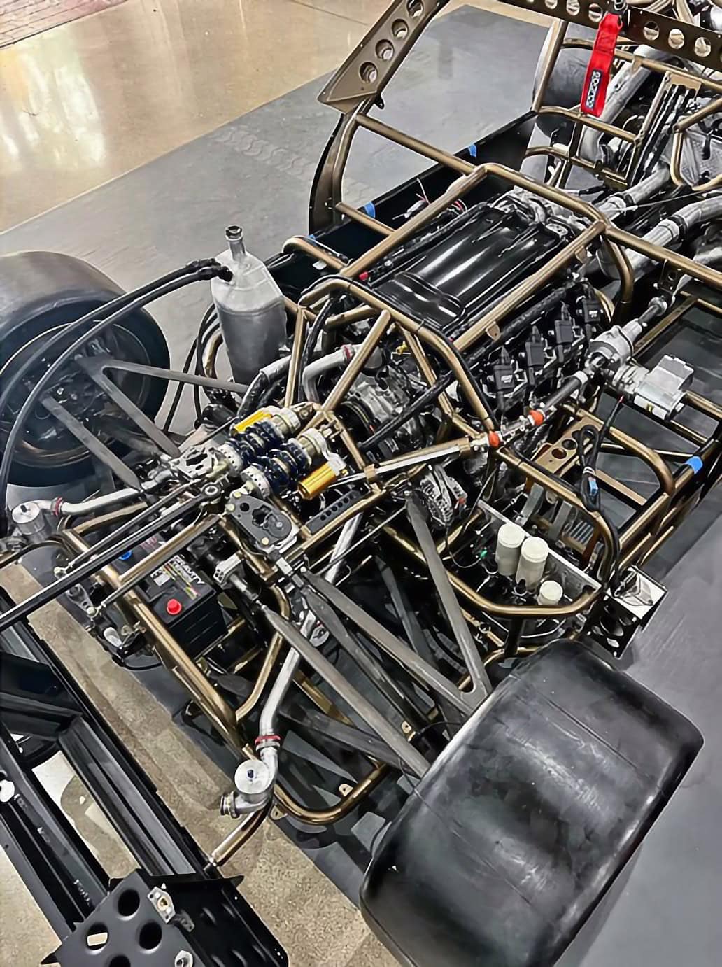 Sauf dans les domaines où les sports mécaniques sont une activité majeure. La grande région métropolitaine d’Indianapolis y est qualifiée et Noblesville en fait partie. Dan Nicholson, coordinateur des stages du lycée de Noblesville, a joué un rôle déterminant dans la réalisation de ce projet en obtenant des pièces IndyCar vraiment incroyables mais déclassées, dont d’énormes jantes et pneus, des suspensions etc etc… Un V8 400ci Trans Am à refaire était le cœur de la bête et Late Model Engines (LME) de Houston, au Texas a aidé à le reconstruire en utilisant un bloc LSR provenant de chez Concept Performance comme base, LME a utilisé un vilebrequin forgé Callies Magnum, des pistons forgés 10,5:1, des bagues Total Seal, des roulements Clevite de la série H et un arbre à cames à rouleaux pleins personnalisé LME. Couplé à cela est un collecteur d’admission LME à double corps avec deux turbocompresseurs Garrett G35-900 et des injecteurs de carburant Injector Dynamics ID1700. La gestion du moteur est assurée par un système Motec, et la puissance est estimée à 1800cv avec une suralimentation de l’ordre de 12 à 20 psi. C’est beaucoup de morve pour une voiture qui fait pencher la balance à 3.100 livres.