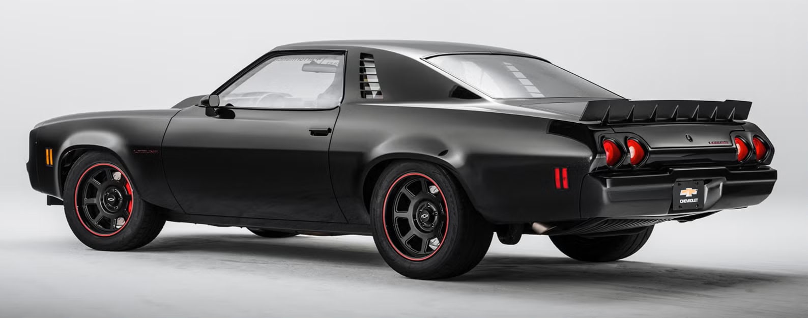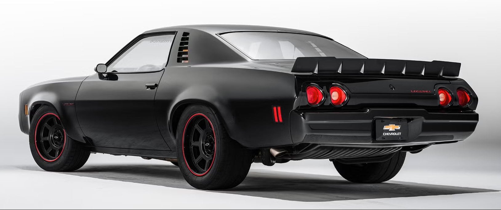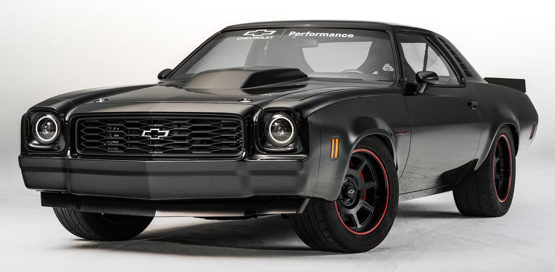 Sa ressortie mi mars 2026 à l’occasion d’un supershow, sous la supervision de Jeff Walker, offre une nouvelle occasion d’examiner une voiture regorgeant de caractéristiques uniques… Au premier abord, la voiture paraissait en excellent état, mais, provenant de l’Ohio, région au climat salé, la carrosserie présentait quelques signes de corrosion. L’équipe de restauration Chevrolet s’est néanmoins attelée à la tâche, entre la restauration de la carrosserie et quelques améliorations personnalisées. Ce n’était pas un modèle Laguna d’origine, aussi la face avant avait-elle été équipée d’une calandre adaptée. Les bas de caisse avaient également été redessinés, tout comme les vitres de custode arrière. Comparez à un modèle de série et vous constaterez les différences. Elles sont subtiles, mais très efficaces. L’équipe avait aussi conçu un aileron arrière inspiré de la compétition avant d’appliquer une peinture noire métallisée sur la carrosserie. Ce look agressif et déterminé était sublimé par des jantes American Racing de 18po peintes en noir et rehaussées d’une bande rouge.