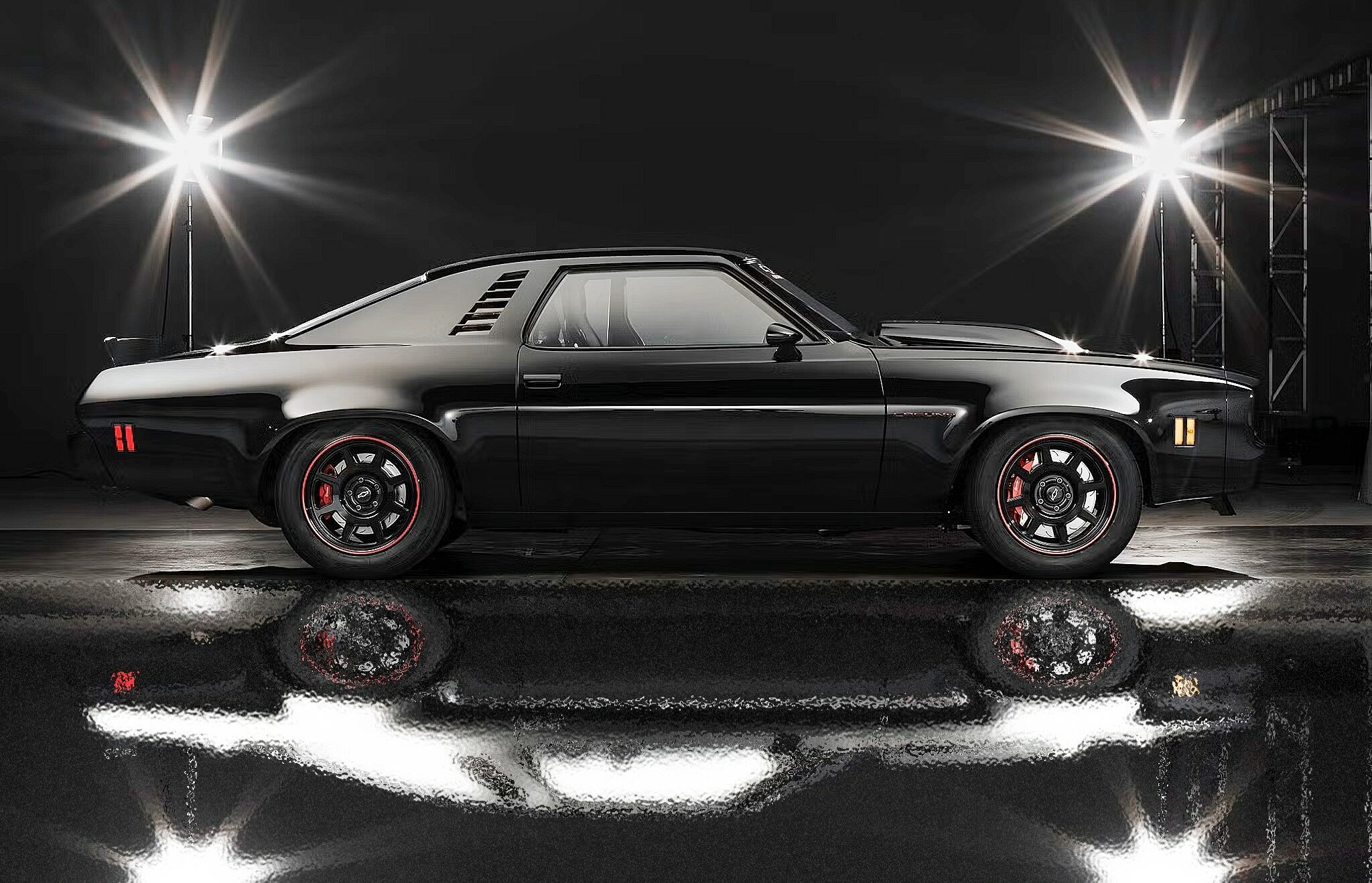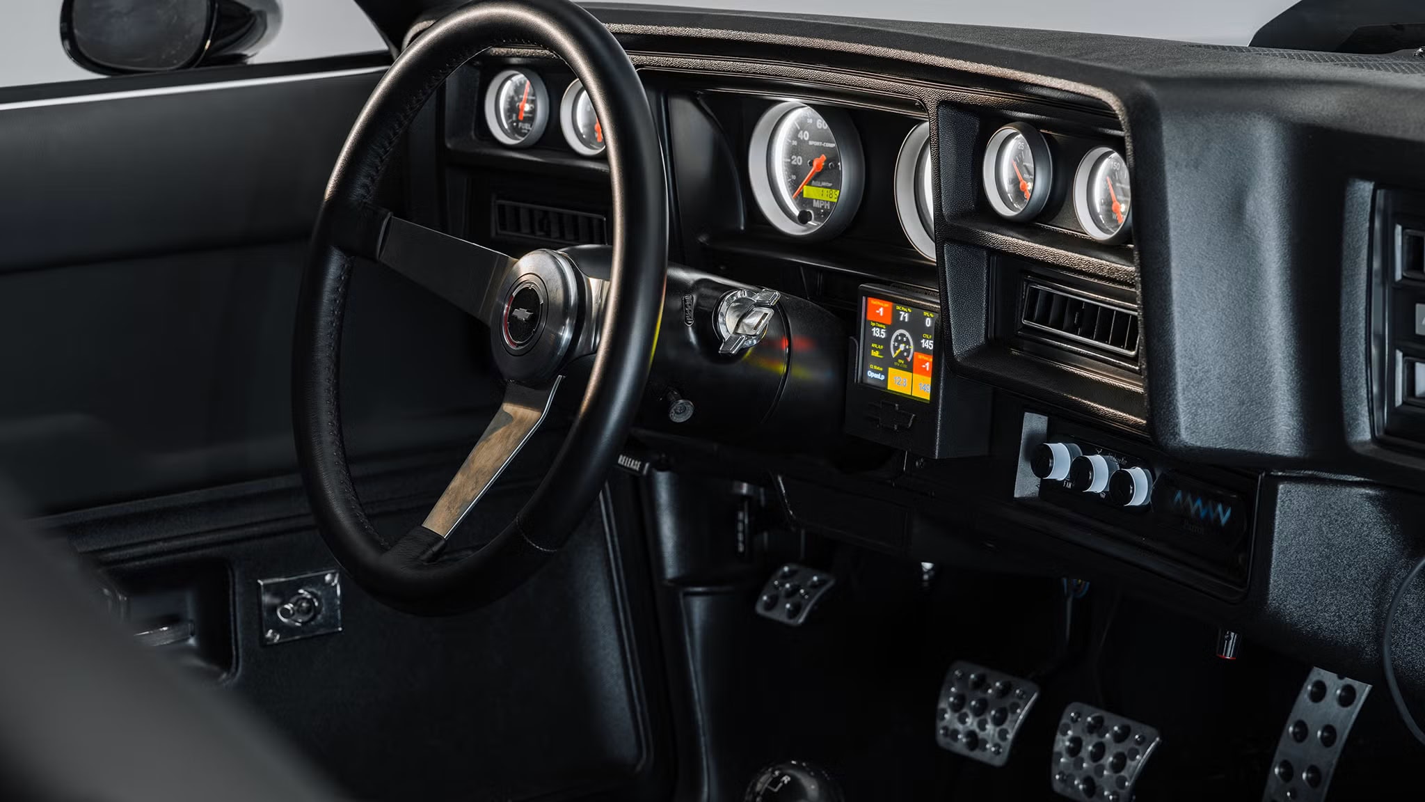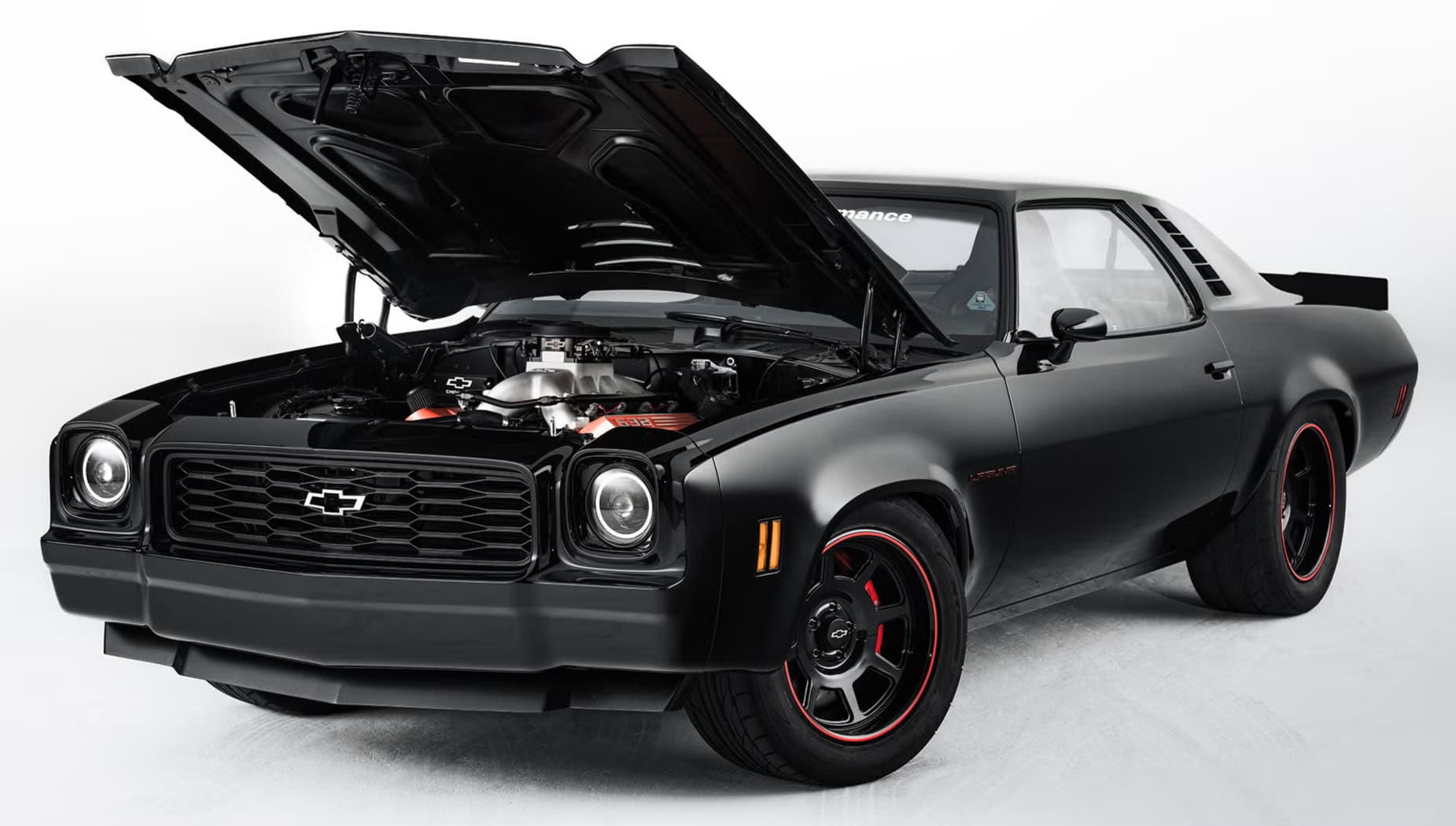 Sa ressortie mi mars 2026 à l’occasion d’un supershow, sous la supervision de Jeff Walker, offre une nouvelle occasion d’examiner une voiture regorgeant de caractéristiques uniques… Au premier abord, la voiture paraissait en excellent état, mais, provenant de l’Ohio, région au climat salé, la carrosserie présentait quelques signes de corrosion. L’équipe de restauration Chevrolet s’est néanmoins attelée à la tâche, entre la restauration de la carrosserie et quelques améliorations personnalisées. Ce n’était pas un modèle Laguna d’origine, aussi la face avant avait-elle été équipée d’une calandre adaptée. Les bas de caisse avaient également été redessinés, tout comme les vitres de custode arrière. Comparez à un modèle de série et vous constaterez les différences. Elles sont subtiles, mais très efficaces. L’équipe avait aussi conçu un aileron arrière inspiré de la compétition avant d’appliquer une peinture noire métallisée sur la carrosserie. Ce look agressif et déterminé était sublimé par des jantes American Racing de 18po peintes en noir et rehaussées d’une bande rouge.