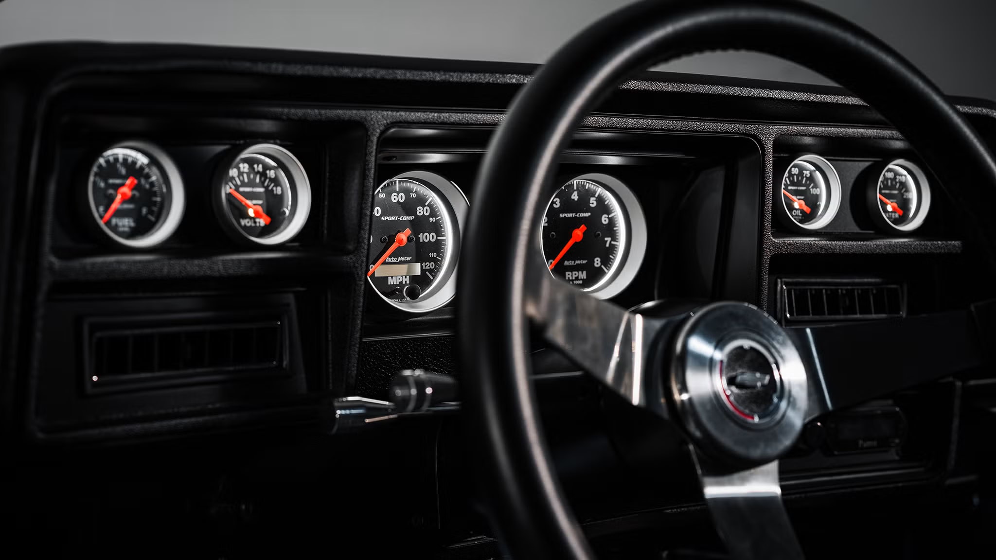 “De plus, le radiateur DeWitt sur mesure et les ventilateurs électriques SPAL, utilisés avaient été jugés suffisants pour le ZZ 632” a mentionné Jeff Walker, précisant que : “L’indicateur de température est resté quasiment inchangé. Le système d’échappement sur mesure en acier inoxydable de 7,6 cm (3 po), ainsi qu’une boîte manuelle à six rapports transmet le couple à un pont arrière renforcé à 12 boulons. Ce dernier est équipé d’essieux Moser et d’un rapport de pont de 3,42. L’équipement comprend également des freins Brembo spécialement fabriqués pour Chevrolet Performance, avec des étriers à six pistons à l’avant et à quatre pistons à l’arrière, ainsi que des éléments de suspension Detroit Speed et une direction à rapport court. Enfin, des jantes American Racing de 18 x 10po, inspirées de la compétition, sont chaussées de pneus Nitto 555, en dimensions 295/45R18 à l’avant et 305/45R18 à l’arrière”… J’ai rétorqué que c’était un ensemble harmonieux, quoique que ses éléments personnalisés qui sont effectivement datés d’un demi-siècle avaient certainement été conçus pour attirer l’attention lors des salons…