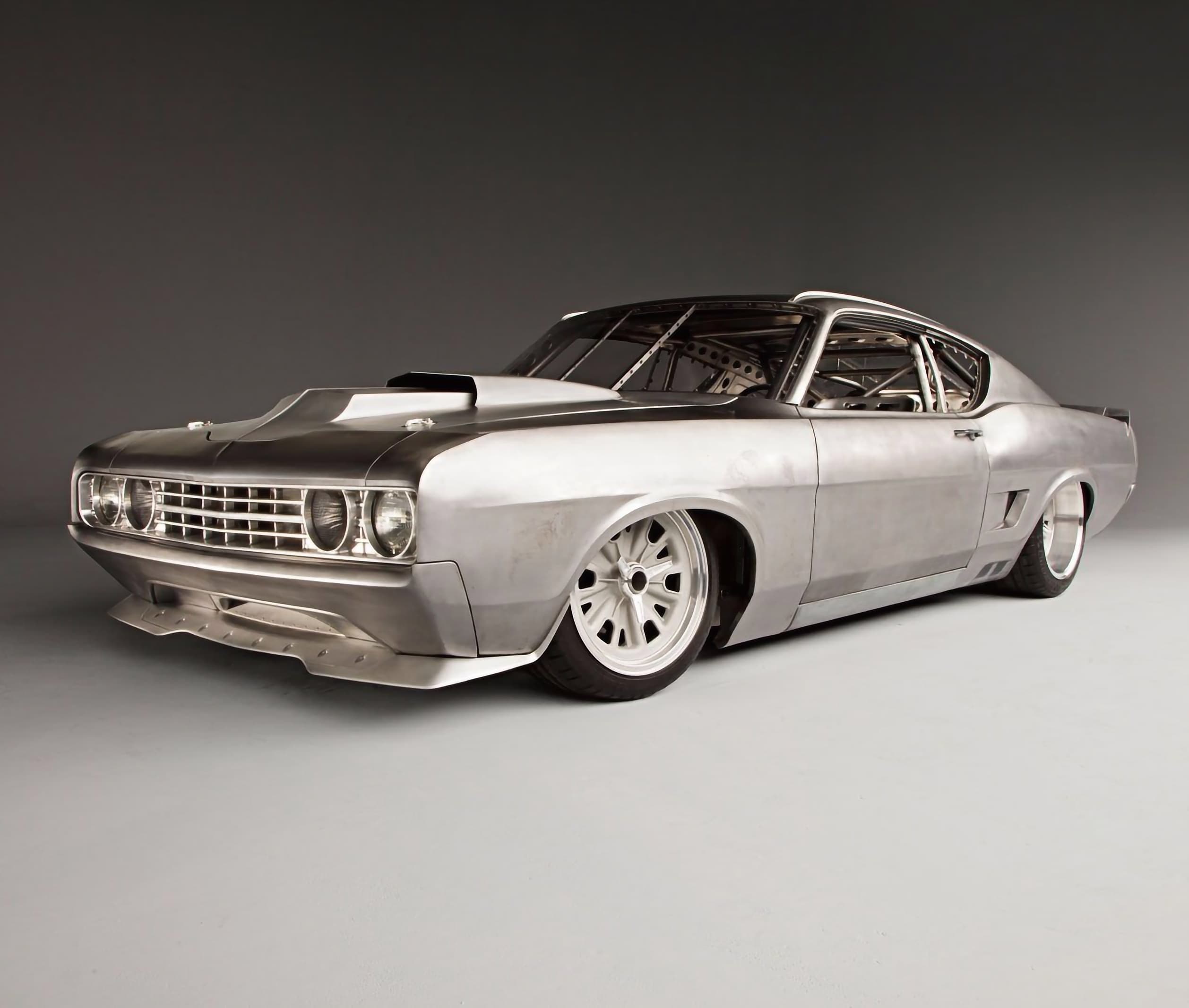 “Nous avons en fait reconstruit une Torino dans le style de la Talladega, mais nous l’avons un peu modernisée à grands frais”, m’a expliqué Troy. “Elle ressemble à une Torino pour l’œil occasionnel, mais regardez de plus près et vous verrez que la carrosserie a été repensée, ce qui signifie que les quarts arrière et les ailes avant sont plus larges que ceux d’origine et bombés par rapport aux bas de caisse”… C’est totalement vain et absurde mais c’est l’Amérique…