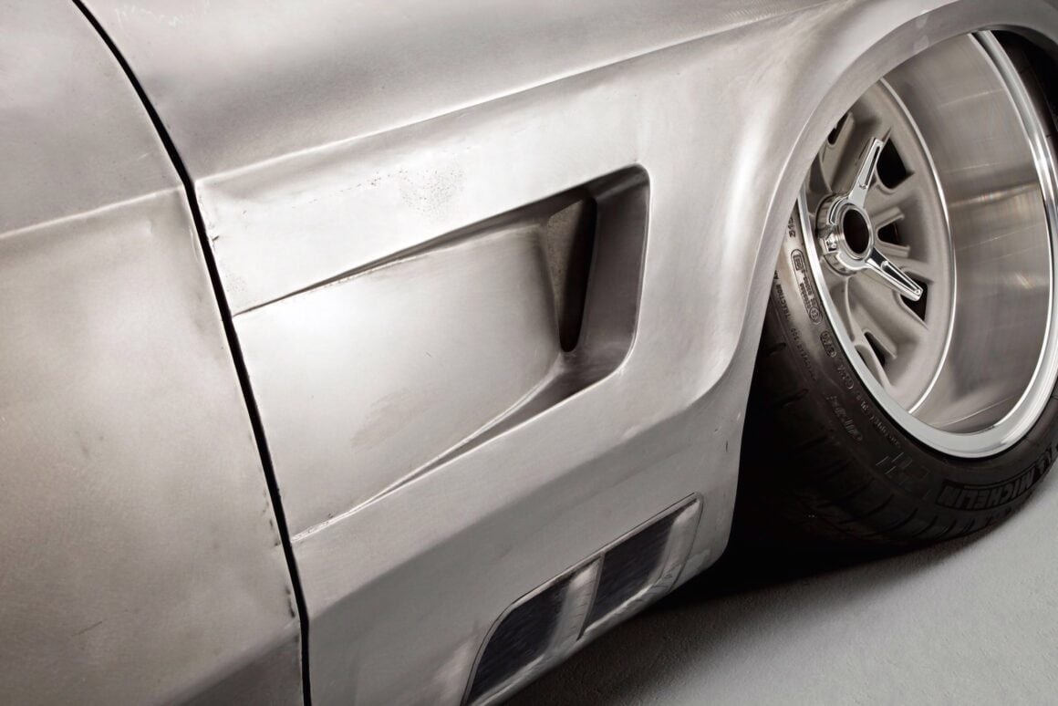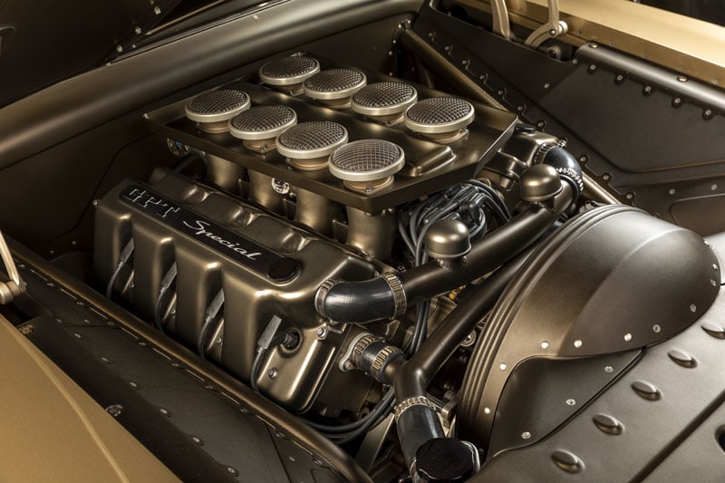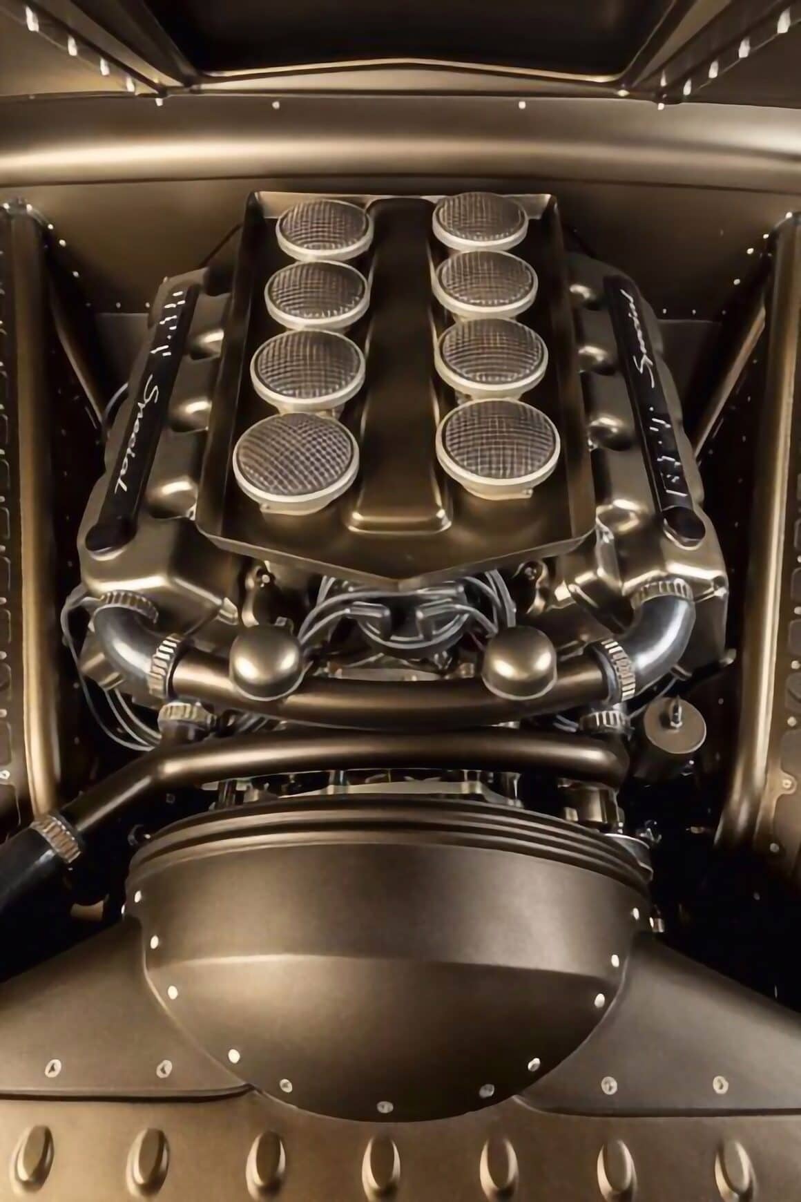 Les culasses sont des “Kaase”, ré-adaptées par Bob Sweeney de chez FX Engines pour produire environ 700 chevaux. Le châssis Art Morrison a été fortement modifié avec une suspension avant de Corvette C5 et d’un pont Detroit Speed à quatre bras à l’arrière avec un Watts et un essieu Mark Williams de 9 pouces. Rad Rides et Morrison ont travaillé ensemble sur plusieurs châssis de ce type, Rad Rides le concevant en CAO et Morrison pliant les rails…