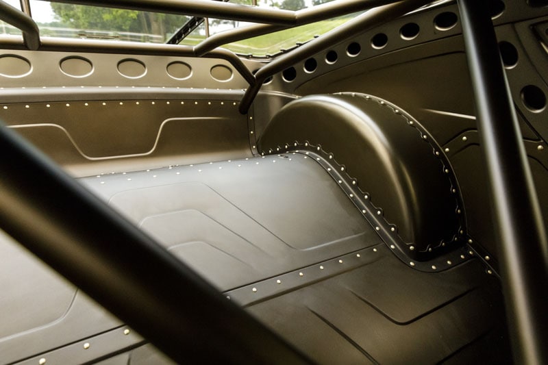 Troy, qui en vit confortablement, ne fait donc rien à moitié. Il a voulu montrer cette voiture au Grand National Roadster Show sans peinture, et le public à répondu, il y avait une foule énorme autour d’elle pendant tout le show. qui, sans doute, s’imprégnait de tous les détails. Ce concept est né dans l’esprit de George Poteet et a été transmis à Troy alors qu’ils se promenaient tous les deux dans le spectacle du fameux Columbus Goodguys.