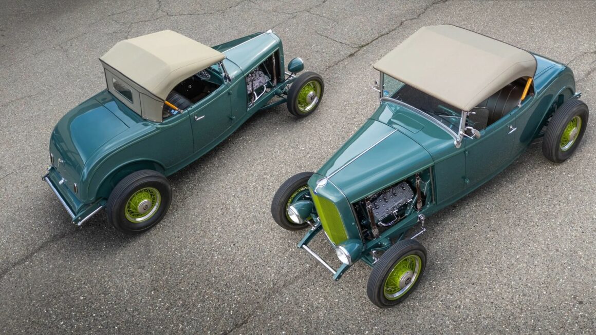 Ils sont montés sur une admission Offenhauser. Une pompe à essence électrique auxiliaire permet de démarrer le véhicule. Une boîte de vitesses manuelle à trois rapports a été utilisée pour la construction. Des notes et des factures de Vern Tardel sont incluses, ainsi que d’autres documents. Un exemplaire signé du livre de l’atelier de Mike Bishop et Vern Tardel est également inclus. La voiture est immatriculée comme une Ford de 1932 avec le numéro VIN 1875162.