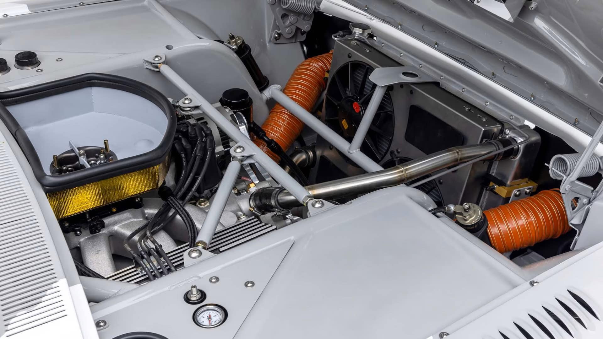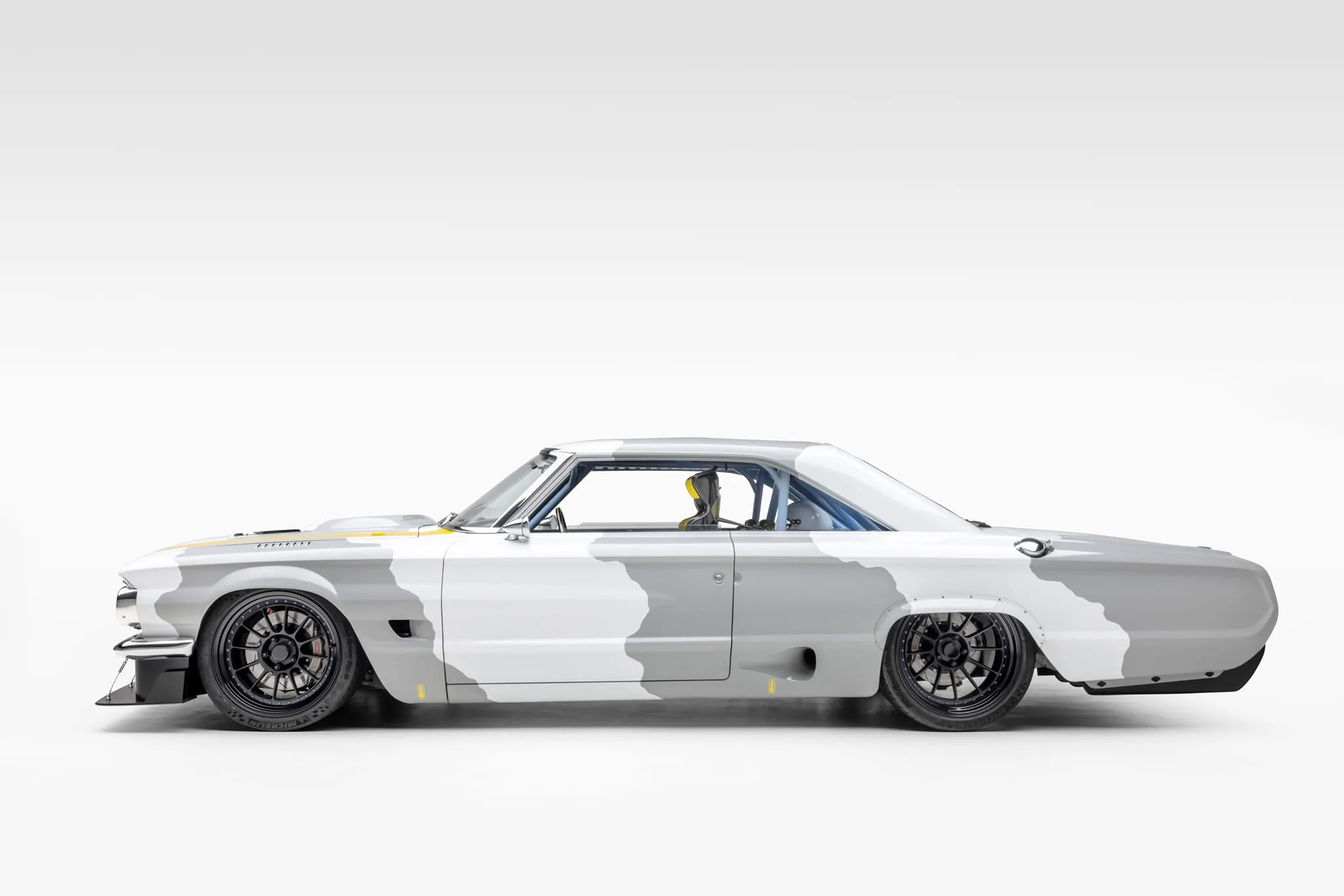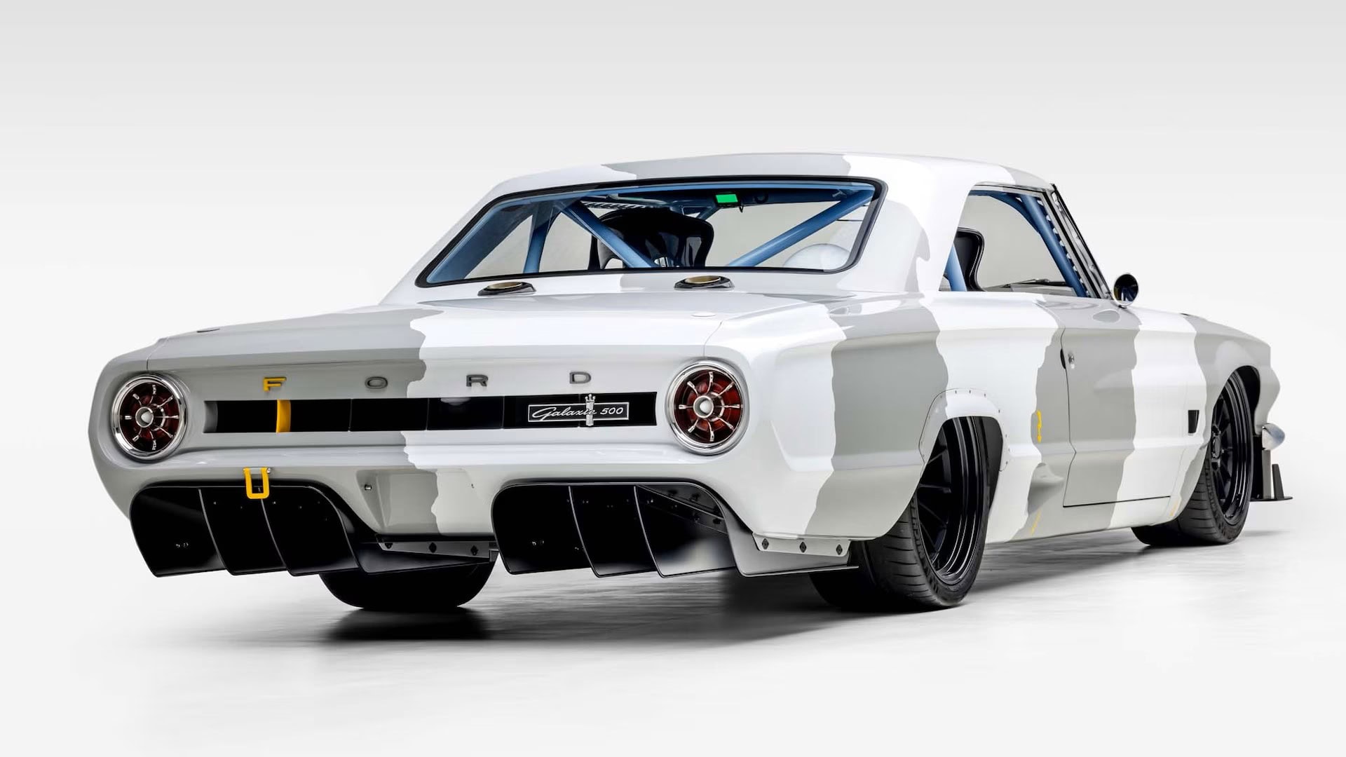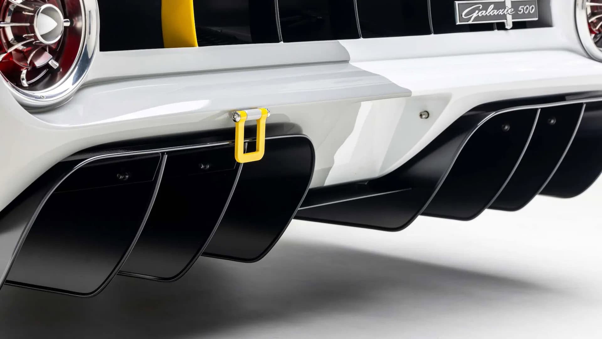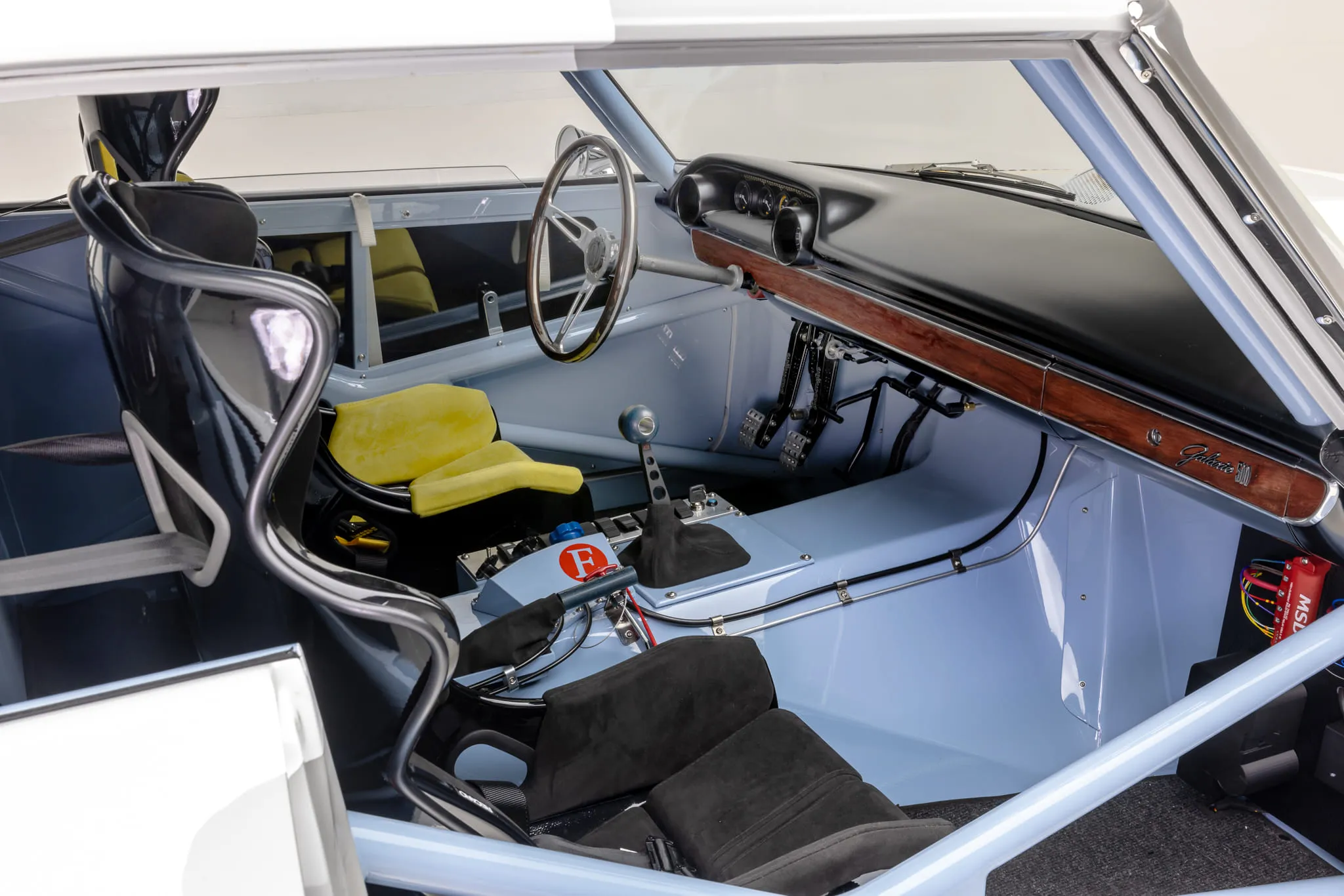 Comme me l’a expliqué Chris Ashton PDG de Ruffian : “Notre Galaxie 500 de 1964 représente la voiture de course la plus proche de la route que nous sommes capables de construire” ! OK, ok ! Elle est construite sur un châssis de course entièrement tubulaire conçu par Ron Sutton avec un “ventre” plat et un diffuseur pleine grandeur. La bête est propulsée par un bloc alu Shelby 526ci de 700cv soutenu par une transmission manuelle six vitesses Tremec T56 construite par GForce avec “anneau de chien” de la première à la quatrième vitesse. Le concept d’être subtil a été mis de coté…