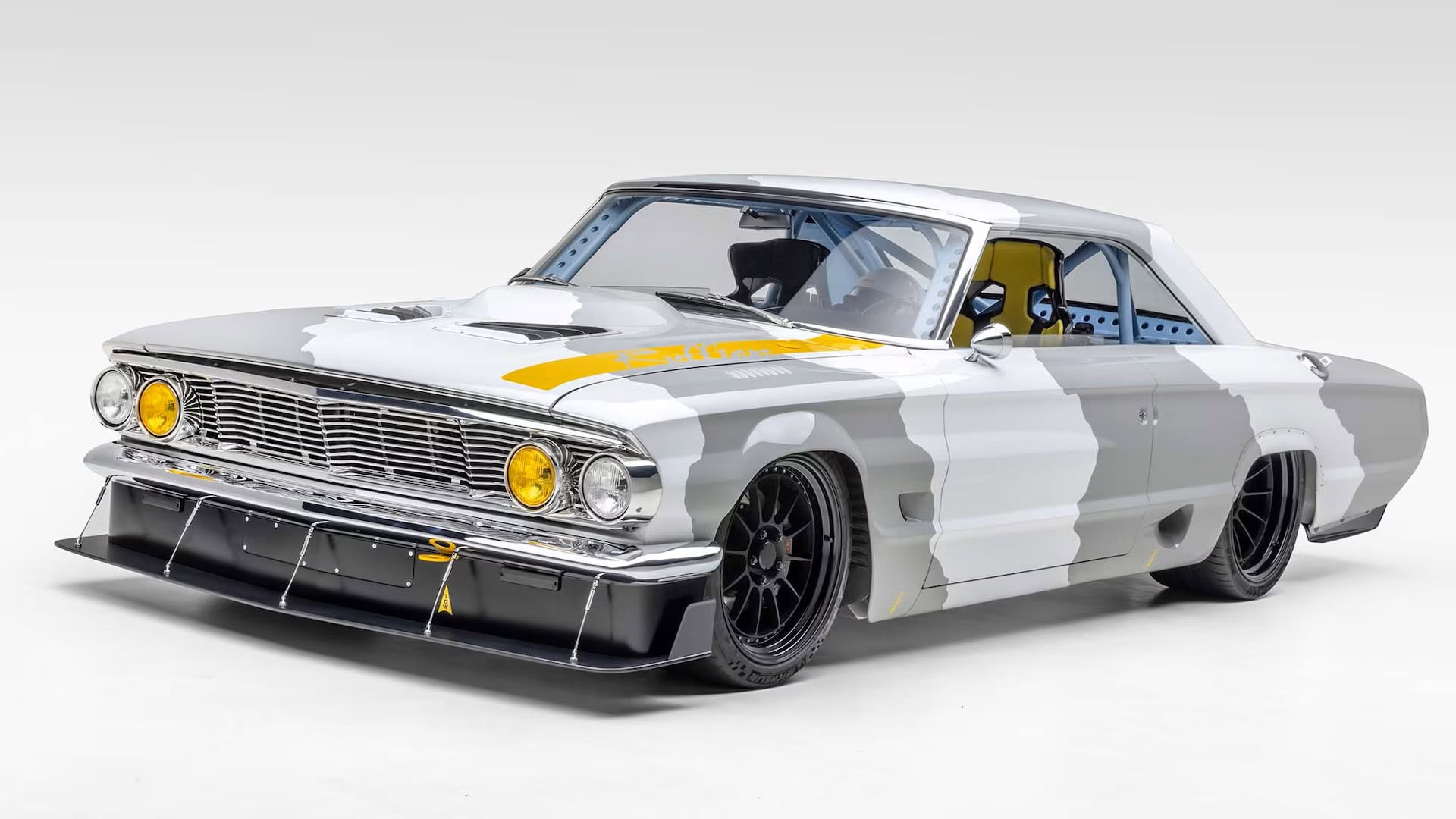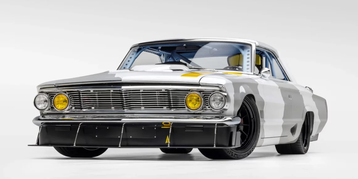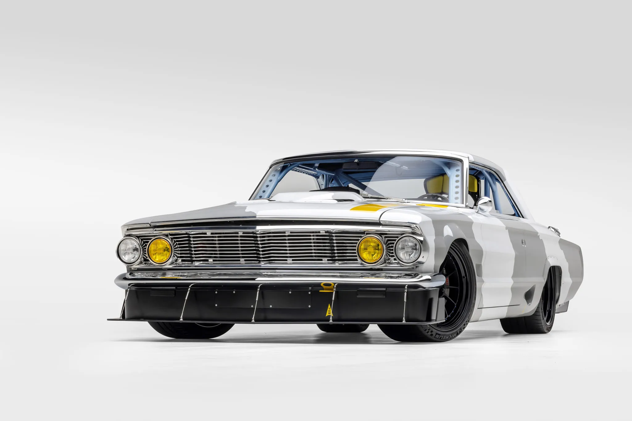 Le terme pro-touring est souvent galvaudé. Pour certains, c’est un ensemble de sièges sur-rembourrés, de bras de suspension tubulaires et de pneus plus larges à bande de roulement 300 qui sont suffisants pour étiqueter une voiture étant comme une voiture de tourisme pour prétendus professionnels des couses de dragsters de rue. Mais le vrai pro-touring, tout comme le pro-street, exige plus. Bien sûr, il y a encore beaucoup de marge de manœuvre entre une vraie voiture de tourisme professionnel et quelque chose d’aussi incroyablement décroché que cette Ford Galaxie 500 de 1964.