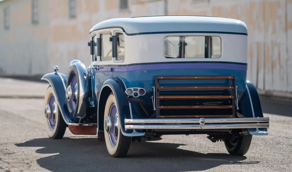 Pour la Ruxton, il a commencé avec un ensemble d’estampages de carrosseries de berlines produites par Hupp. Cela a été modifié en canalisant les planchers, ce qui a permis à ses carrosseries d’embrasser le châssis et non plus d’y poser la carrosserie. La hauteur de ces voitures a ainsi été réduite à un point tel que les marchepieds n’étaient plus nécessaires. La carrosserie de la Ruxton était d’environ dix pouces plus basse qu’une berline conventionnelle. Une poignée de Ruxton’s ont été peintes dans un schéma multicolore saisissant créé par l’artiste Joseph Urban, en fait, des bandes de couleurs de l’ensemble du spectre. Pour le prototype, c’est-à-dire la berline Hupp modifiée, celle-ci a été montée sur un châssis “en échelle” conventionnel équipé d’un moteur Studebaker six cylindres auquel une boîte de vitesses Warner à trois vitesses était accouplée. Il s’agissait d’une solution temporaire servant principalement à prouver que le concept de traction avant était jouable. Muller a également travaillé “dur” pour développer une boîte de vitesses sur mesure destinée à la version finale de la transmission. Le prototype “frappant et discret” fut prêt en 1928 et a reçu un succès universel.