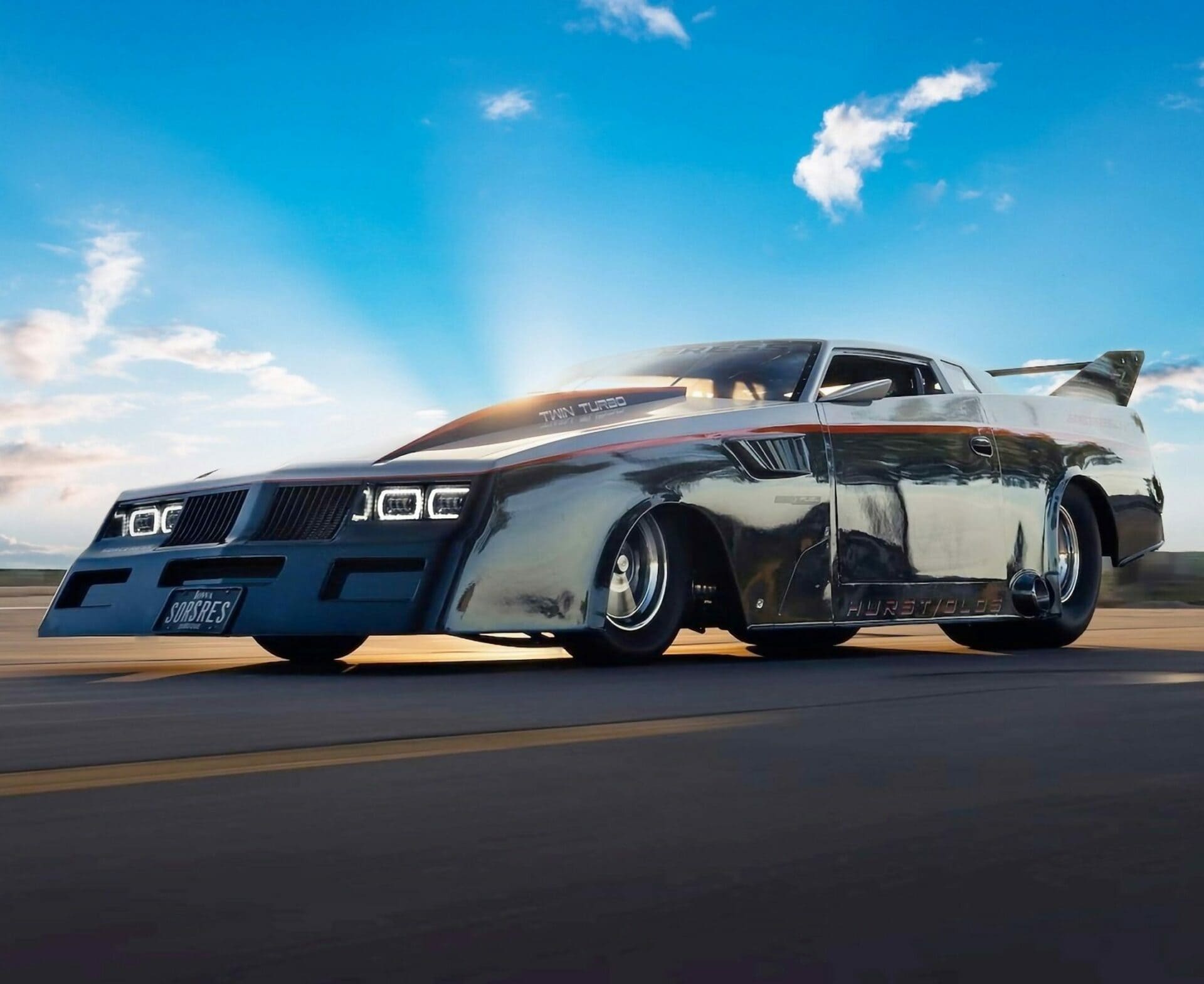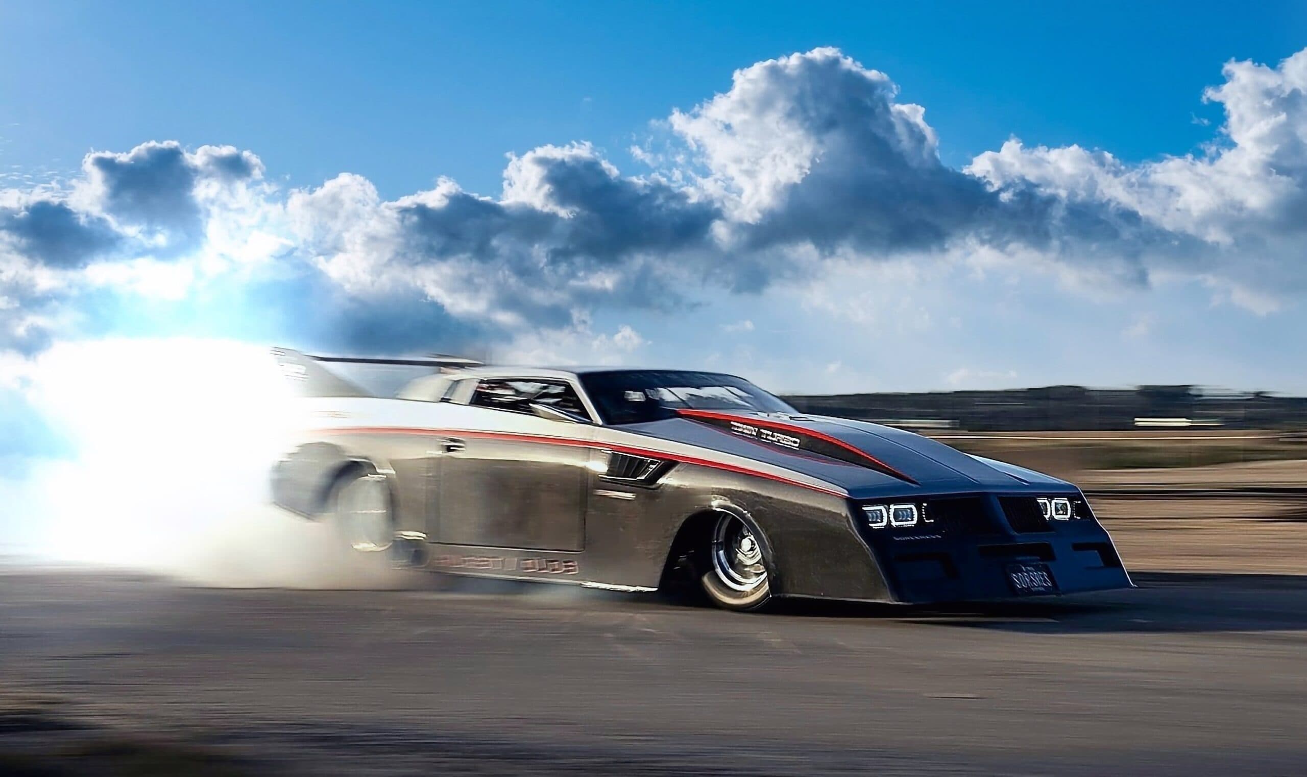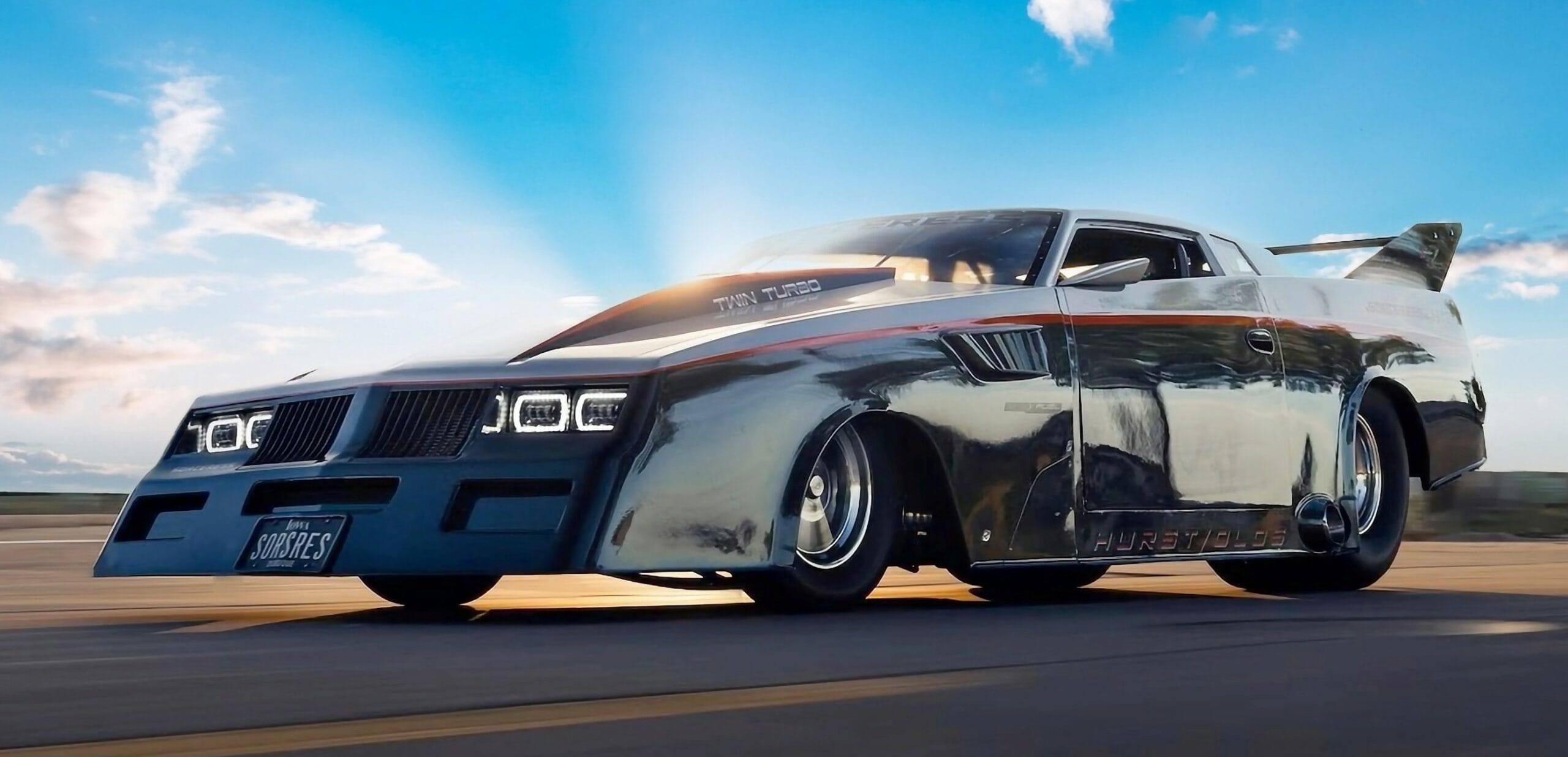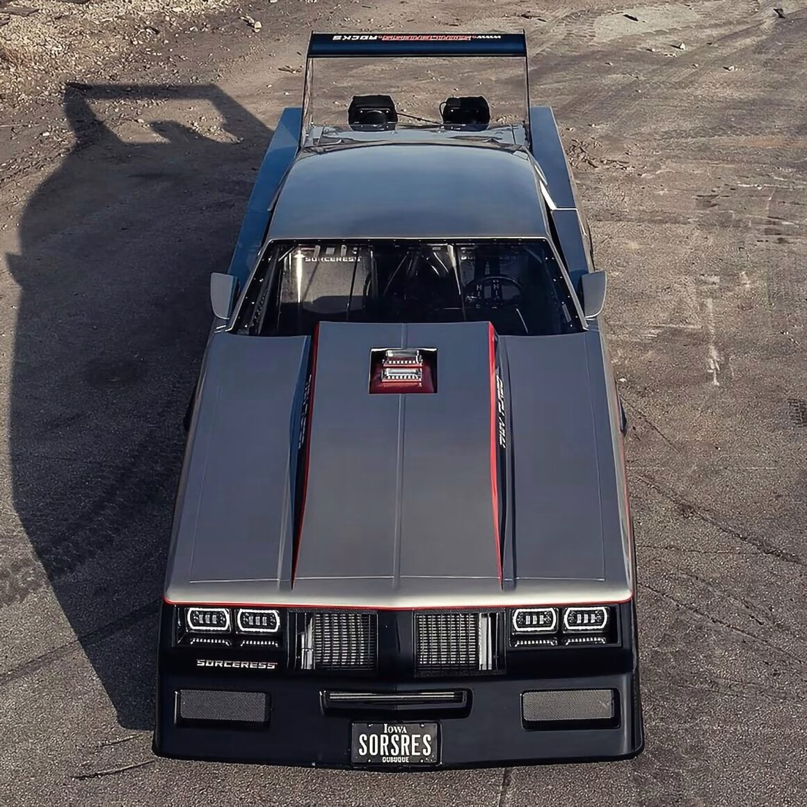 Et, de plus, il a des projets plus grands et beaucoup plus ambitieux devant lui. Rod Tschiggfrie, qui réside à Dubuque, dans l’Iowa exploite plusieurs entreprises prospères dont une entreprise d’excavation. Il possède cette Oldsmobile Cutlass 1984 depuis son adolescence, et il a supervisé chaque étape du processus qui l’a transformée en un monstre de 5.000 chevaux qu’il est aujourd’hui. Il est également inutile de remettre en cause la réalité de son immatriculation 100% libre et légale sans la moindre restriction, si ce n’est de respecter les lois dont la vitesse maximale… Faut-il que des verbalisateurs puissent constater l’excès de vitesse…