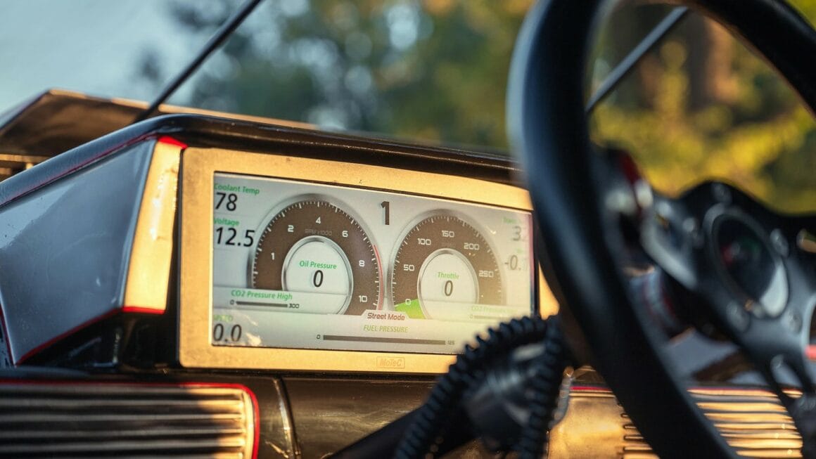“Nous abaissons la limite de régime pour que la voiture ne se pende pas et nous programmons les ventilateurs pour qu’ils se mettent en marche plus tôt lorsqu’elle est dans les rues. La chose la plus laborieuse est de remplacer l’échappement latéral par les cornes de bœuf. Notre plus gros problème en ce moment est le système de recharge que nous devons rendre plus robuste. J’ai une pompe à carburant électrique, des ventilateurs de refroidissement, des lumières et beaucoup d’autres choses qui créent une charge énorme. J’utilise un énorme alternateur et nous avons des pièces de rechange, mais je n’utilise pas les grosses batteries lourdes et à décharge profonde. Qu’est-ce que je suis censé faire, en porter six ? Et dès que vous secouez les pneus, aucun des appareils électroniques n’est content”…