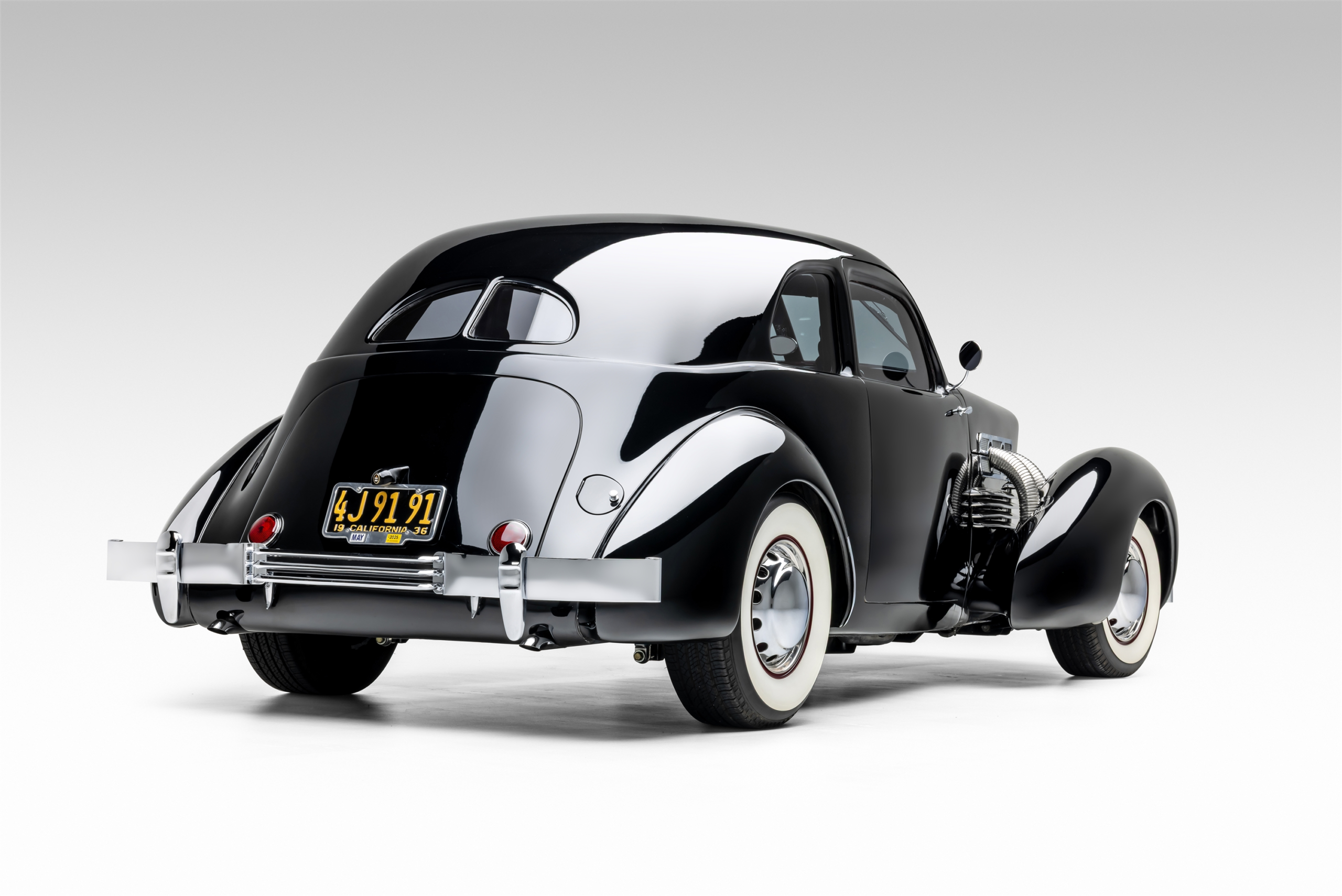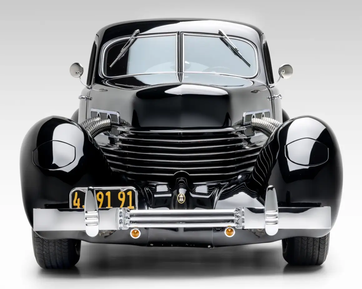 La Cord 810 avait été introduite sur le marché des automobiles de luxe à la fin de 1935 pour l’année modèle 1936 et est revenue pour 1937 sous le nom de 812 avant que “Auburn Automobile Company” ne cesse la fabrication de la marque Cord car ne pouvant survivre à la “Grande Crise” qui avait débuté fin des années ’20. Le style Cord dessiné par Gordon Buehrig comprenait un profil avant en forme de “nez de cercueil” (Coffin-noose).
