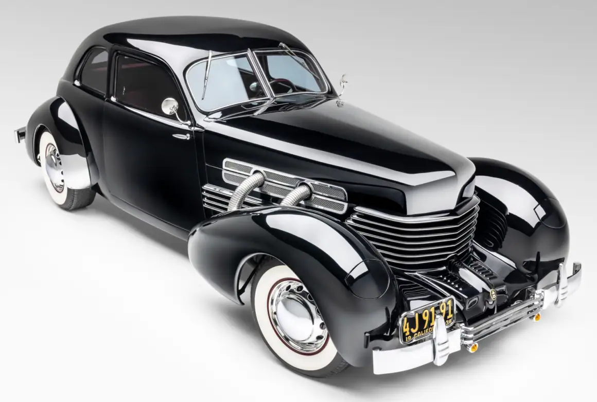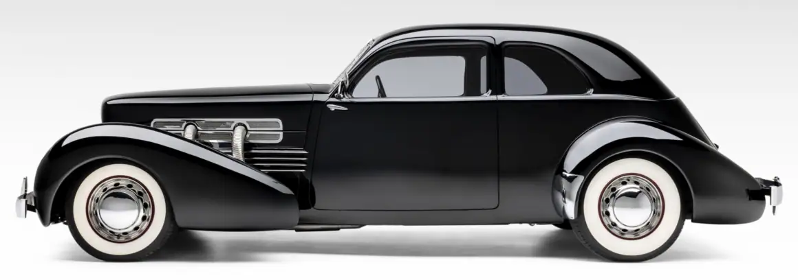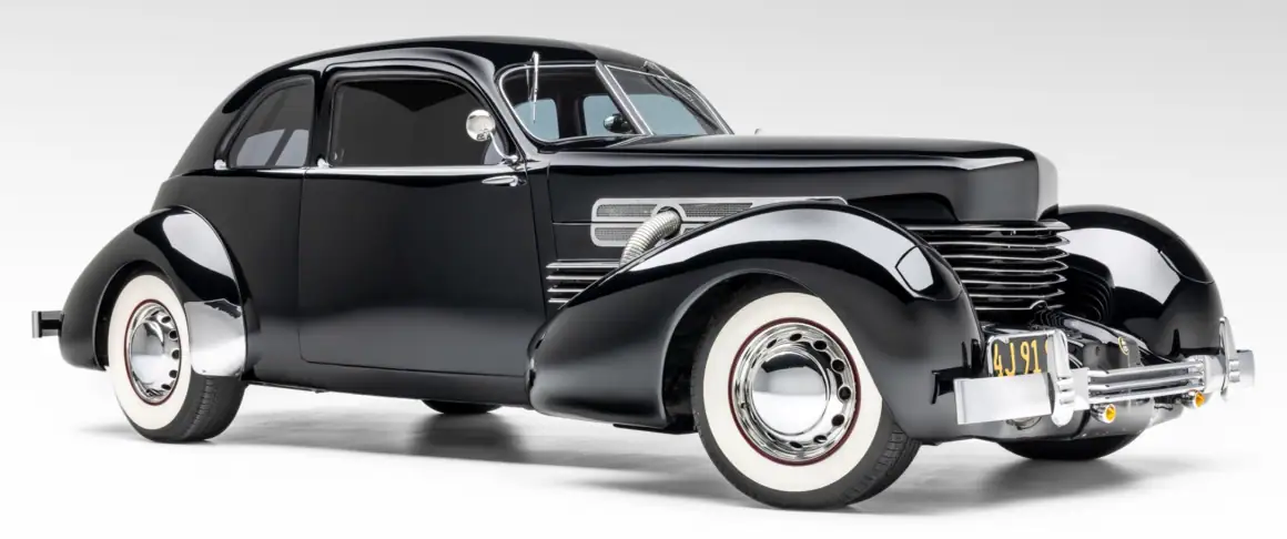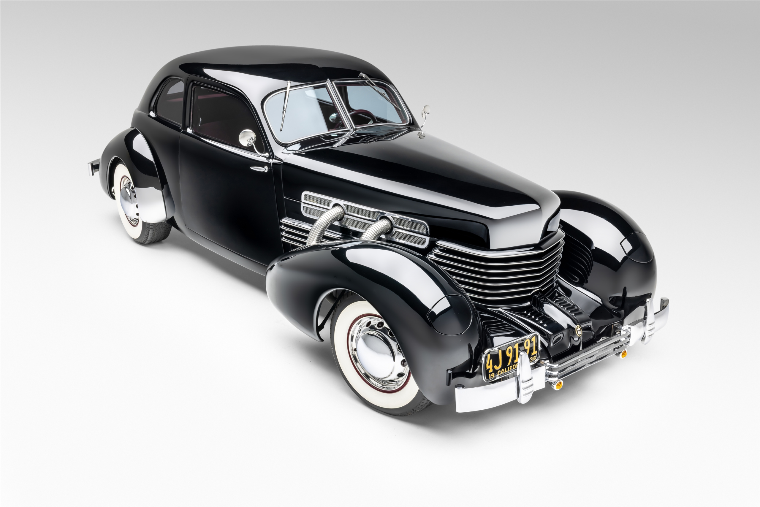 La caractéristique de Cors était la calandre enveloppante à persiennes, ainsi que des échappements sortant du capot-moteur (en ce cas ils sont maintenant factices), des phares escamotables manœuvrables par des manivelles montées sur le tableau de bord, des charnières de porte dissimulées et une trappe de remplissage de carburant verrouillable. Six styles de carrosserie étaient à l’époque des années’30, proposés pendant la production de la Cord.