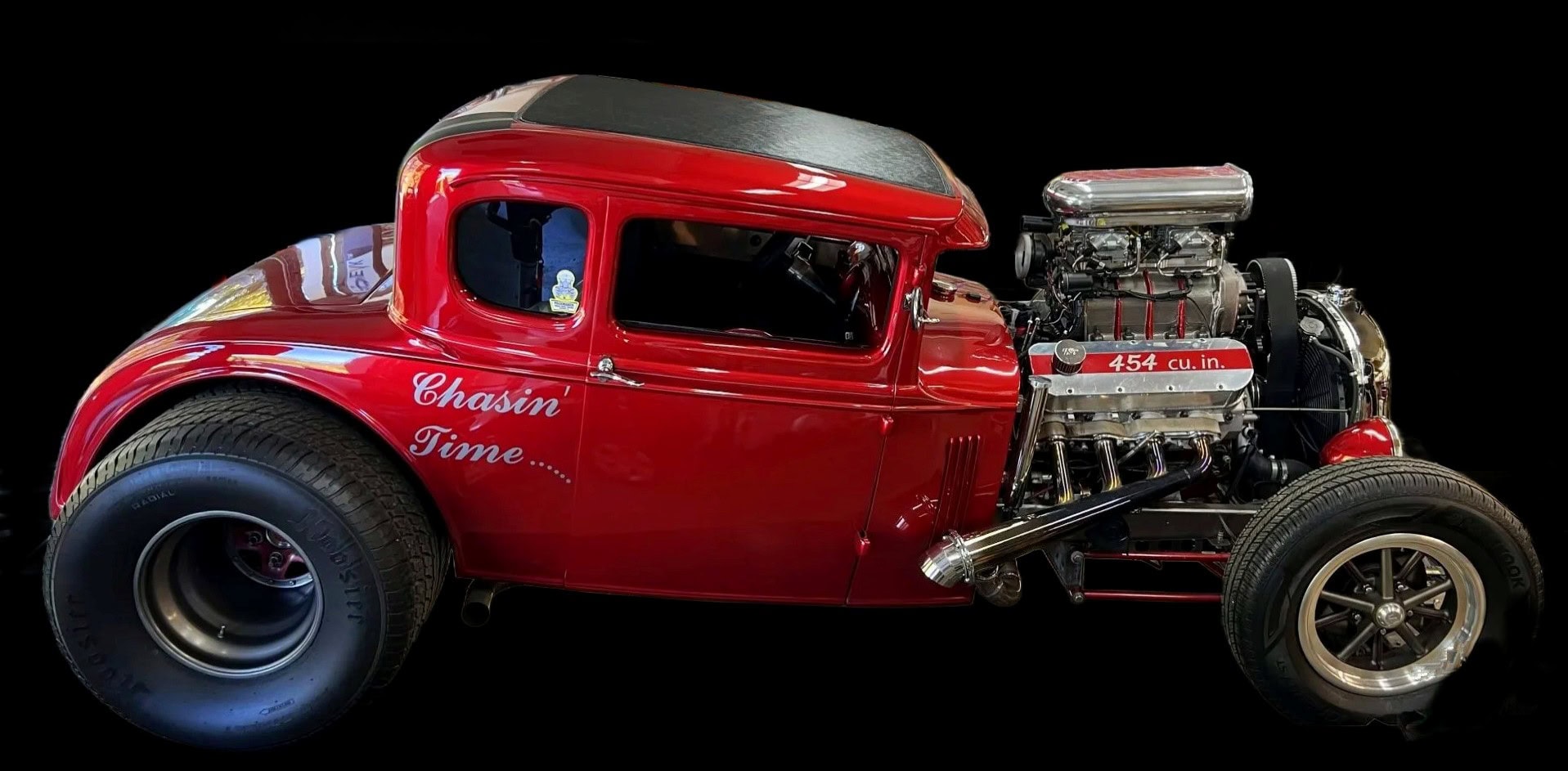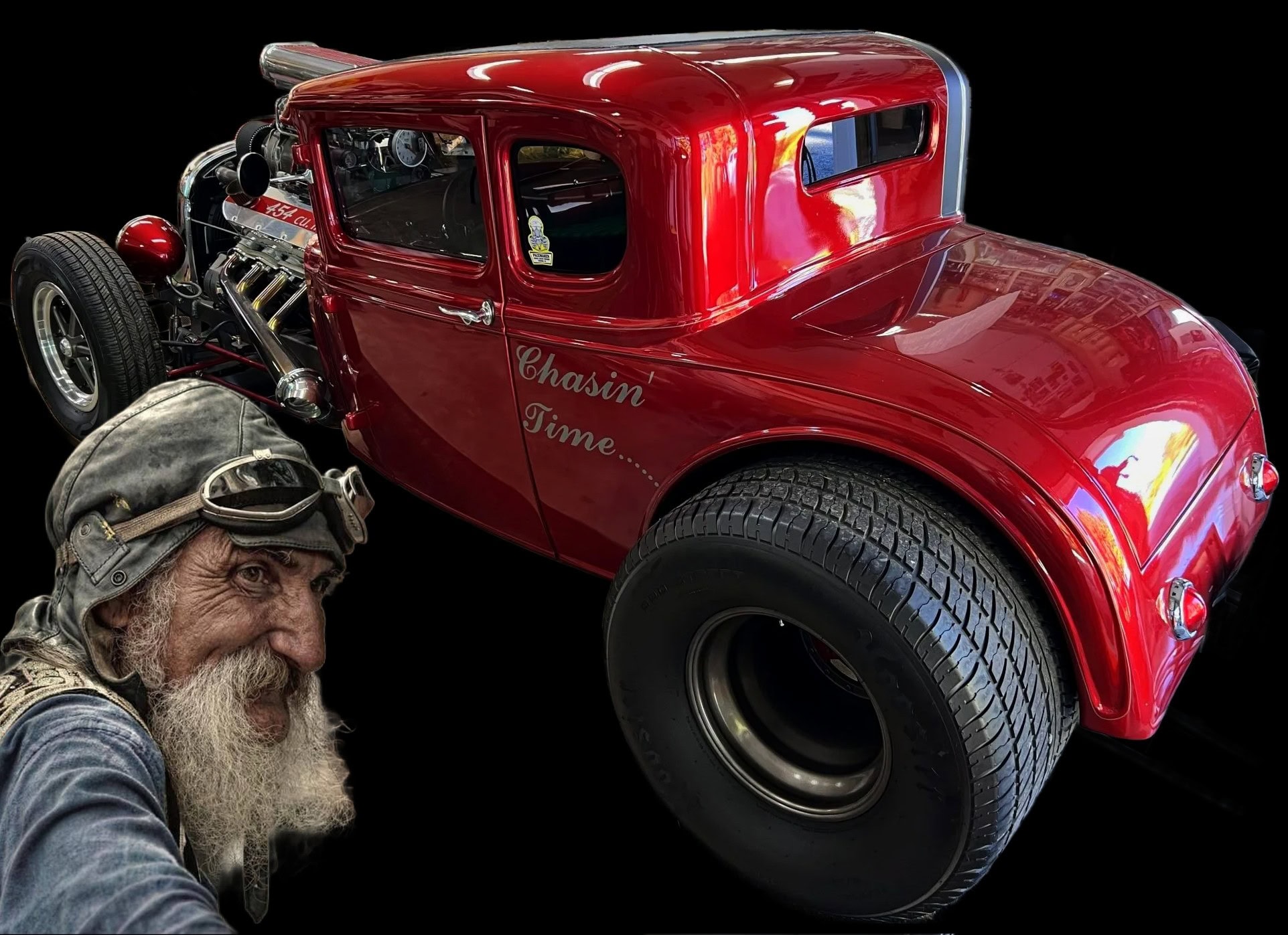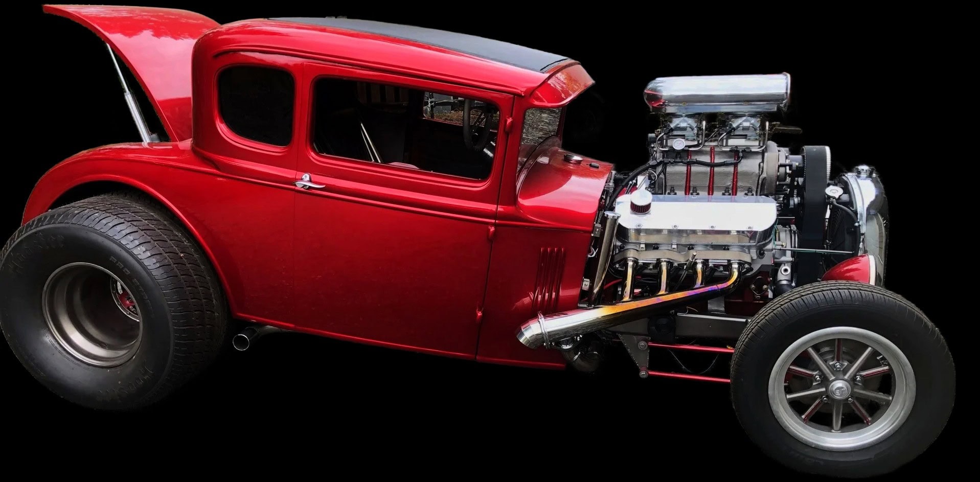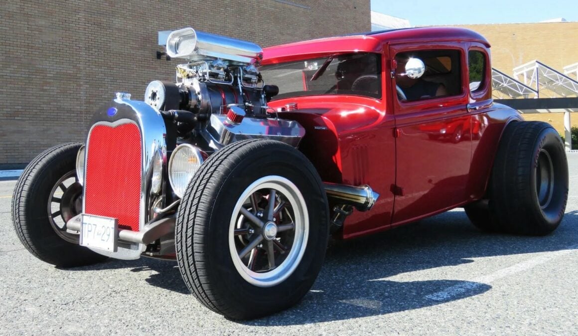 A titre d’exemple, voici la réalisation d’une famille qui remplace les stupidités TV et autres… Ce Hot Rod Coupé Ford Model A à cinq fenêtres a fait l’objet d’une construction “en famille” qui a duré 5 années… Le travail a été réalisé au départ d’une carrosserie Ford A découpée avec la création d’un châssis en acier. La puissance est maintenant assurée par un V8 Big block 454ci surmonté d’un compresseur 6-71 et de deux carburateurs quatre corps.