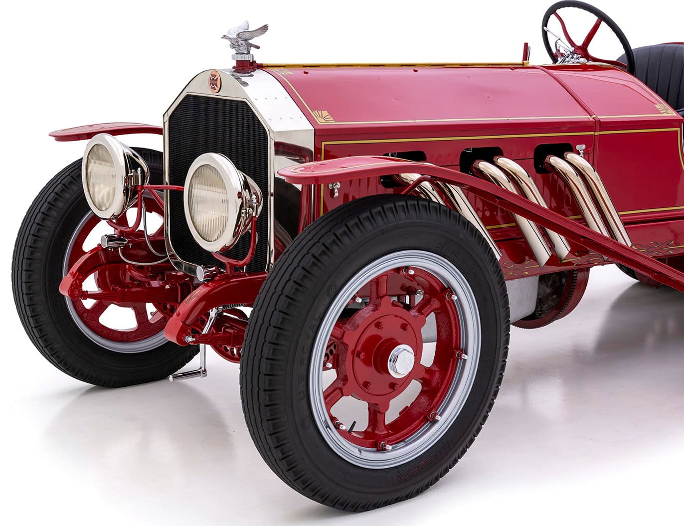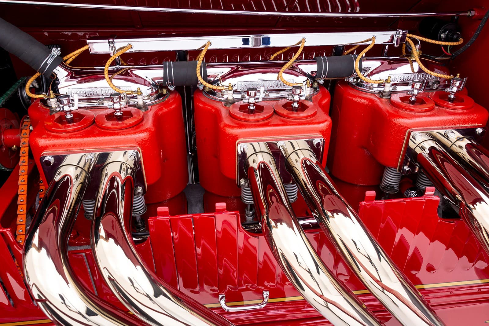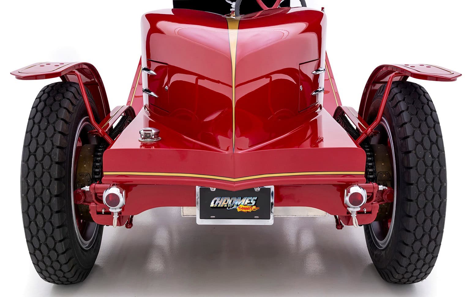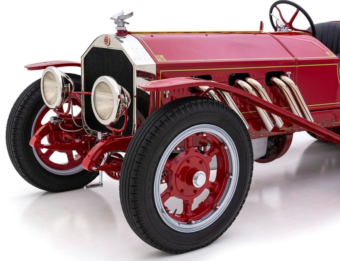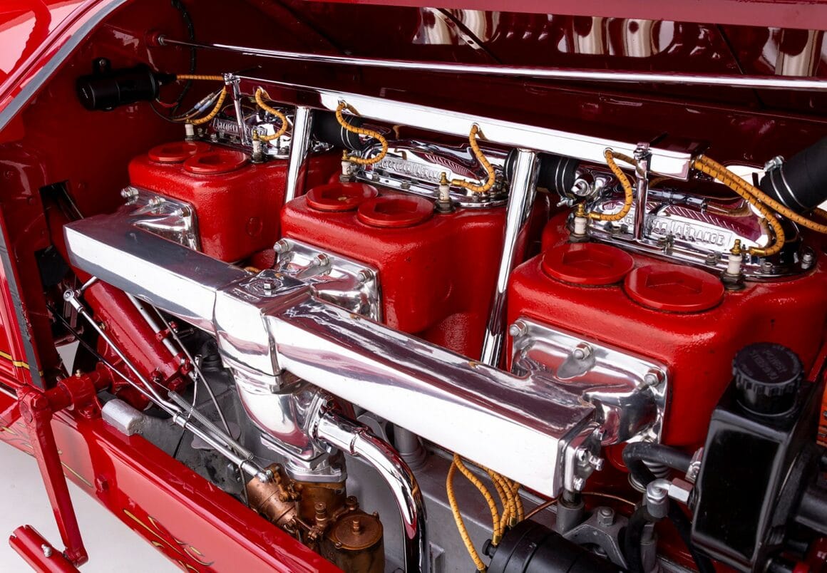 La bête peut atteindre 60 mph à un peu plus de 1.000 tr/min, tirant comme un train de marchandises tout au long du trajet. Les échappements brillamment polis sortant du capot et tournés vers le bas font connaître son arrivée bien avant que la peinture rouge brillante, les filets dorés et les pin-up à l’aérographe n’attirent l’attention ! Superbement réalisé et doté d’une présence et d’une qualité indéniables, ce puissant American Hot Rod LaFrance Speedster de 1919 est une bête exaltante, qui offrira certainement une expérience de conduite sans pareille… Donald m’a proposé un deal détaxé spécial ChromesFlammes pour 254.000$ et annule les taxes… J’hésite… Le cadeau présidentiel est Trumpesque, trop… Je vais y réfléchir…