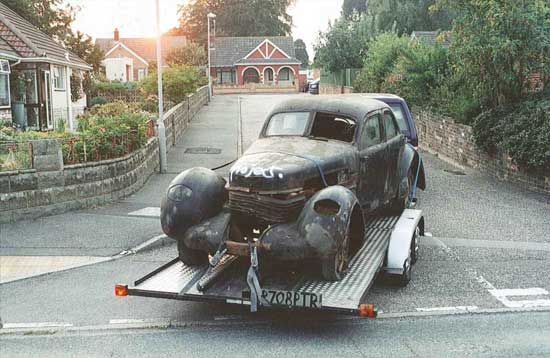 Il y a rencontré d’autres propriétaires et constructeurs et, parlant entre-eux de ses créations, dont son Cord Westchester Tetanus 1937 est le dernier connu qu’il prévoyait de présenter dans tous les salons du genre de par le monde. Toutefois, le monde est en déglinque et le pourrissement est général, de sorte qu’Andy Saunders s’est recroquevillé sur ses créations. Cet engin a commencé sa vie en tant que Cord 1937 Westchester type 812 à 4 portes, qui a quitté son usine aux USA en tant que modèle d’exportation RHD, sa destination étant l’Angleterre ou il a été vendu neuf par R.S.M Automobiles de Berkeley Square, Londres W1, le premier propriétaire étant le comte de Derby. Plusieurs années plus tard, en cause d’un problème de boîte de vitesses, le véhicule a été vendu à son deuxième propriétaire, un nom assez prestigieux dans le monde des courses de stock-car…