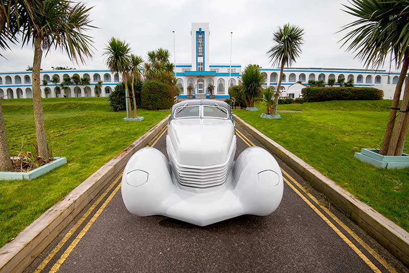 La voiture a été mise en vente mais elle a passé près de 20 ans à tenter de se vendre auprès des passionnés de voitures du pays qui, celle-ci n’étant pas Britannique et de surcroit se trouvant dans un état de pourrissement avancé, la regardaient et s’en allaient sans faire d’offre… Jusqu’à ce qu’Andy Saunders la voie et l’achète pour l’équivalent d’un kilo de viande (ceci pour faire une comparaison hasardeuse avec la seule toile que Van Gogh n’a même pas vendue mais échangée contre un kilo de barbaque pour ne pas crever de faim… La voiture a subi une une refonte et une reconstruction de 7.000 heures qui ont “Customisé” irrémédiablement le beau design art-déco en un Coupé kitch et imposant que Cord n’a jamais réalisé comme modèle de production. Toutefois, l’accueil qui fut fait à cette Cord a été incroyable aux Supernationals de Bedford au Royaume-Uni en août 2017.