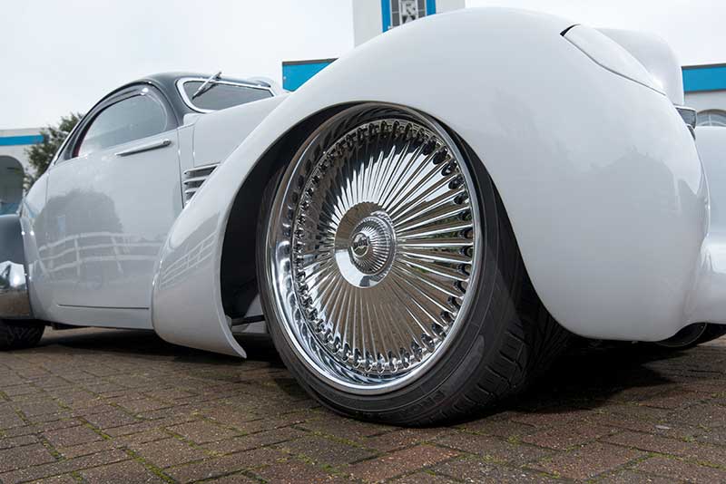 L’engin a été citée par beaucoup comme rehaussant la marque de référence au Royaume-Uni. La couverture presse fut dithyrambique, présentant la Cord de “Fantastique construction personnalisée” dans la lignée des créations les plus célèbres d’Andy Saunder dont la fumeuse MINI Custom HaHa… et l’ultra plate et psychédélique Claustro Phobia, une autre MINI Custom ayant reçu le 1er prix du record du monde Guinness de la voiture la plus basse, argumentant : “Si ces deux constructions ne vous ont pas fait penser Wowwww c’est de l’art, ma Cord “Tétanos” le fera”… Ce nom n’était assurément pas “artistique”, mais cette construction fut déclarée par la presse “Custom” alors prospère, comme étant : “Un monument de sophistication et d’élégance, d’art et de créativité sauvage”. .. La Tetanus Cord, avait donc débuté sa vie une berline Cord 1937 Westchester type812 avec une histoire très intéressante.