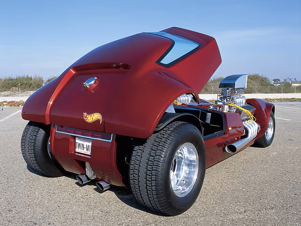 Si vous vouliez voir ce gros jouet en vrai, c’était l’une des six vraies voitures et des tonnes d’objets de collection Hot Wheels dans une exposition Hot Wheels Hall of Fame au Petersen Automotive Museum à partir d’avril 2003 jusque décembre 2004. Malheureusement, cet affichage était statique… Ensuite, la voiture a été repeinte en bleu… Voilà, c’était compliqué, je suis certain que vous n’avez pas tout compris, et de plus, je n’ai pas envie de refaire mon “papier”... La Twin Mill Blue est toujours vedette, mais comme les grands shows Kustom ne sont plus vraiment les mêmes folies qu’il y a 30 ans, elle fait de la figuration et des courses d’accélération avec un Vought Corsair F4U.