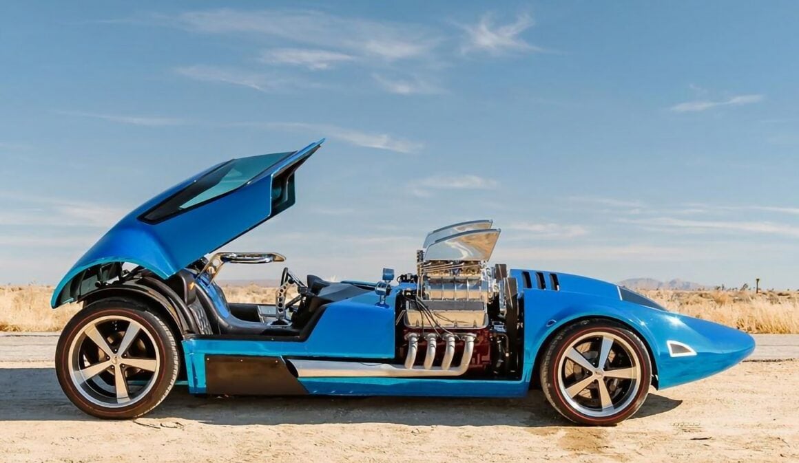 “Ils n’ont pas voulu me donner de temps”, a déclaré Lev, “parce que je n’avais pas d’arceau de sécurité et que je n’avais pas passé le contrôle technique. Mais quelqu’un a mentionné quelque chose à propos de 160 ou 170 miles à l’heure. Qui sait ?”… Ensuite, Lev a reçu un appel pour exposer la voiture au manoir Playboy à Beverly Hills lors de la finale du rallye Gum Ball Rally. Il a dit que la colline était trop raide pour le camion à refoulement, alors il a simplement conduit le Twin Mill, mais pas avant de l’avoir emmené faire un autre tour du pâté de maisons. Sur Sunset Boulevard, un gars dans une Maserati lui a donné un coup de pouce. Il a également déclaré que Hefner aimait la voiture et était prêt à l’acheter un million de dollars….