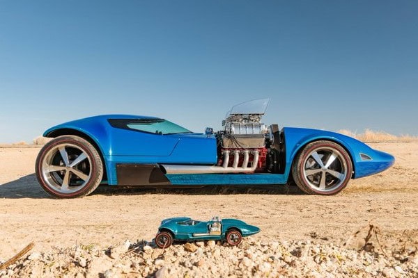 Mais c’était un non sens qui insupportait les constructeurs créatifs qui ont exigé qu’il était plus logique de d’abord les laisser créer un Hot Rod 1/1 qui, une fois exposé et publié dans des magazines (il n’y avait alors pas de sites-Web) pouvaient déclencher une pulsion frénétique d’achat de la même automobile de rêve à l’échelle 1/64ième… Ca se complique, mais ça reste compréhensible si vous faites un effort… On s’écartait ainsi de la méthode ancienne de proposer bien après la présentation salon, un jouet au 1/64ième de l’auto vue dans les shows et la presse… Il s’agissait de fabriquer des modèles réduits 1/64ième en même temps que la voiture qui allait être exposée, de telle sorte qu’à l’exposition les voitures au 1/64ième était exposée tout autour de la même 1/1…