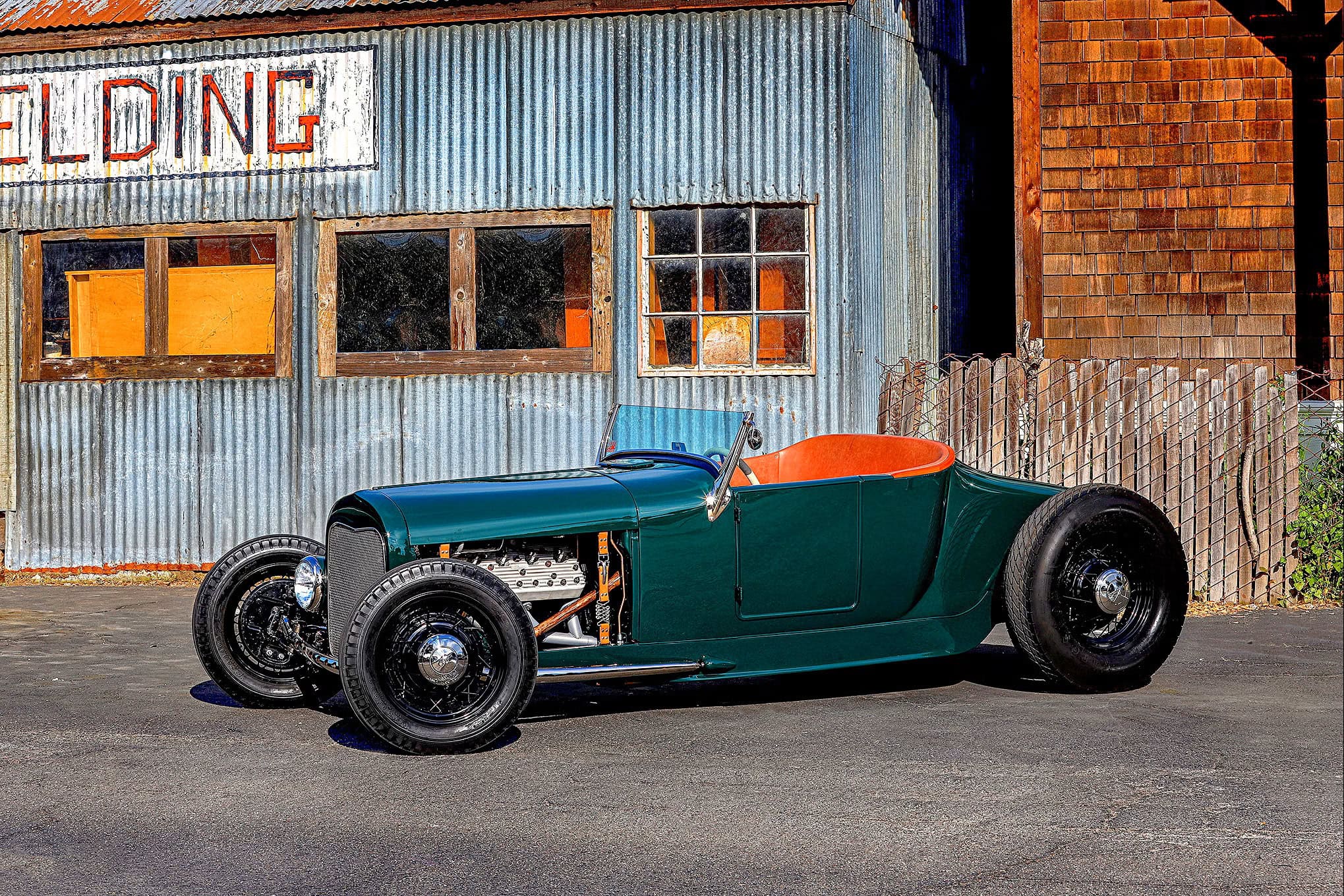 Notez que tant qu’à me piéger moi-même dans diverses voies sans issue dans lesquelles j’entends distinctement mes proches (vivants encore ou déjà morts), me crier “Fait attention”, il faut se dire qu’un jour chasse l’autre avec la nuit qui disparait mais revient sans cesse… Ouaihhhhh ! Sortir de cette introduction confine à être équilibriste… Je retombe sur les pieds en tapotant qu’en matière de Hot Rod’s, les modèles T sont les plus emblématiques, mais ce sont les B’32 qui font l’unanimité, ce n’est pas le seul gros poisson dans les eaux traditionnelles, loin de là. Pour d’autres il n’y a pas grand-chose de mieux qu’un modèle A… Tom Walsh de “NorCal” a voulu prouver qu’une carrosserie Ford T’27 montée sur un châssis Ford B’32 pouvait “effectivement faire l’affaire”.