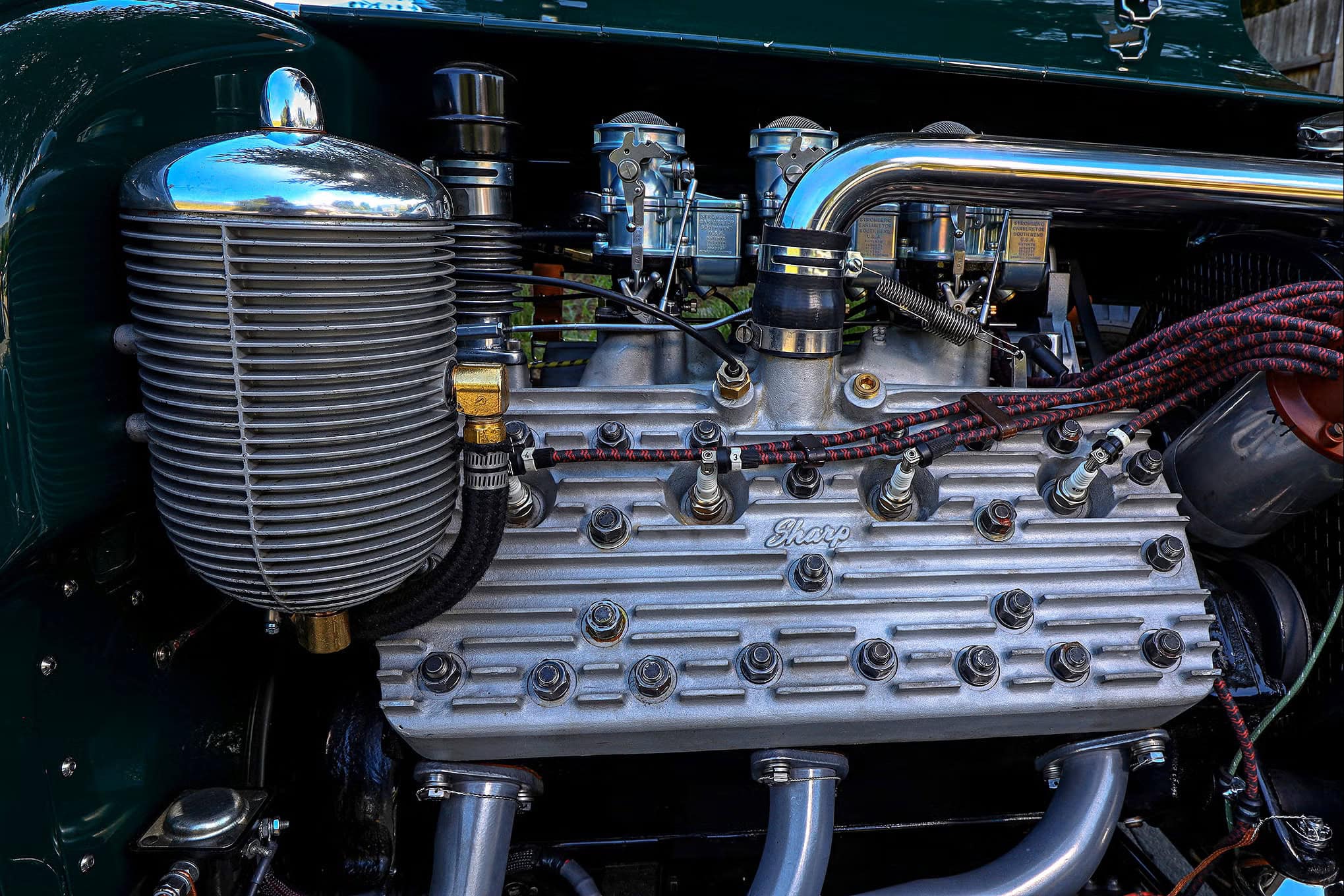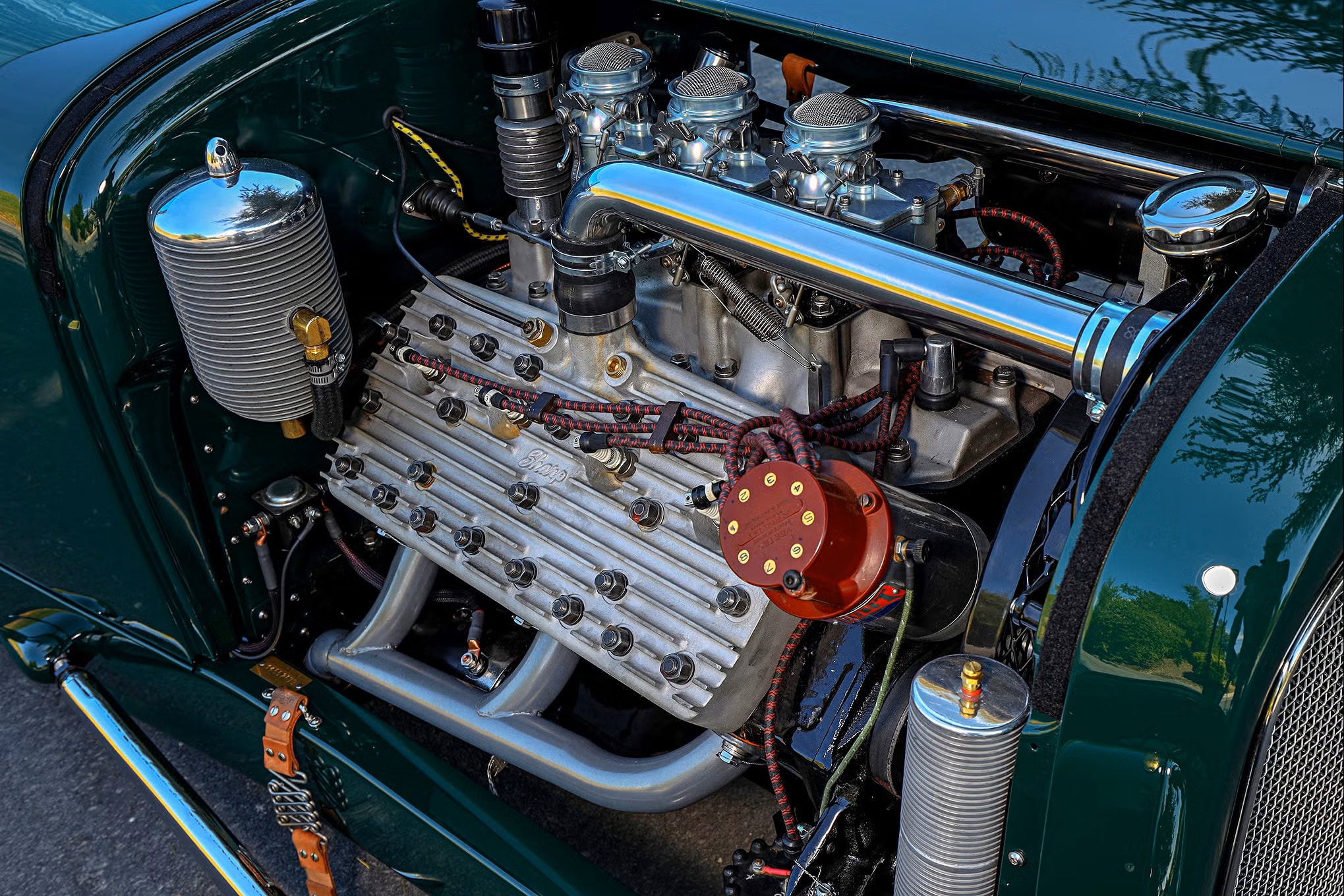 La caisse a été peinte en British Racing Green réalisée par un vieil ami dénommé Marcos Garcia, œuvrant pour un salaire de miséreux chez “Lucky 7 Customs” un garage situé à Antioche USA… Rien à voir avec l’Antioche décrit sur Wikipédia que je me dois historiquement d’évoquer : “Antioche, ou Antioche-sur-l’Oronte (en grec ancien : Ἀντιόχεια ἡ ἐπὶ Ὀρόντου / Antiókheia hē epì Oróntou ; en latin : Antiochia ad Orontem) afin de la distinguer des autres Antioche plus récentes, est une ville historique originellement fondée sur la rive gauche de l’Oronte dans la Syrie historique et qu’occupe la ville moderne d’Antakya, en Turquie. C’était l’une des villes d’arrivée de la route de la soie. Fondée vers 300 av. J.-C. par Séleucos Ier Nicator après sa victoire d’Ipsos sur Antigone le Borgne…