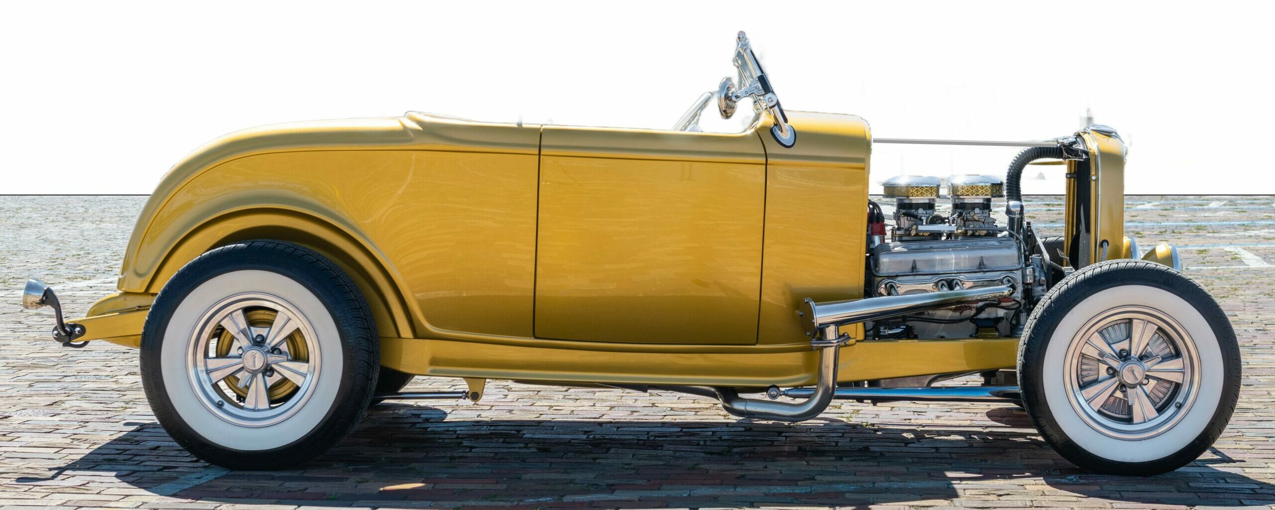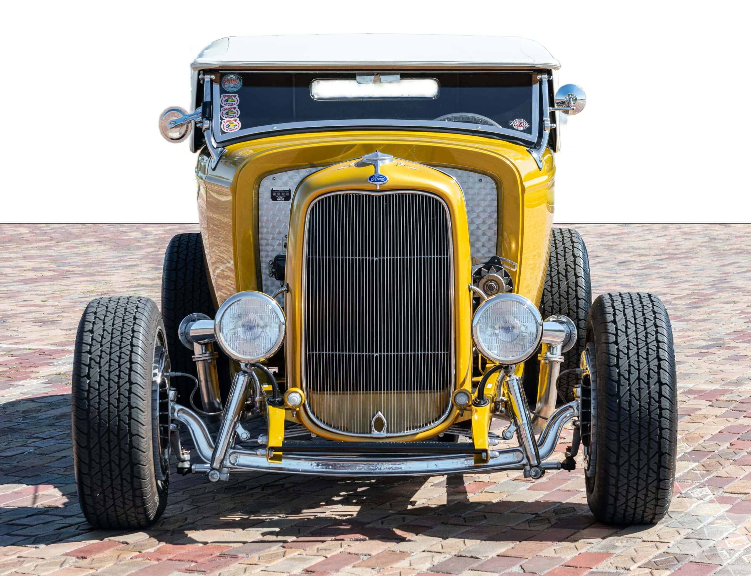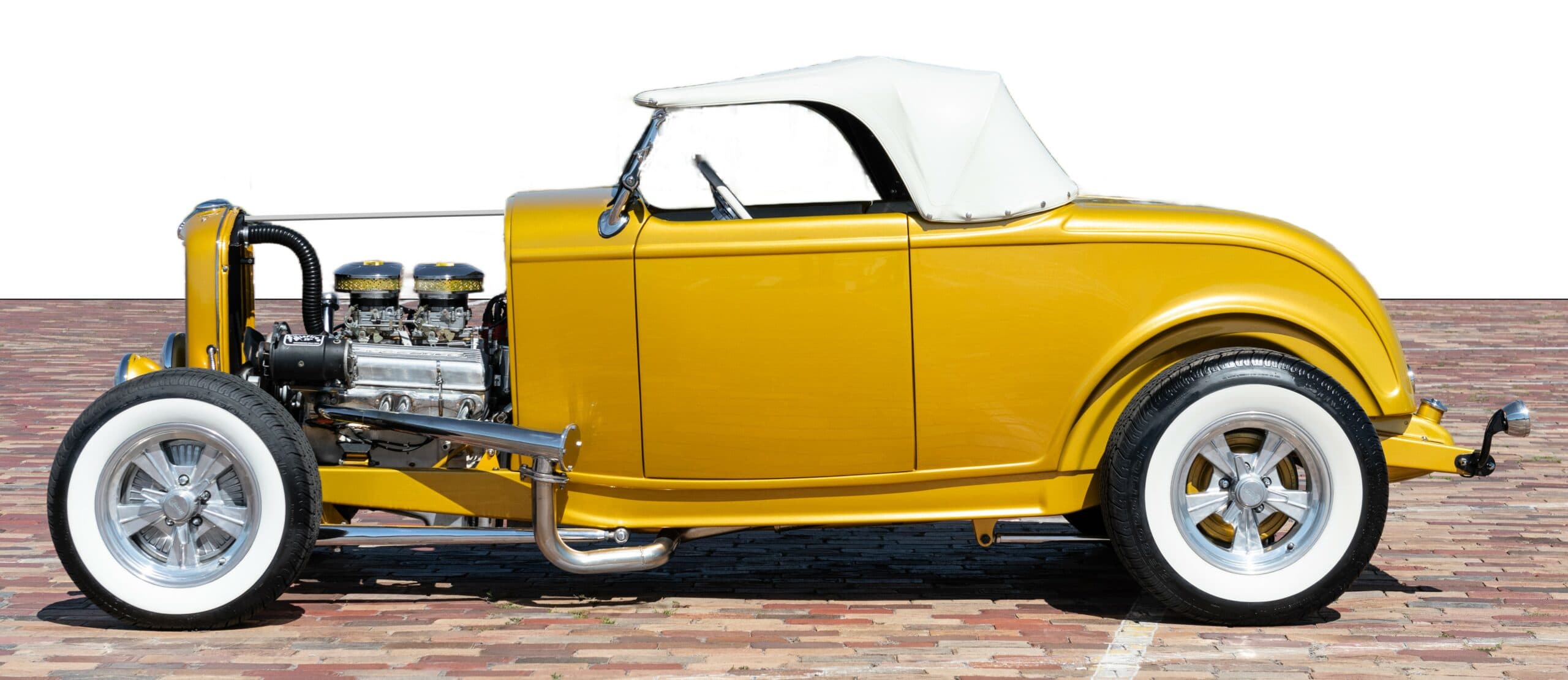 Ford avait même fait pression sur le gouvernement fédéral américain pour obtenir l’autorisation d’installer des phares affleurants sur la Lincoln Mark VII. Dans tout ce mic-mac je n’avais jamais été intéressé par les Hot Rods des années 1950 jusqu’à ce que je voie diverses exposition soigneusement sélectionnées de quelques-uns des Hot Rods les plus importants. Du moins historiquement, car de plus, destinés à divers Concours d’Élégance dont celui de Meadow Brook. Là, j’ai compris. Je n’écrirai pas que j’ai un œil suffisamment avisé pour savoir ce qui est exceptionnel et ce qui suit le troupeau, mais il n’y a rien de mal à regarder le Hot Rod Ford Custom Roadster 1932 que je place en star dans cet article.